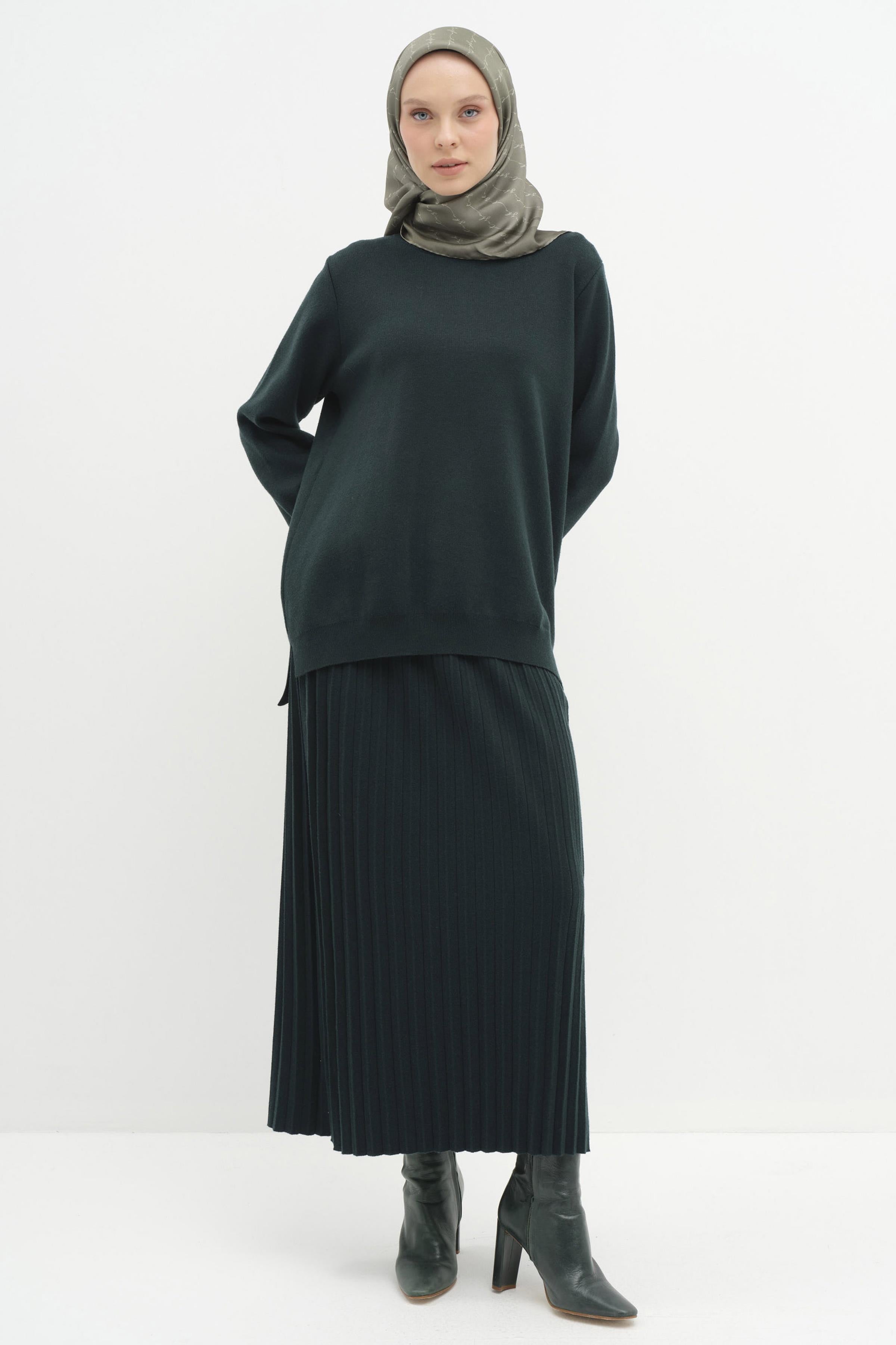 Pilise Etekli Triko Takım, konfor ve zarafeti bir arada sunan şık bir kombinasyondur.