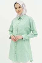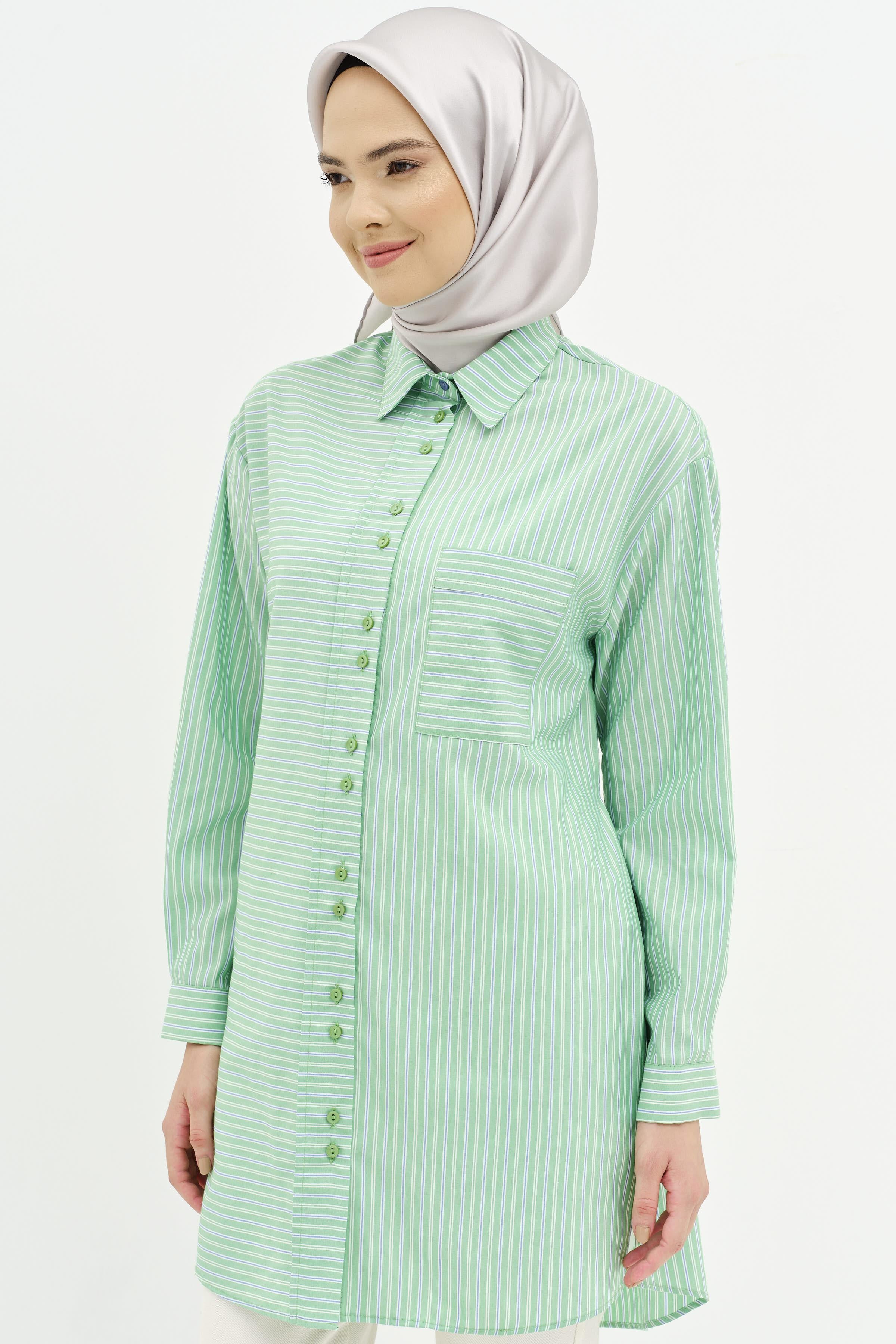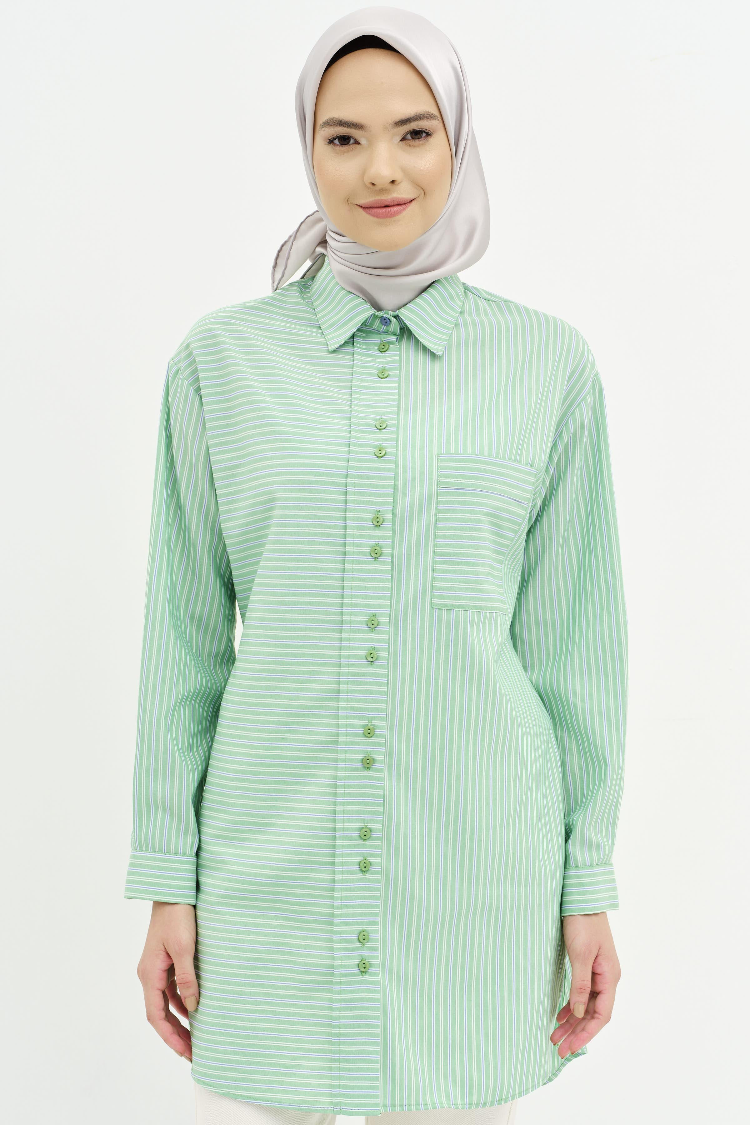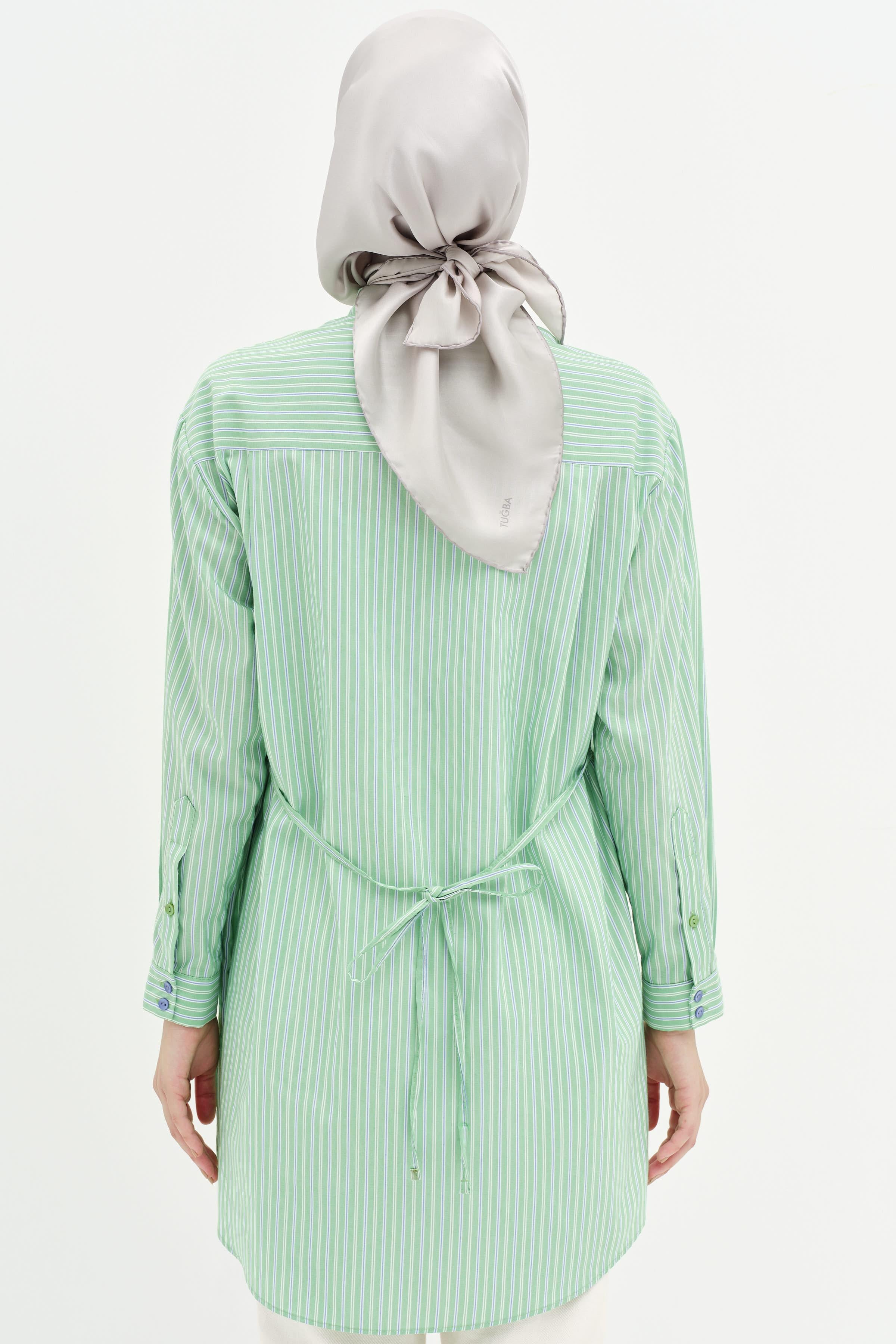 Bel Bağcıklı Çizgili Tunik - Yeşil