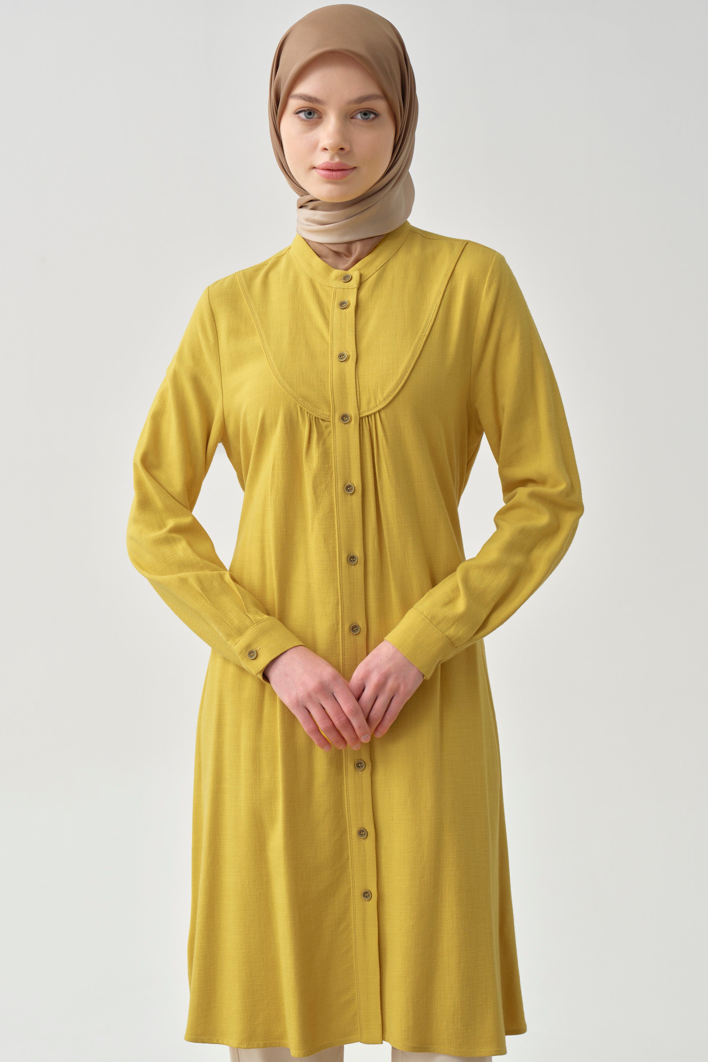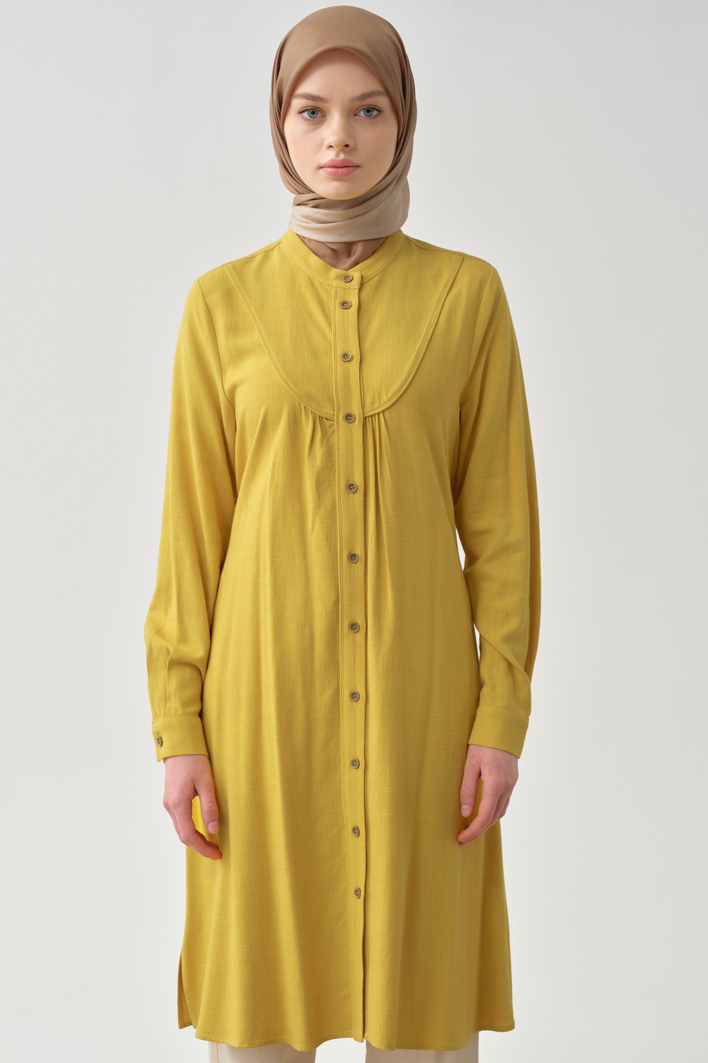 Biye detayları ve robalı tasarımıyla zarif bir duruş sunan bu tunik, modern ve şık bir stil vadediyor. Akıcı kesimiyle rahat bir kullanım sağlarken, ince detaylarıyla şıklığı ön plana çıkarıyor.