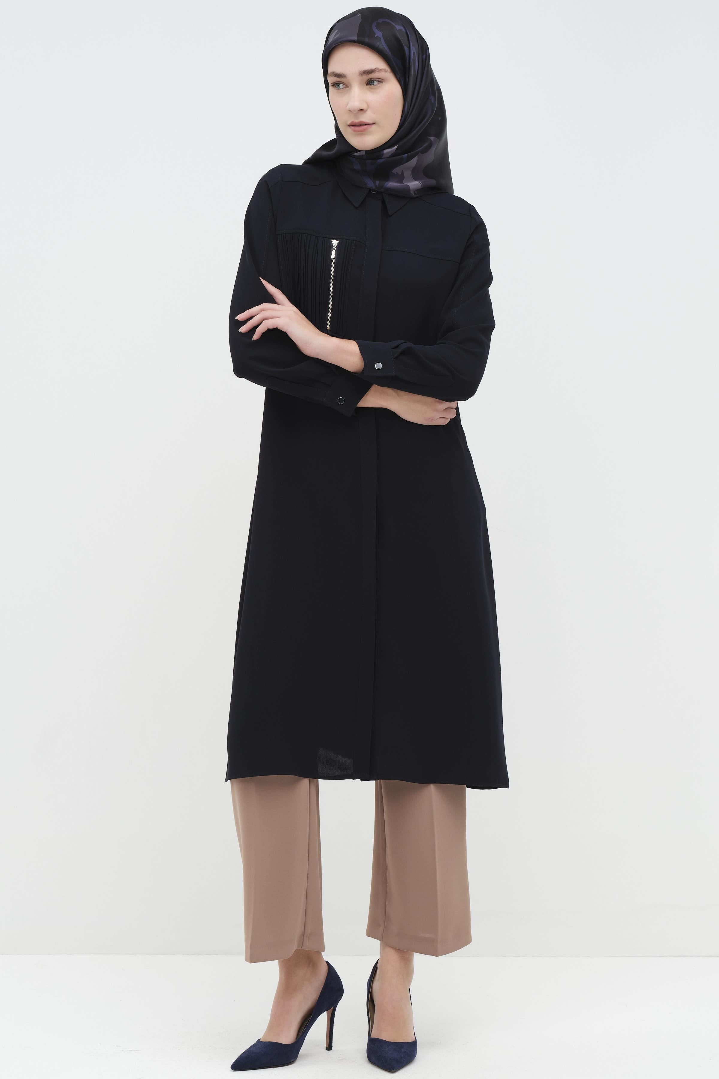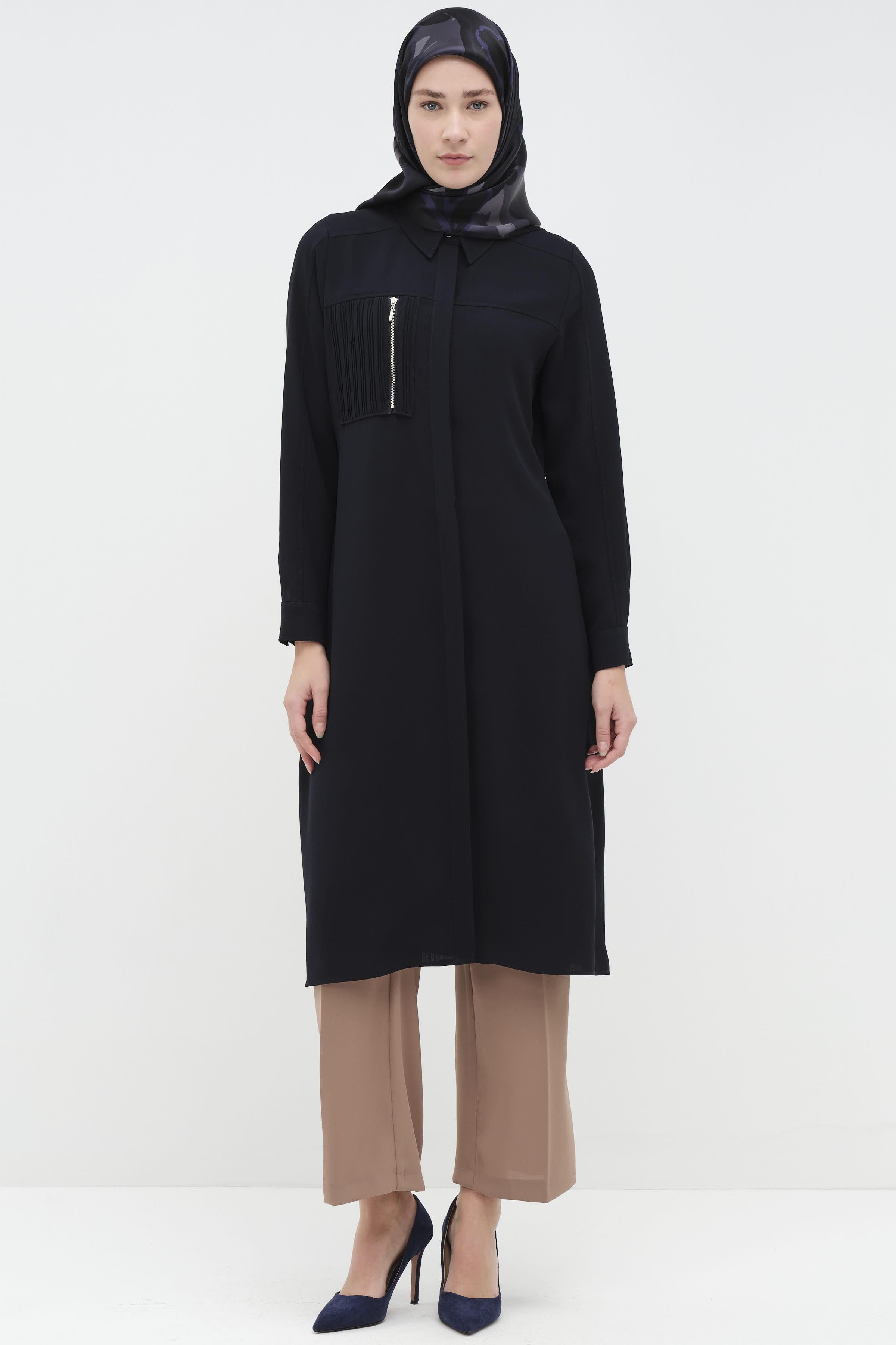 Plise Cep Detaylı Robalı Tunik - Lacivert