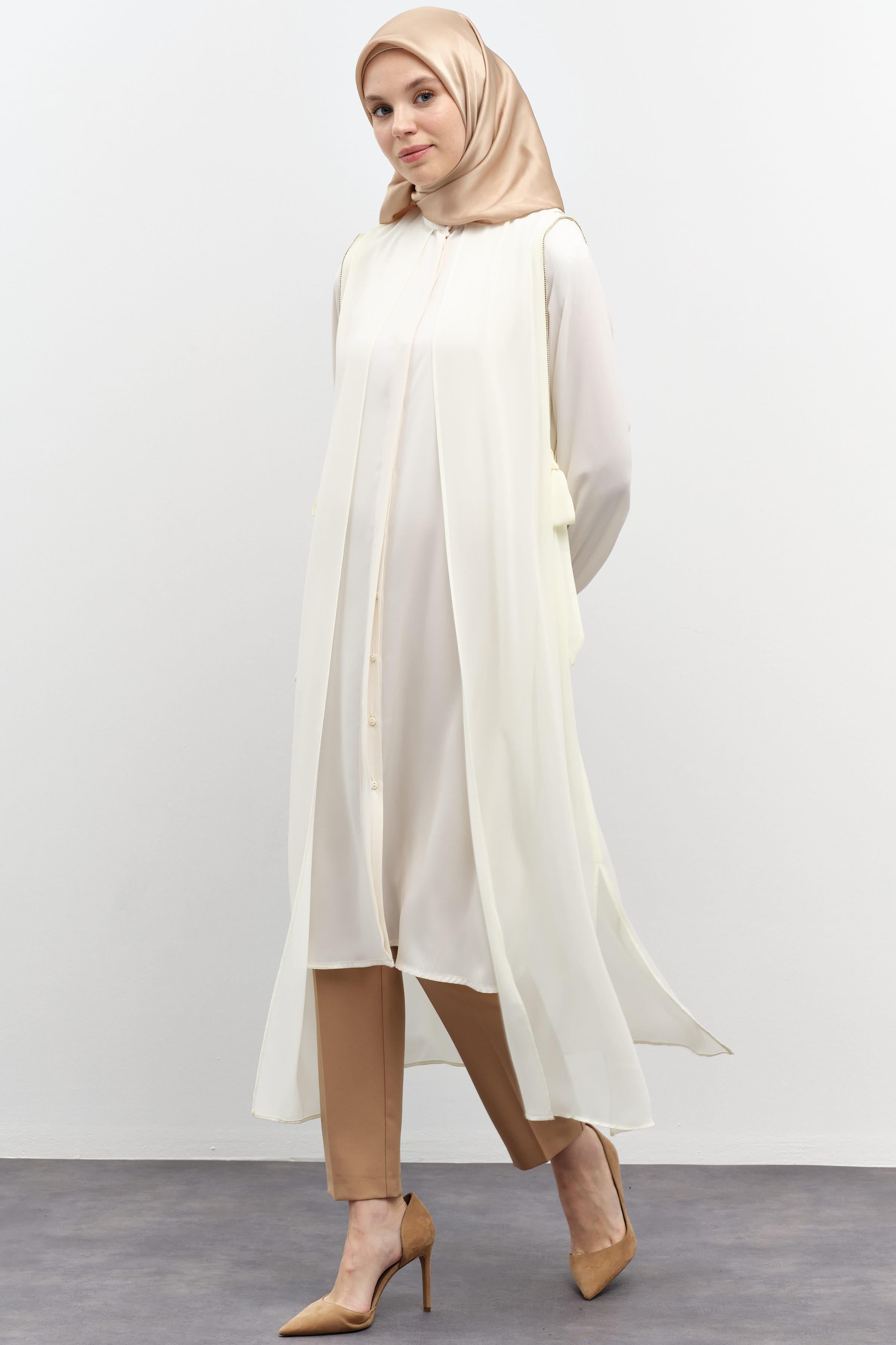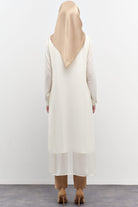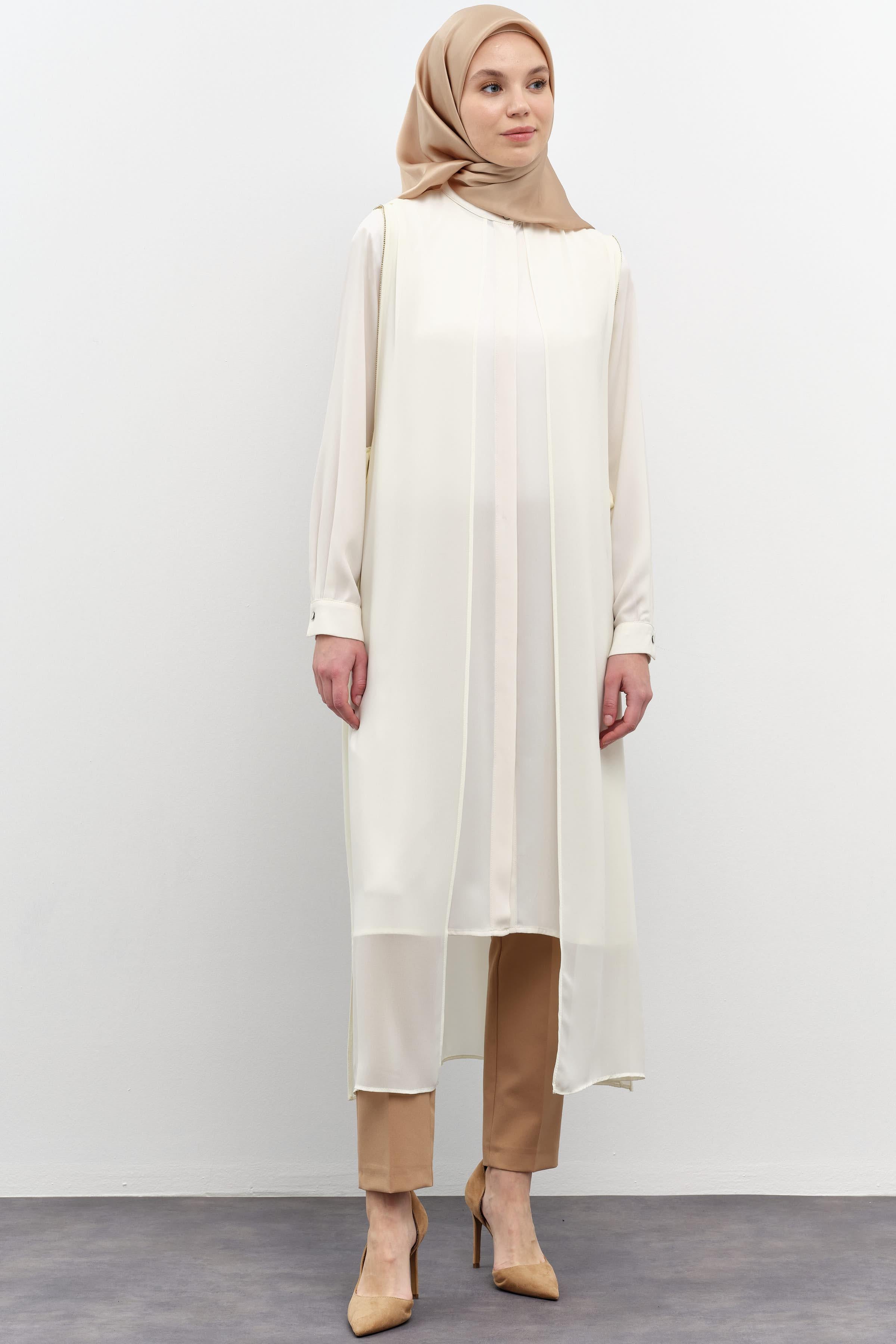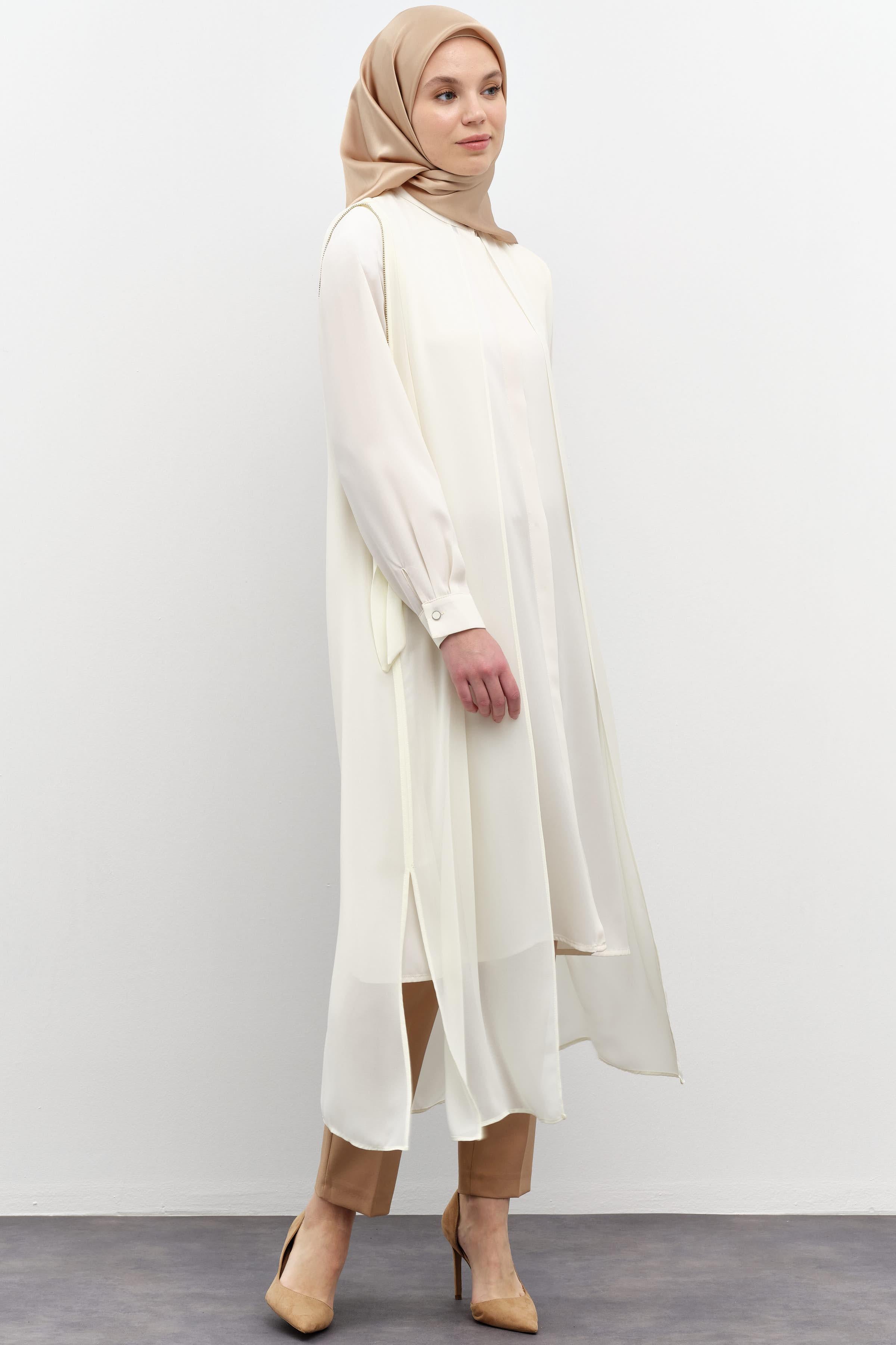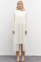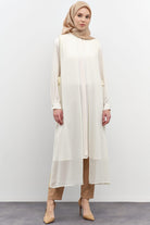 Şifon Garnili Yandan Bağlamalı Tunik - Ekru