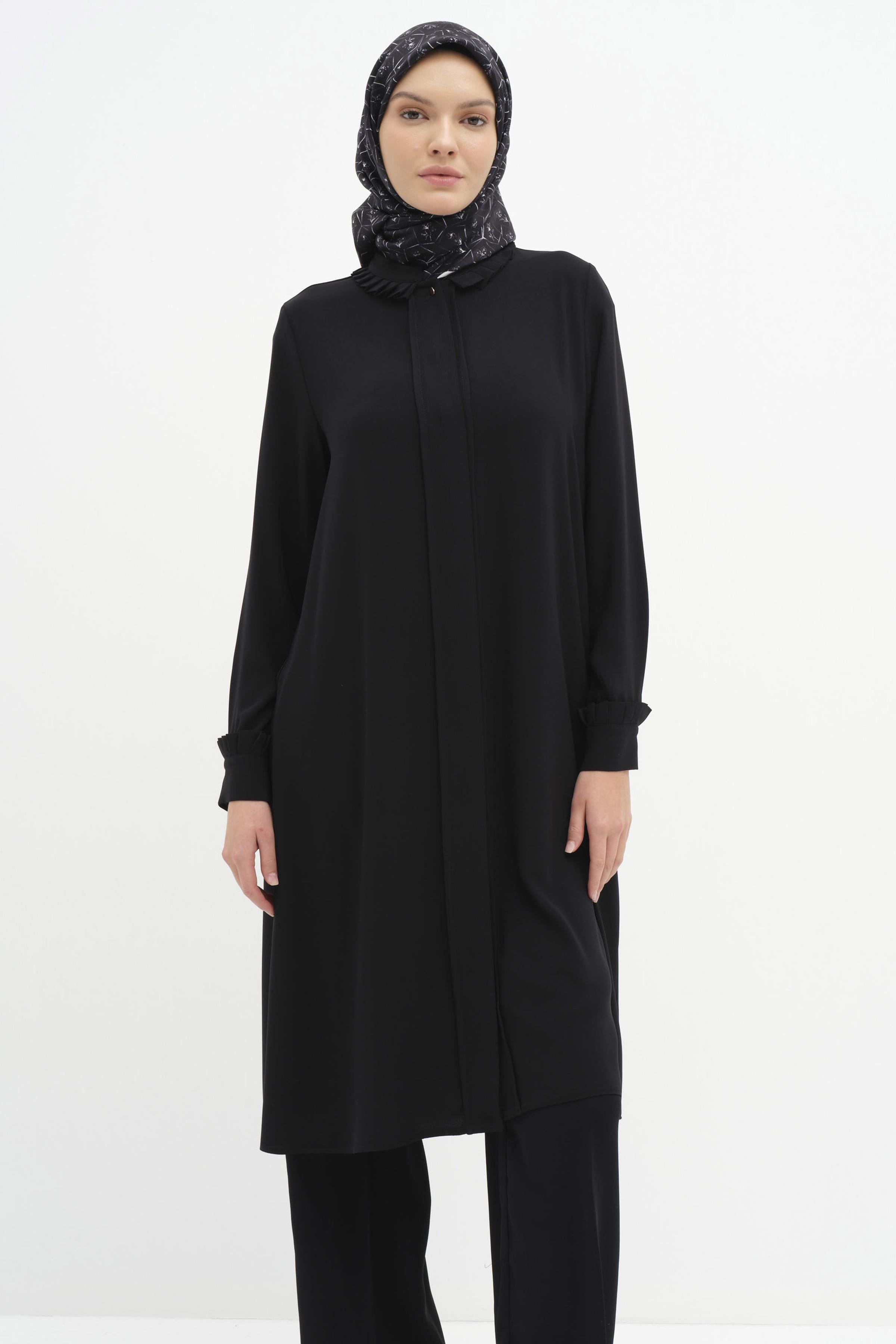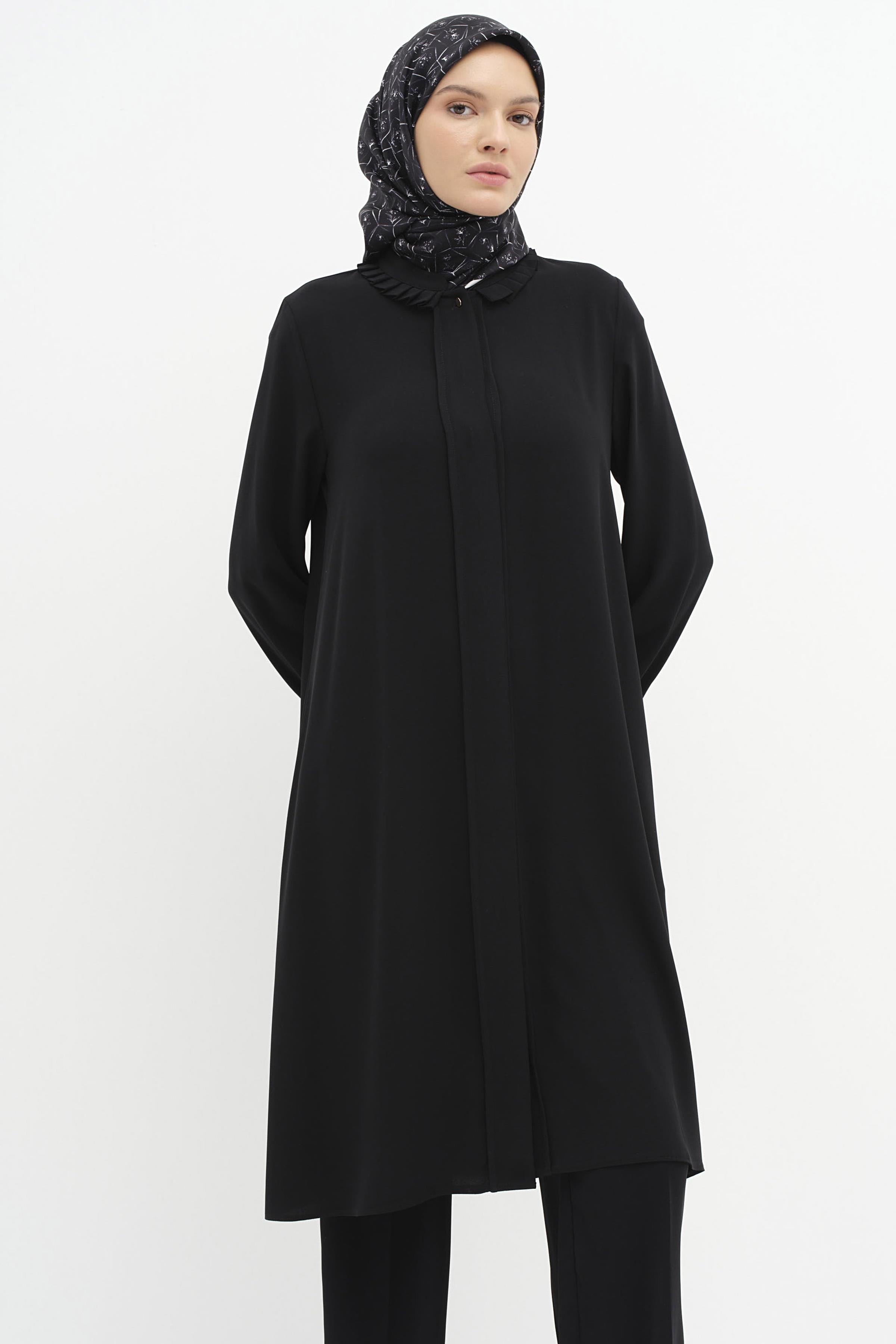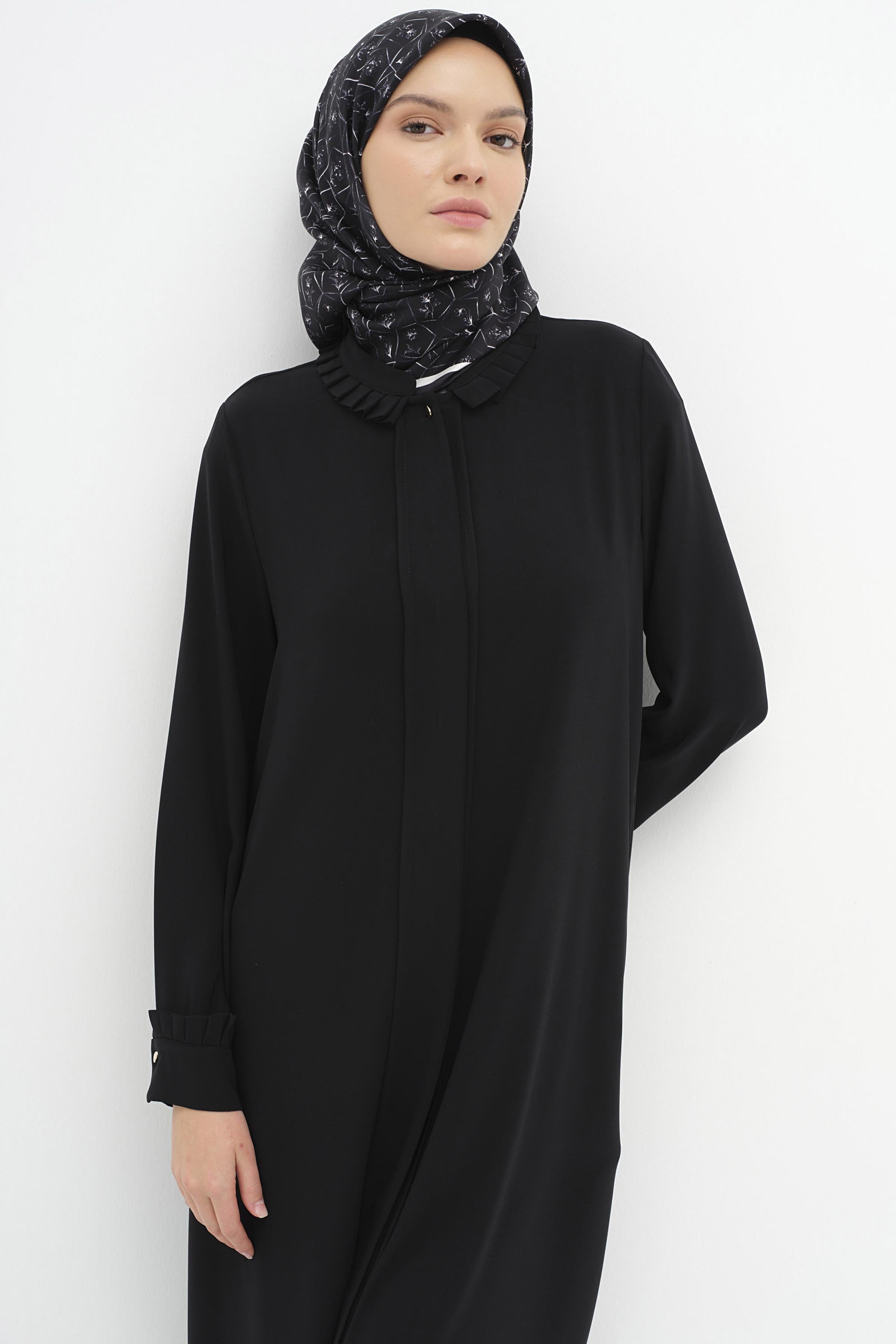 Yaka Ve Manşet Pile Detaylı Tunik - Siyah