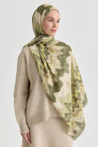 İkat Desenli Natural Şal - Yeşil