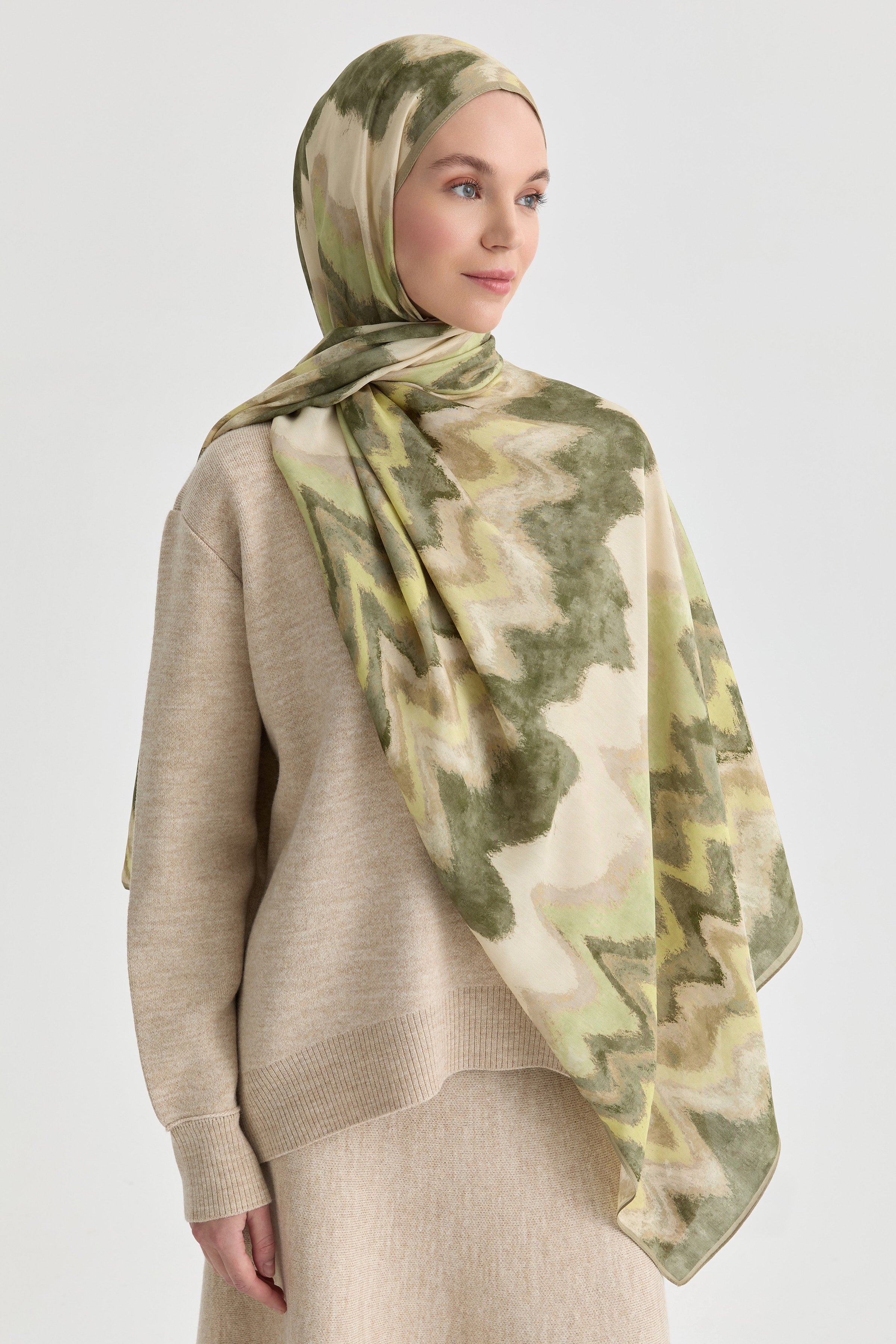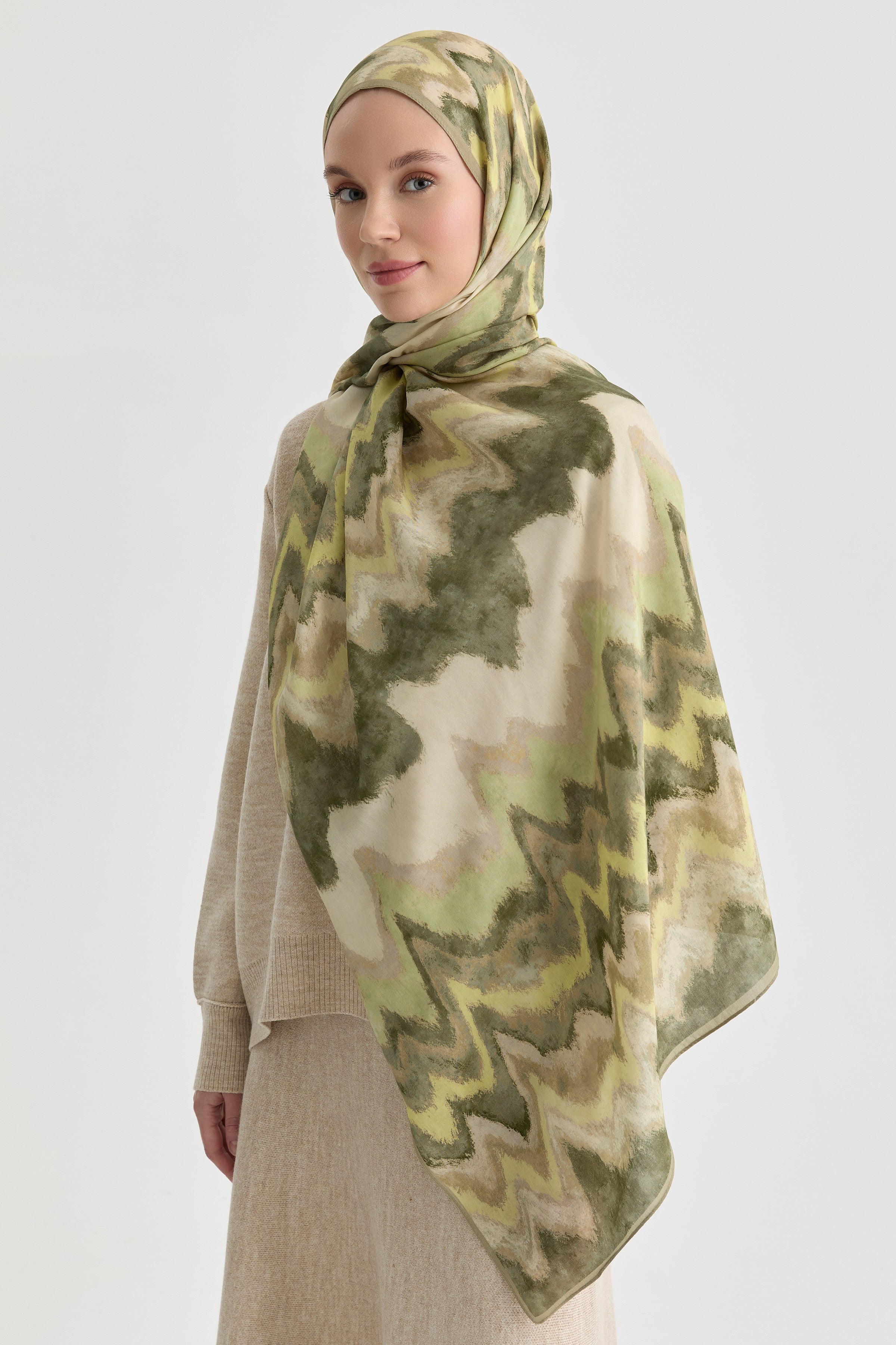 El işçiliğini andıran ikat desenleriyle tasarlanan bu natural şal, zarif dokusuyla doğal bir şıklık sunar. Yumuşak kumaşı gün boyu konfor sağlarken, desenin sanatsal geçişleri stilinize karakter katar.