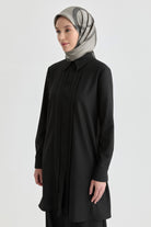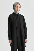 Aller dokusuyla hareket kazanan bu tunik, sade çizgisini incelikli detaylarla zenginleştiriyor.