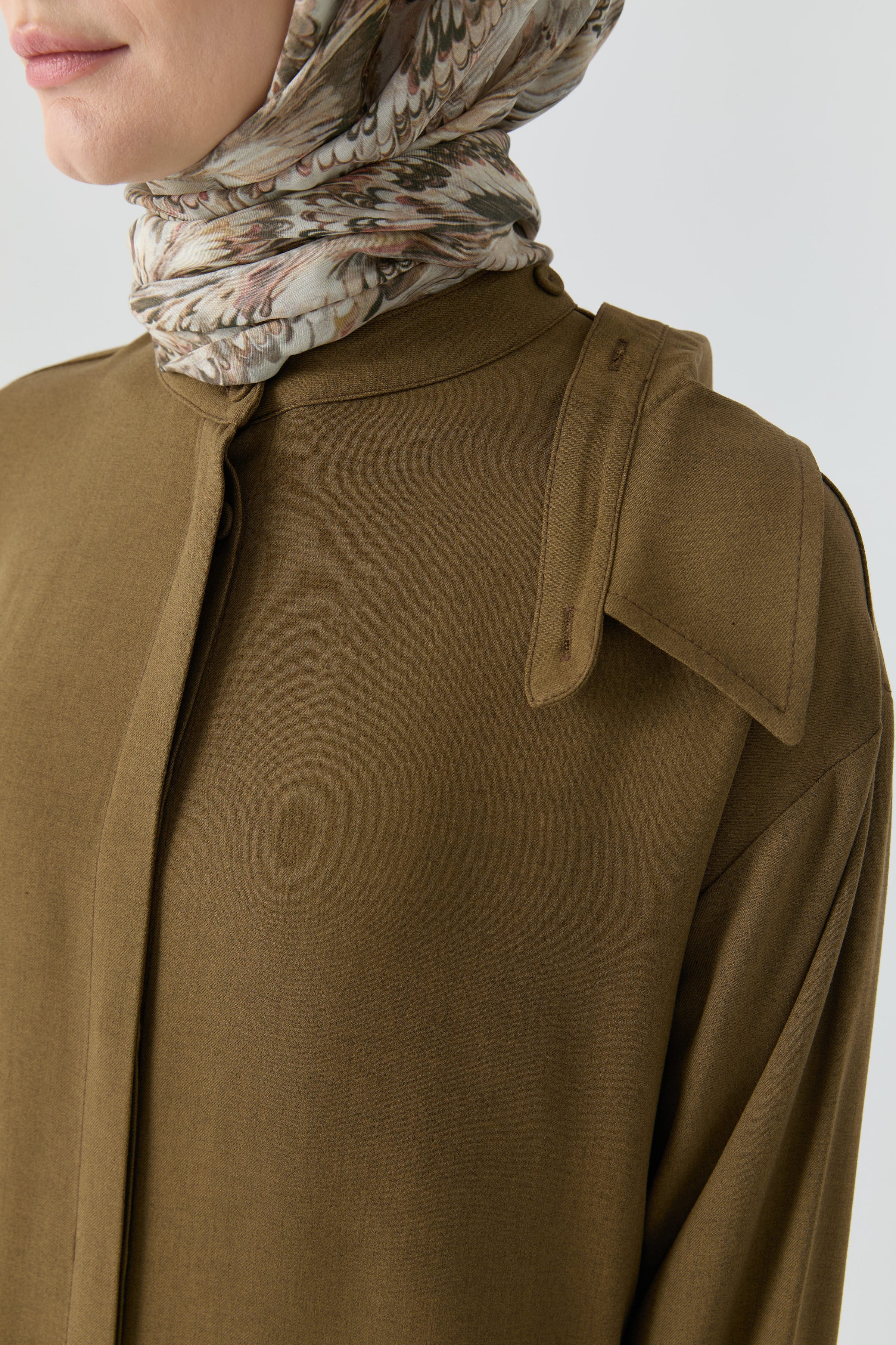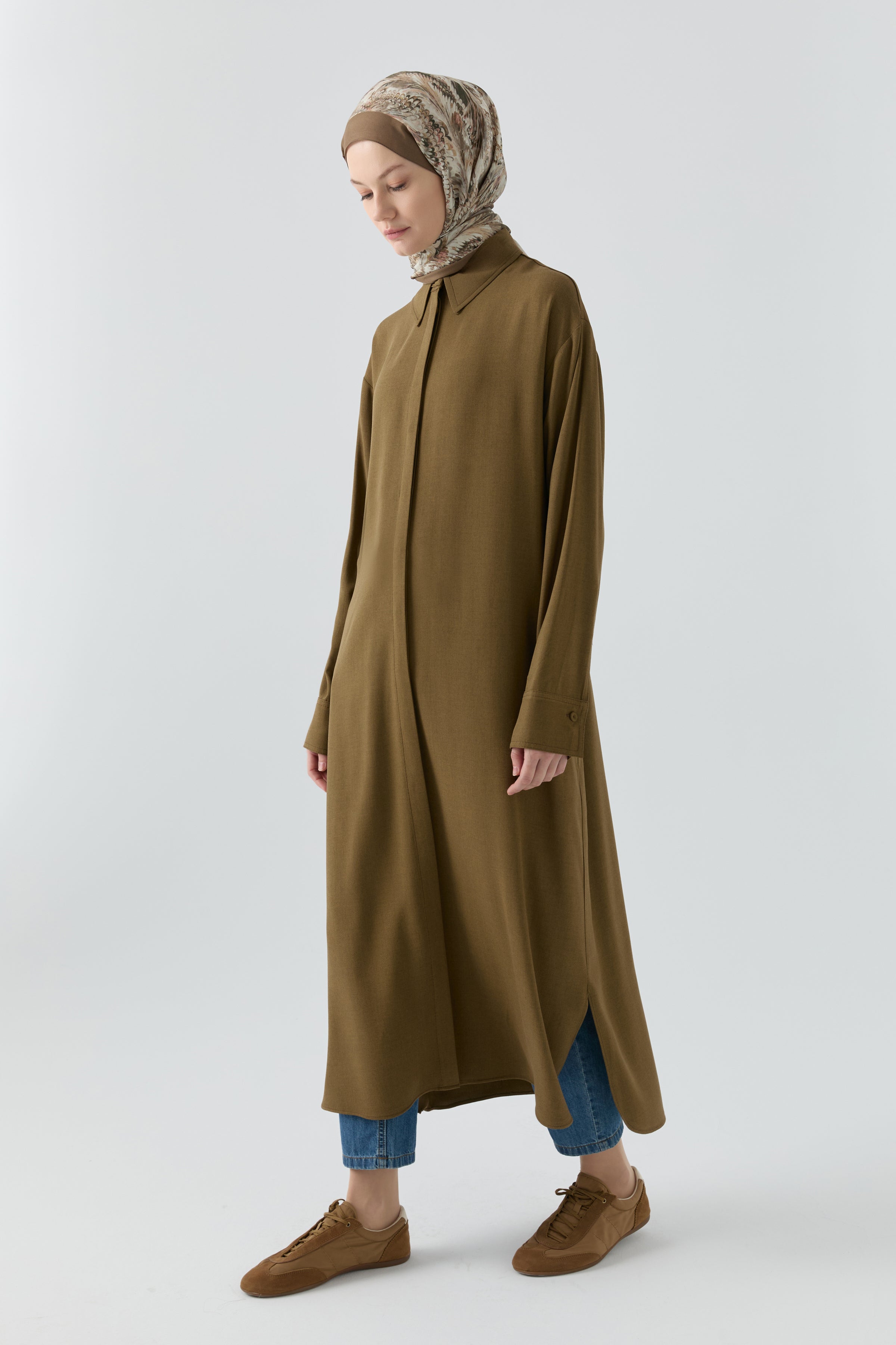 Arka kısmındaki bağcık detayıyla zarif bir siluet kazanan bu tunik, modern tasarımıyla günlük şıklığı ön plana çıkarır. Akıcı kumaşı ve rahat kalıbı sayesinde konforlu bir kullanım sunarken, ince detaylarıyla stilinize feminen bir hava katar.