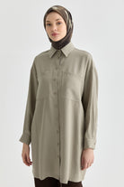 Ön kısmındaki iki cep detayıyla hareket kazanan bu tunik, sade tasarımını işlevsel bir dokunuşla tamamlar. Cepler modele doğal bir canlılık katarken, rahat kesimi gün boyu konfor sunar.