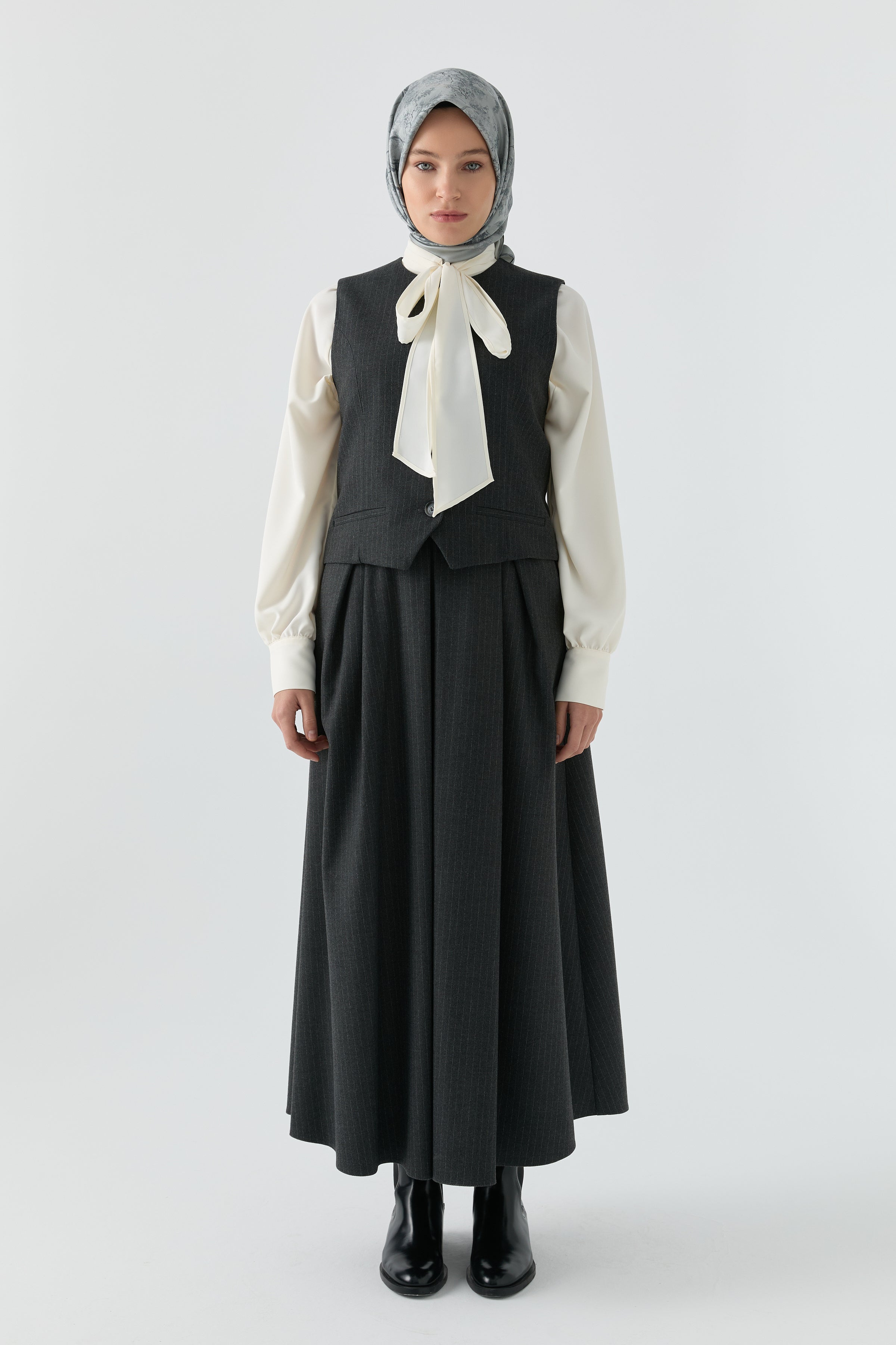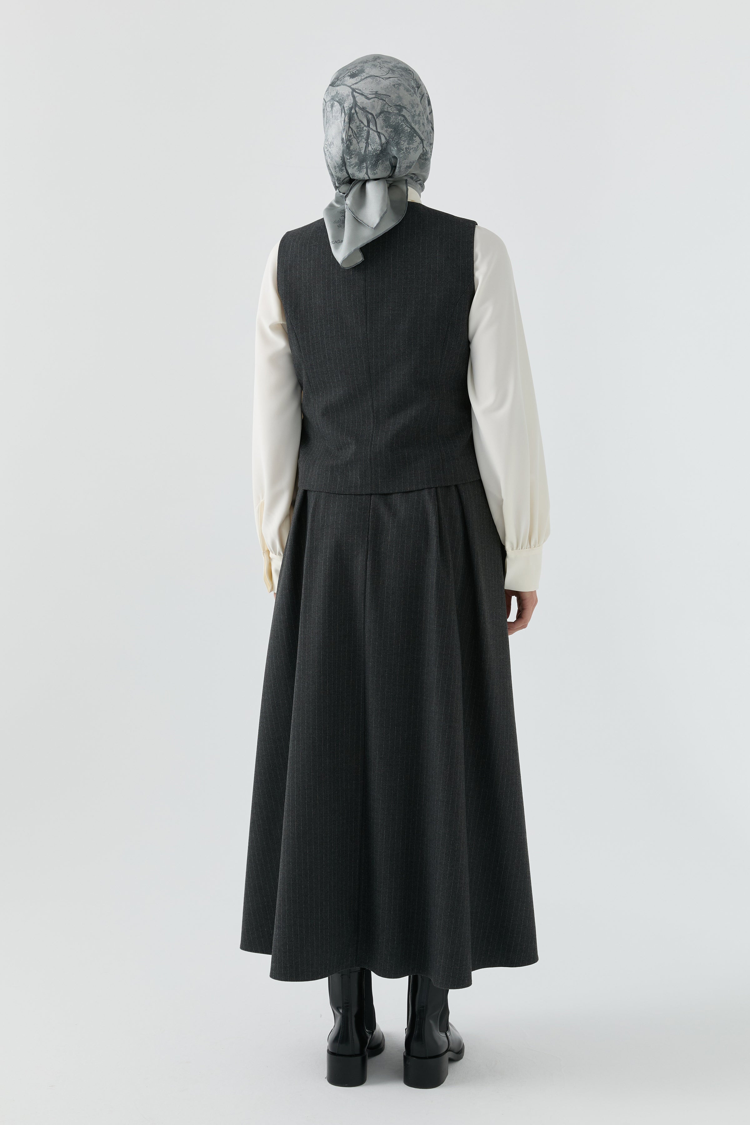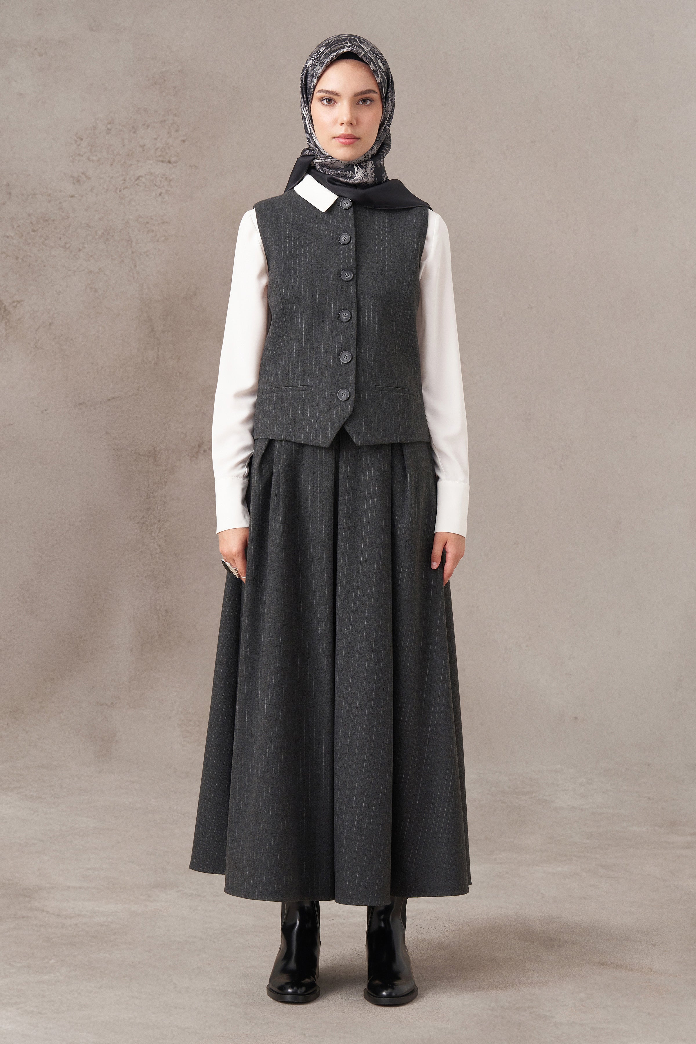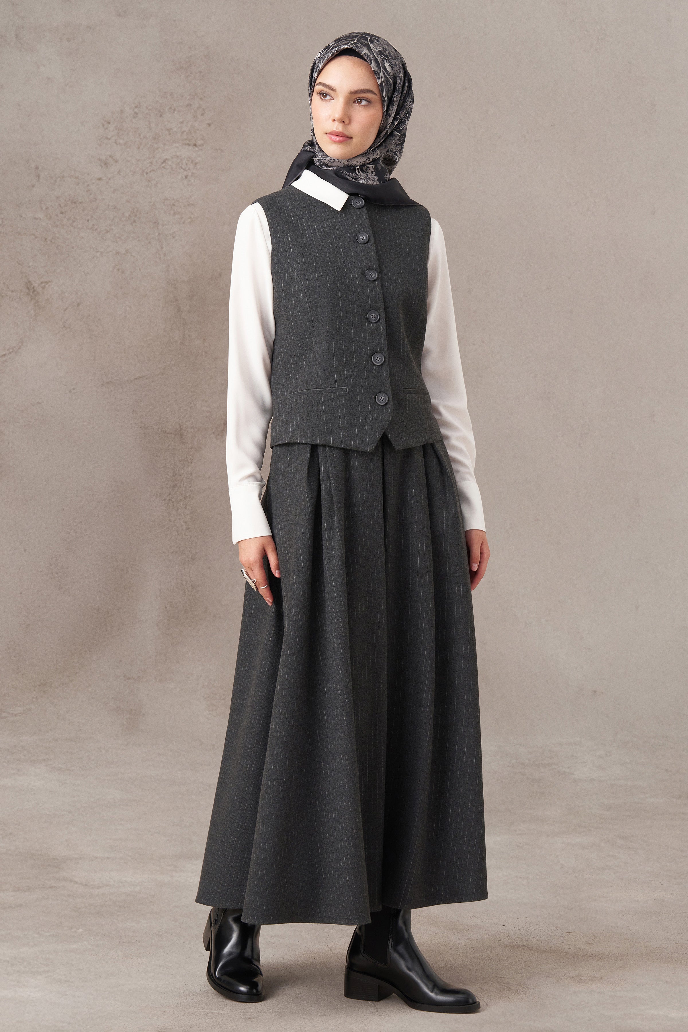 Çizgi Desen Yelek Etek Takım - Antrasit