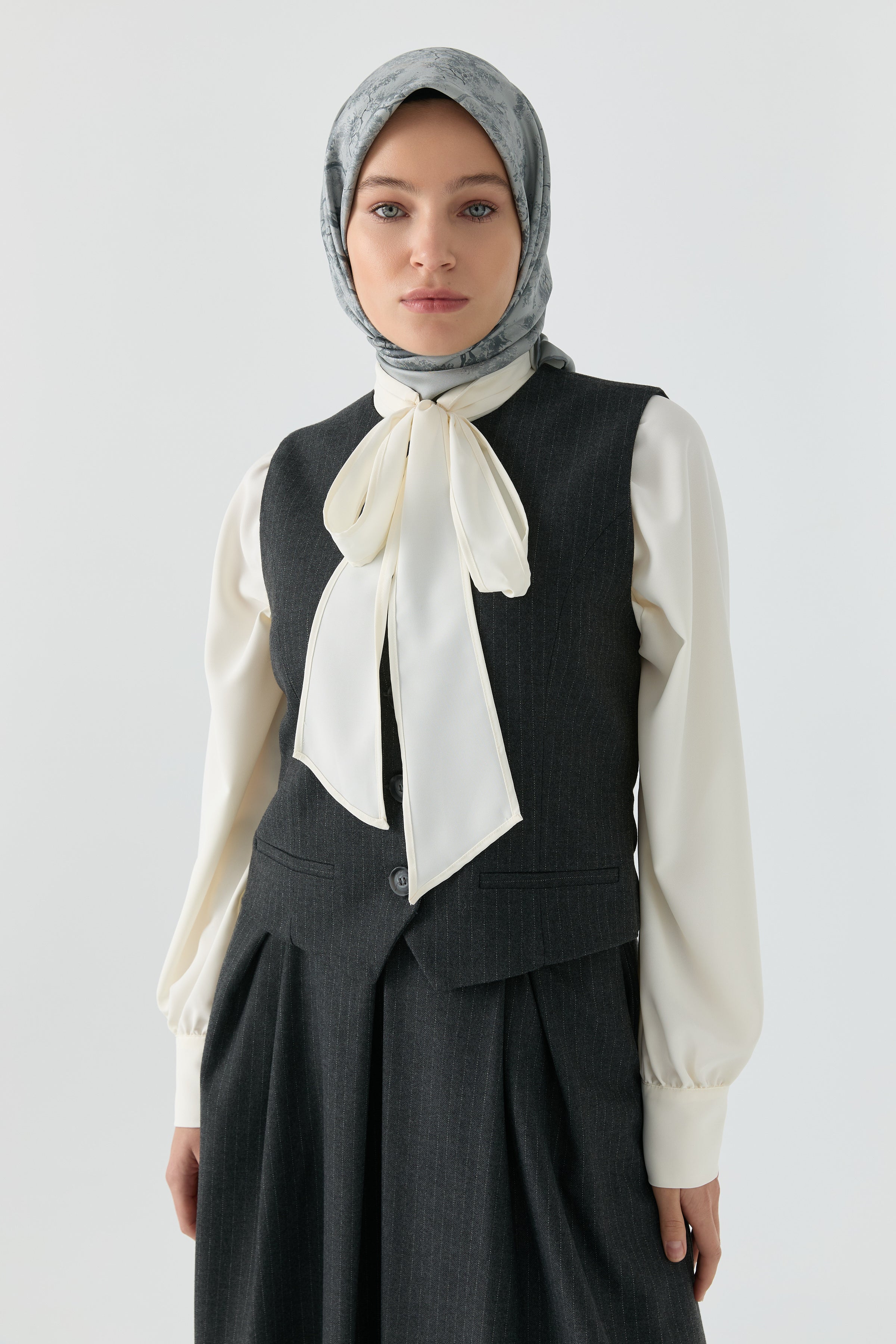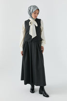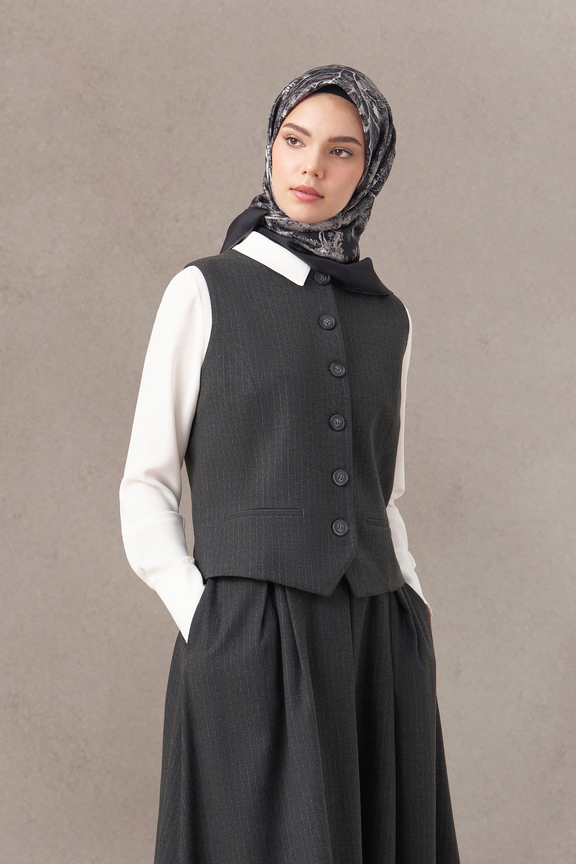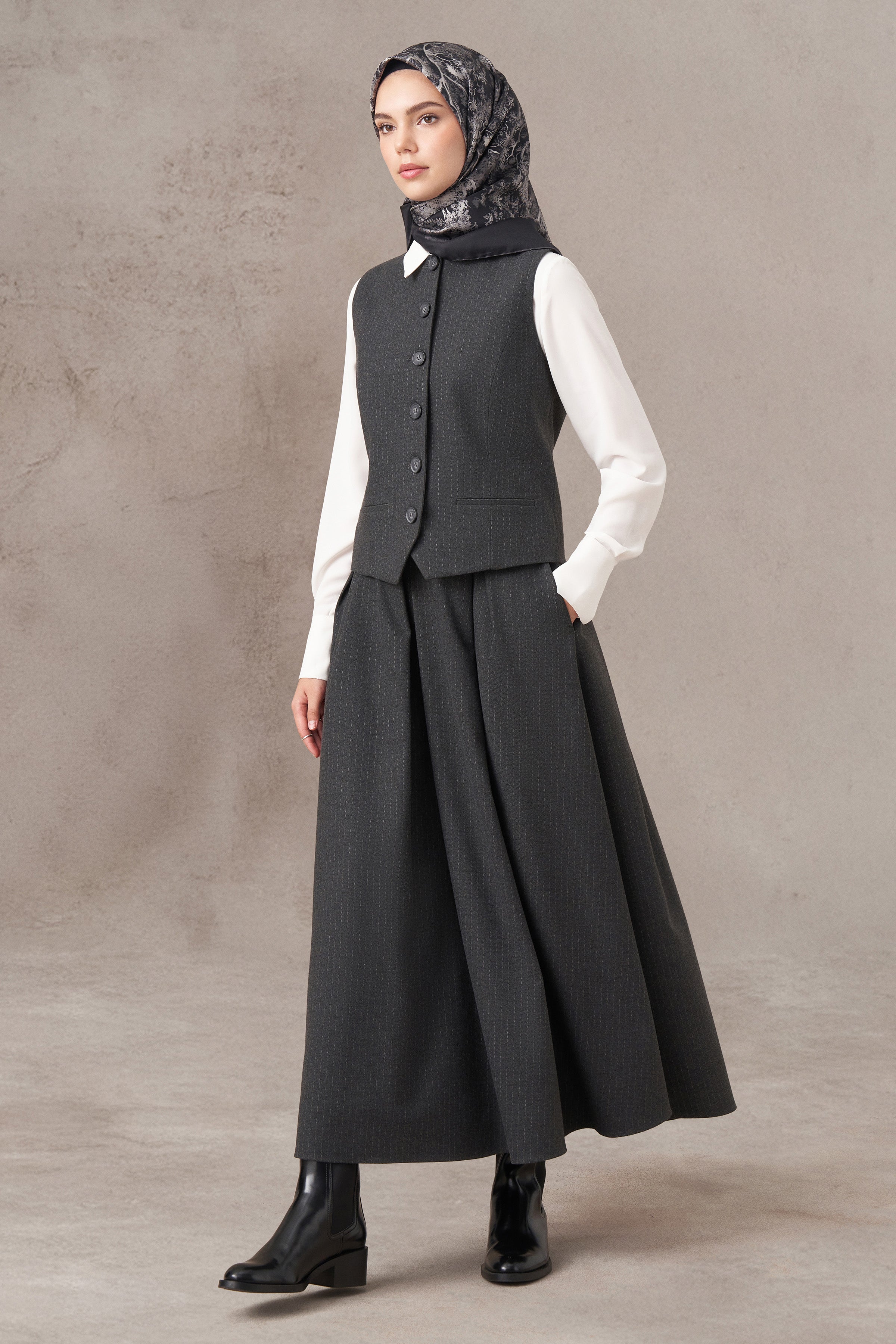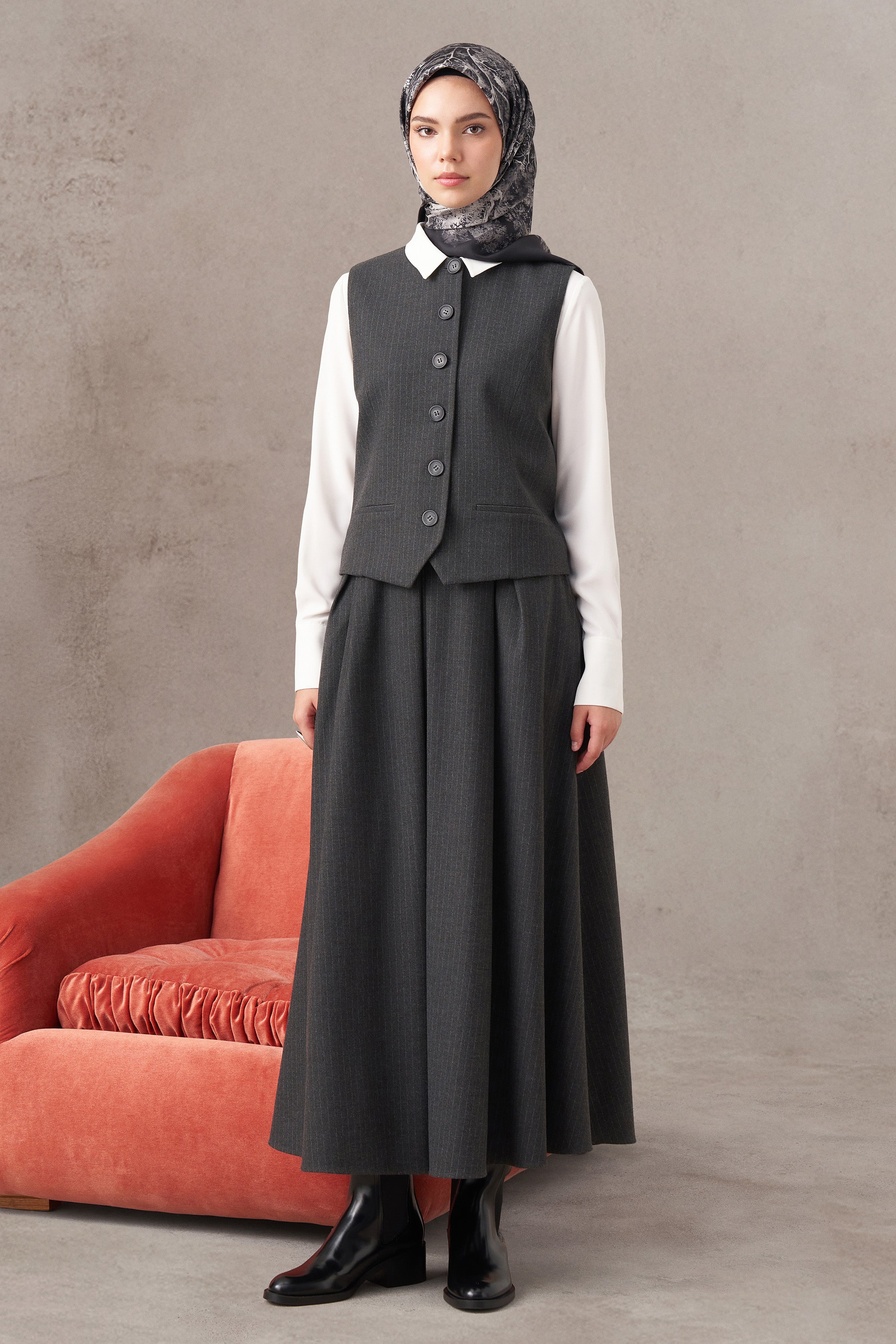 Çizgi Desen Yelek Etek Takım - Antrasit