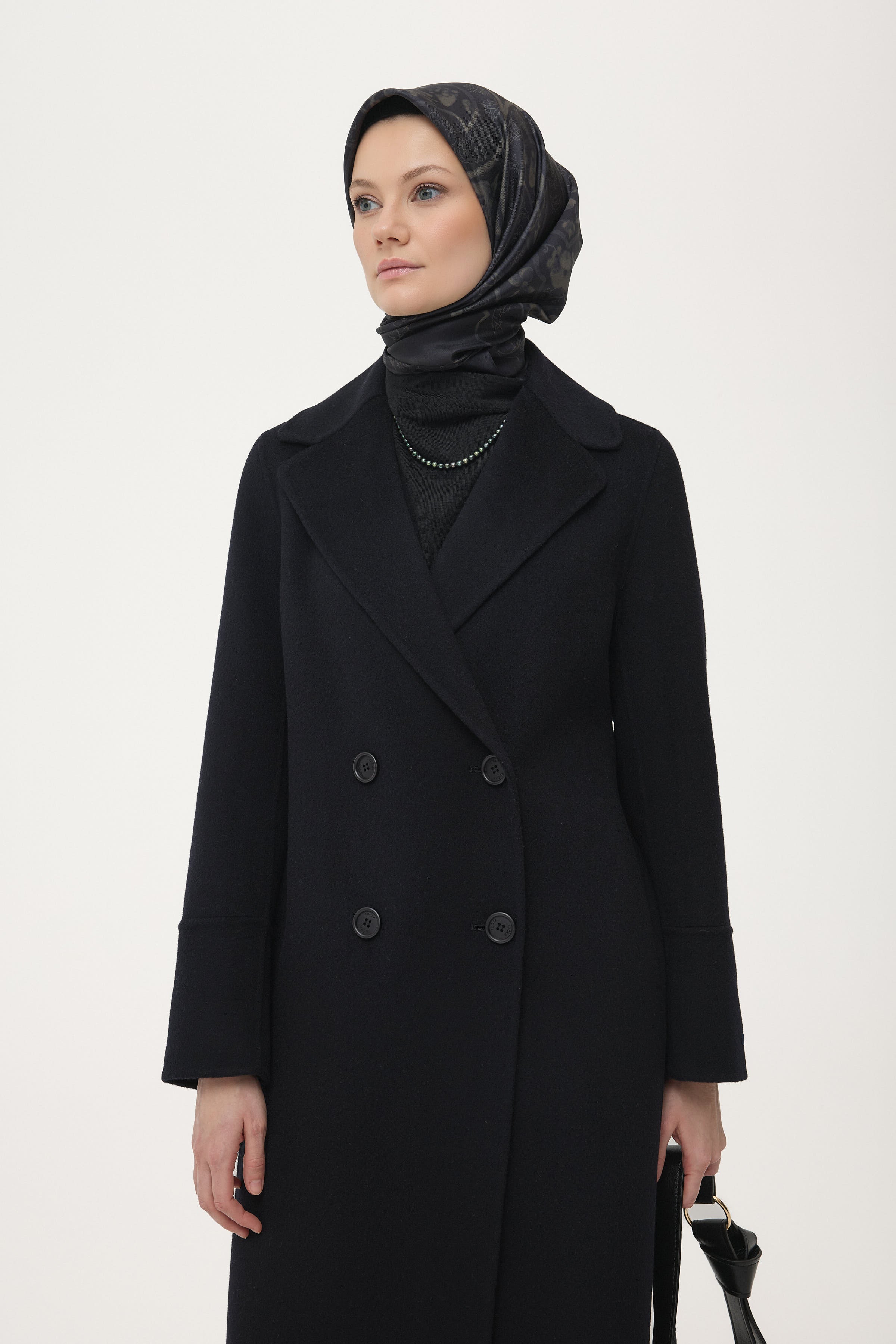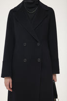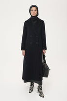 El Yapımı %100 Yün Kruvaze Manto - Siyah