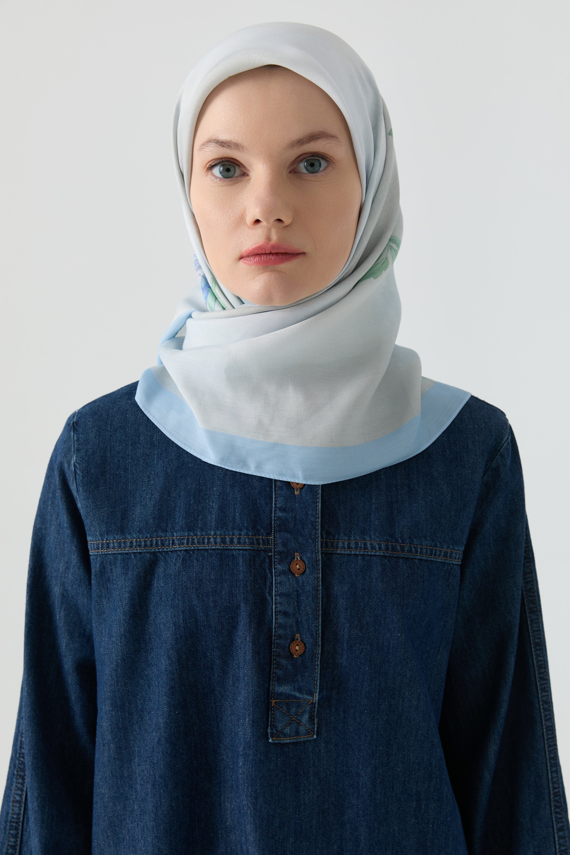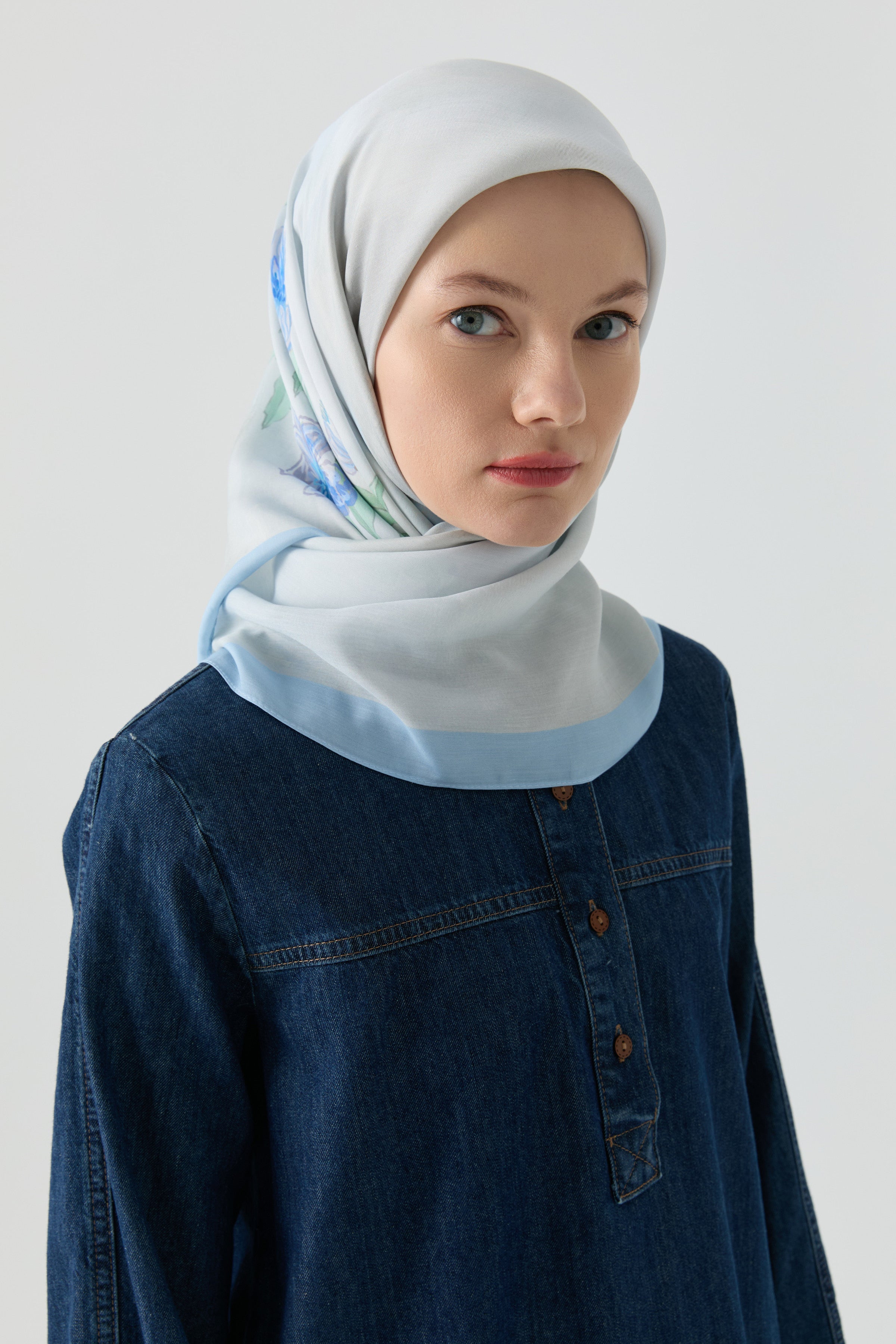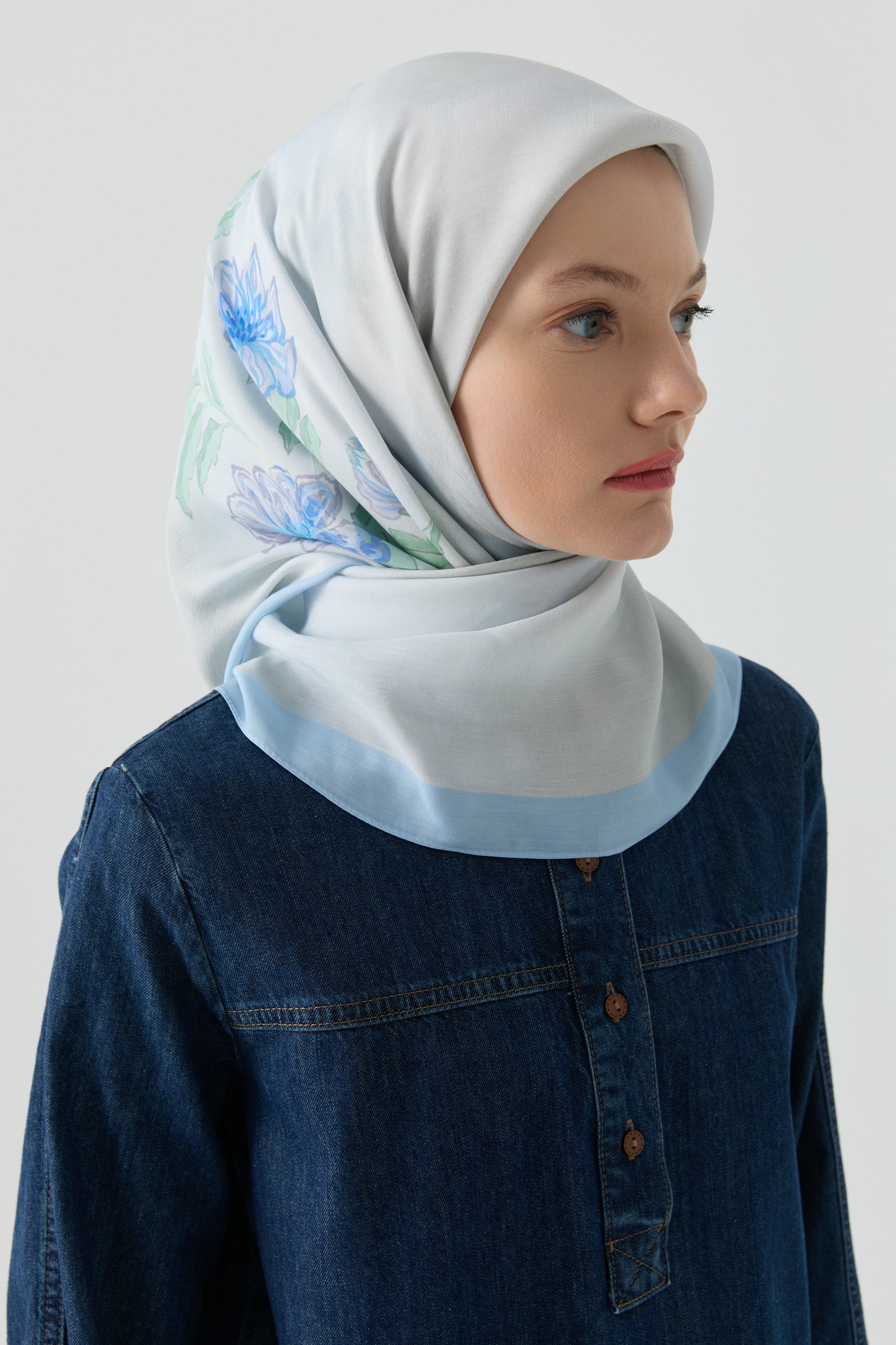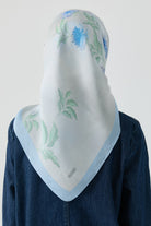 Funda Çiçek Desenli Natural Eşarp - Açık Mavi