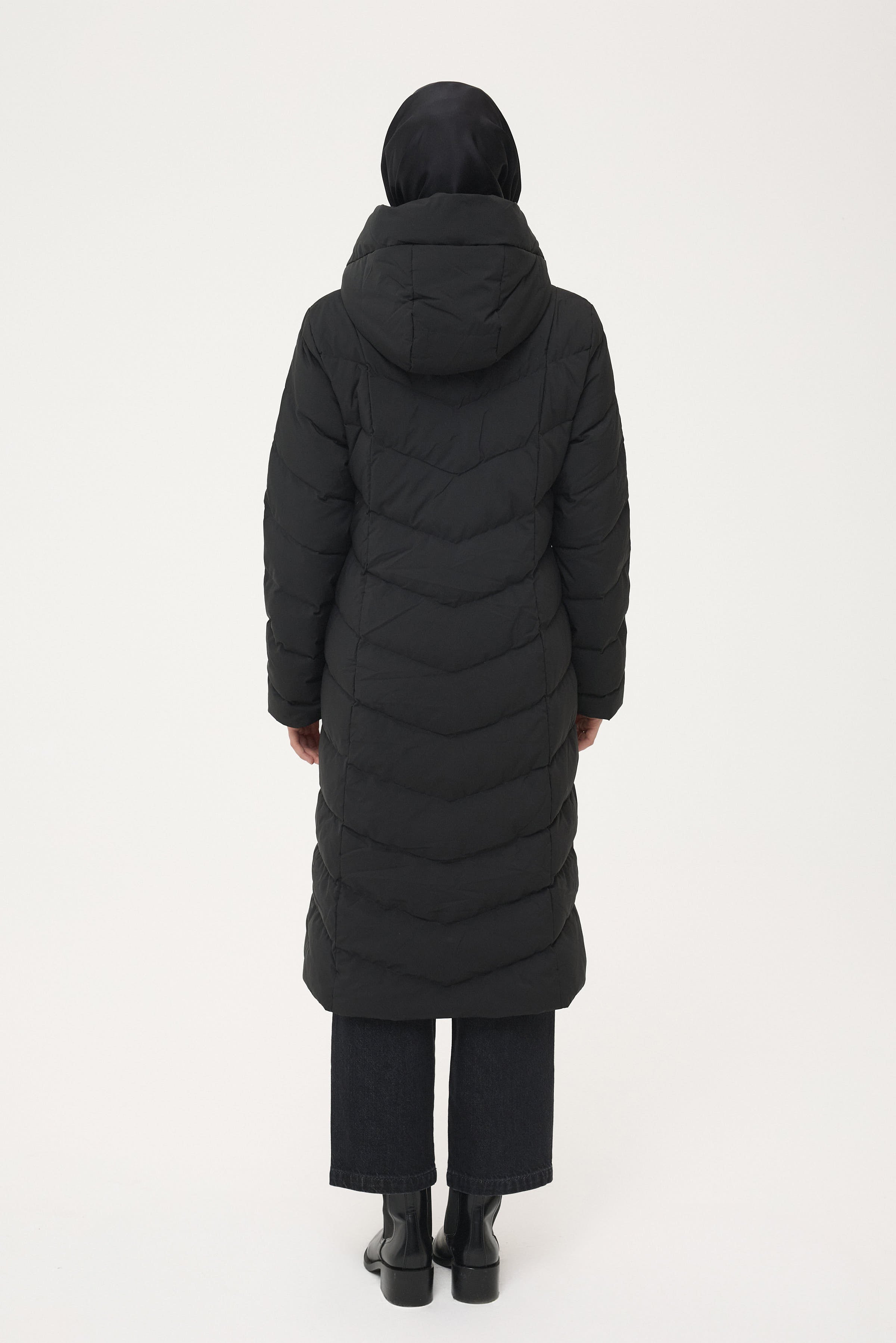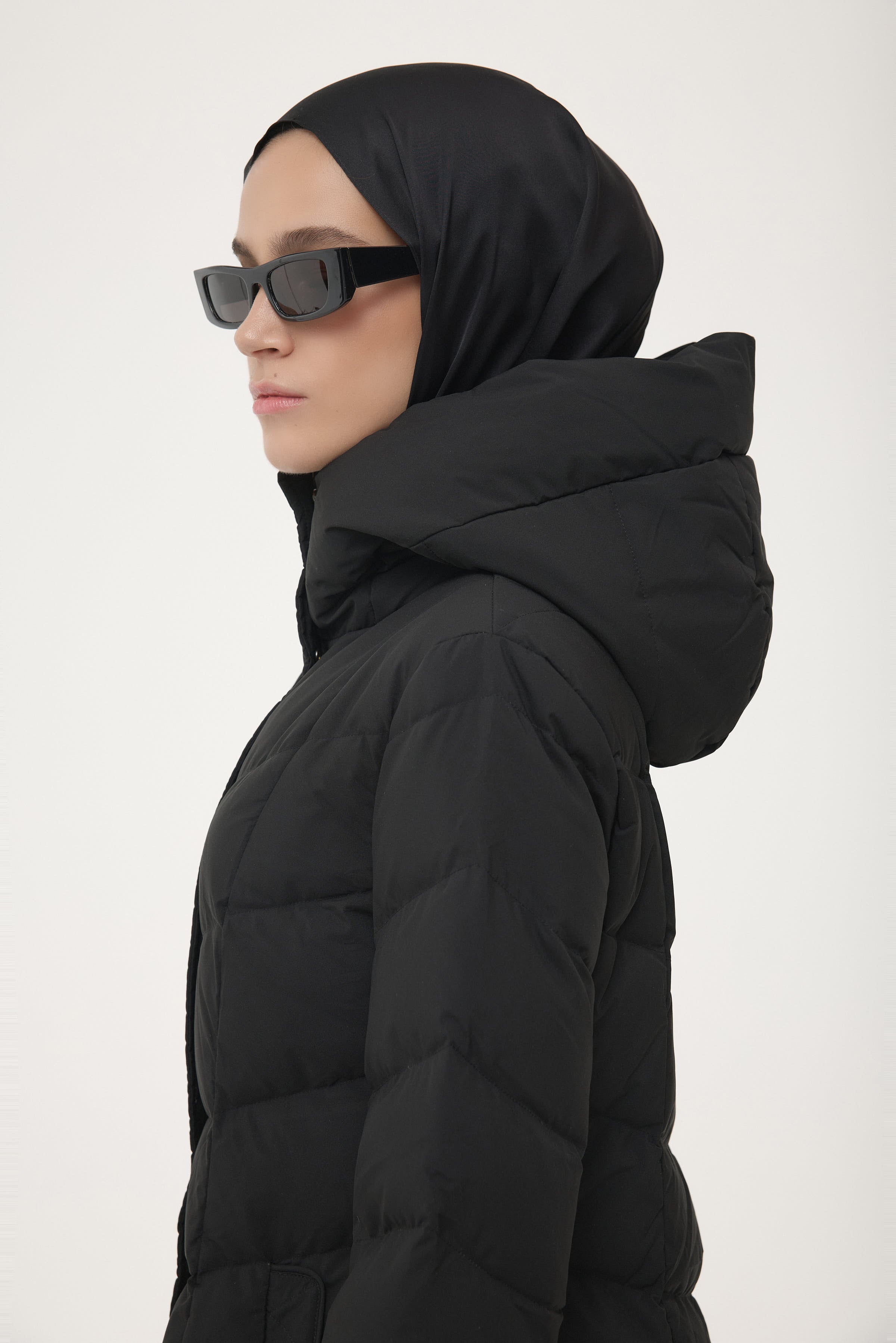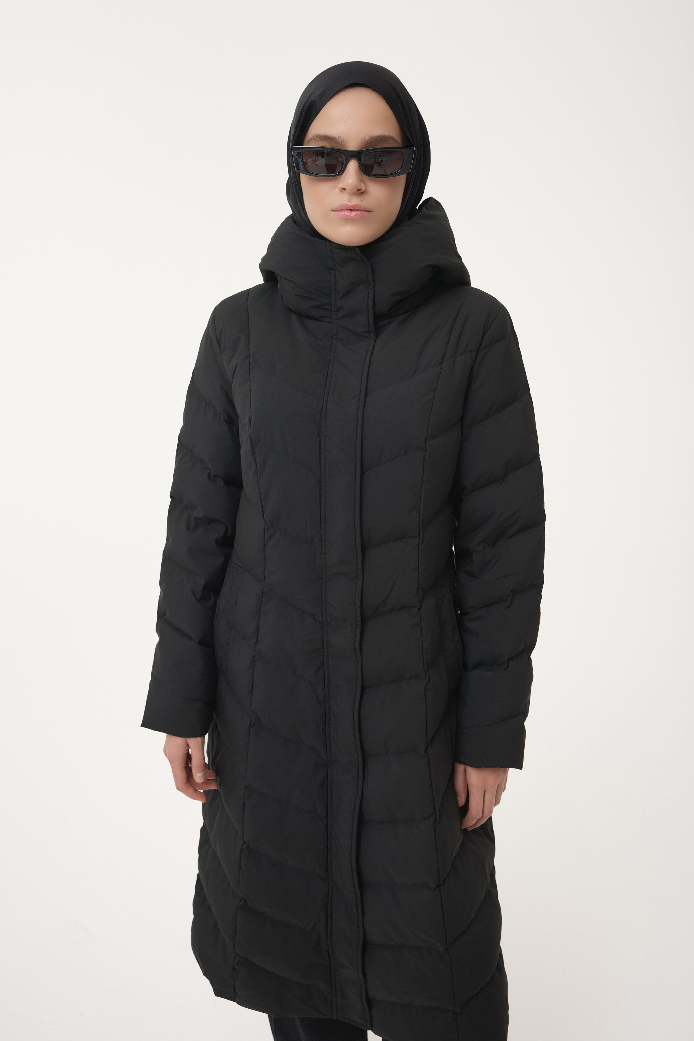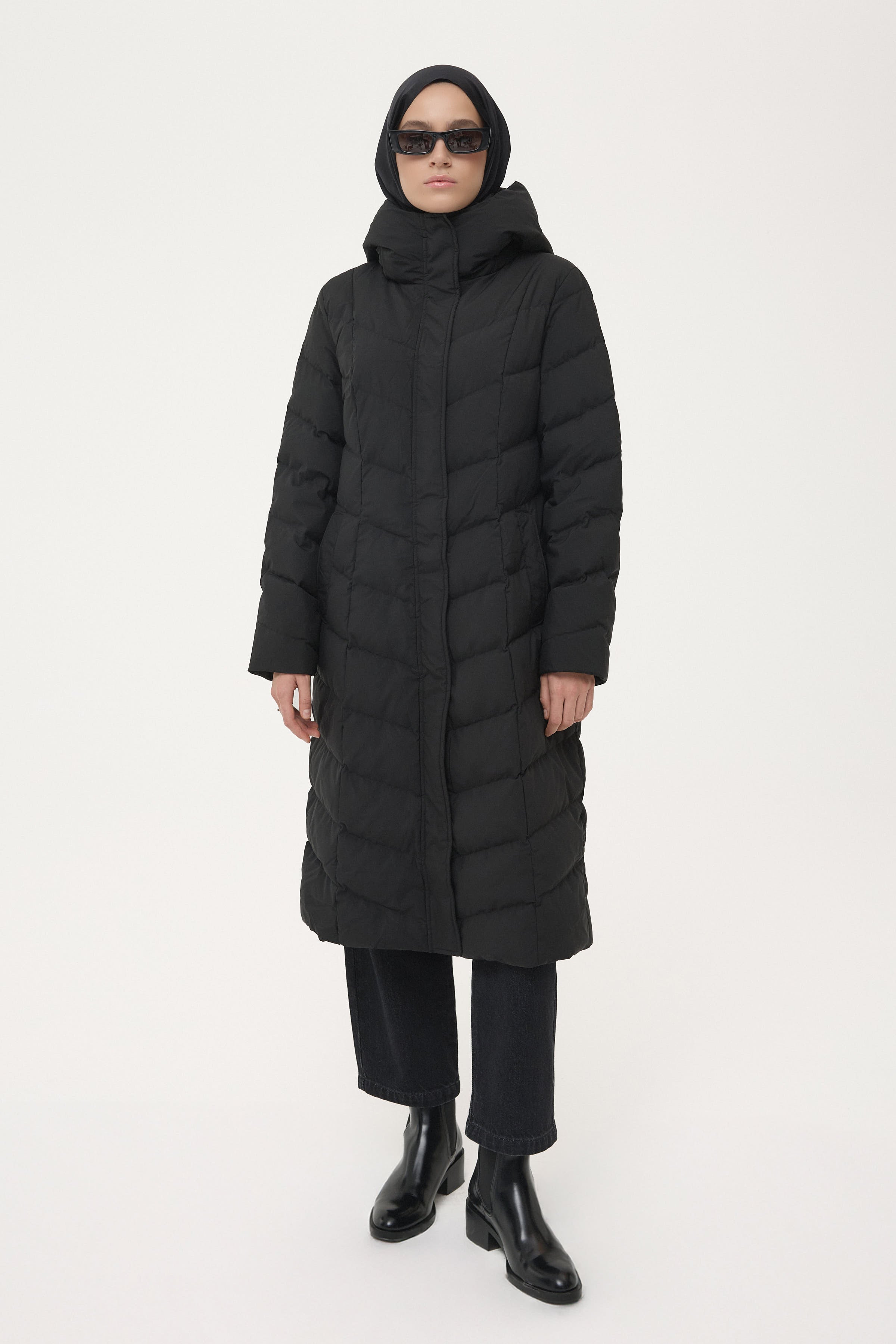 Kaz tüyü dolgulu kaban, ısıyı eşit dağıtan yapısıyla soğuk havalarda güçlü bir koruma sağlar.