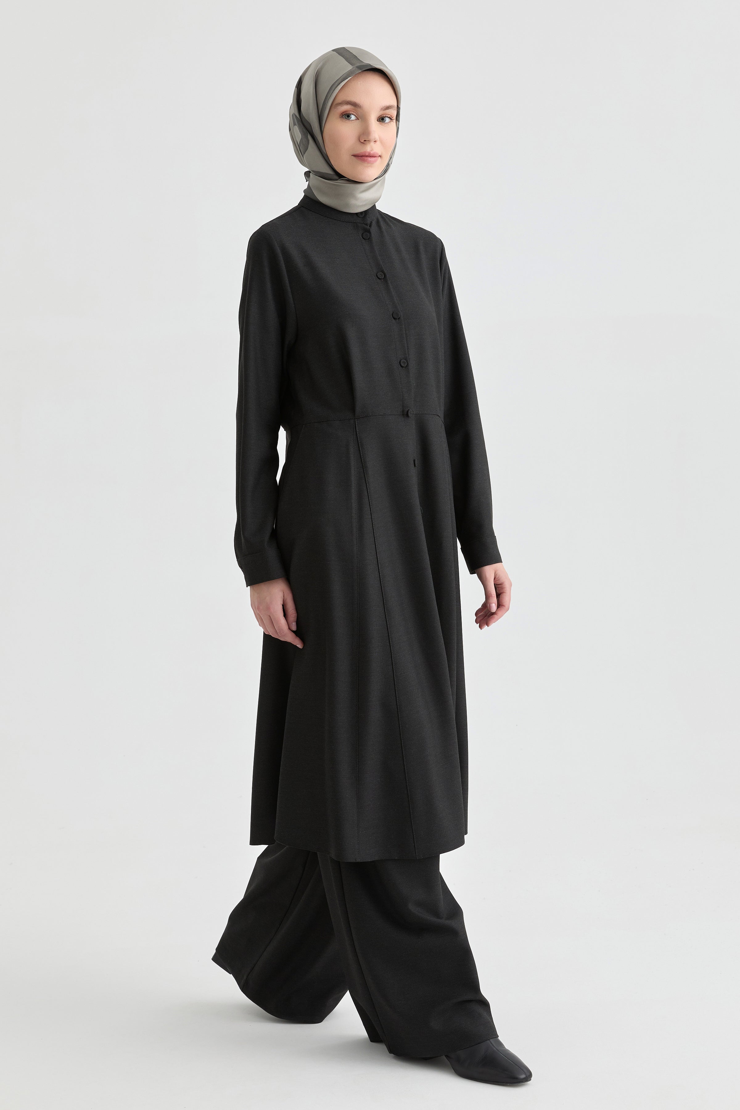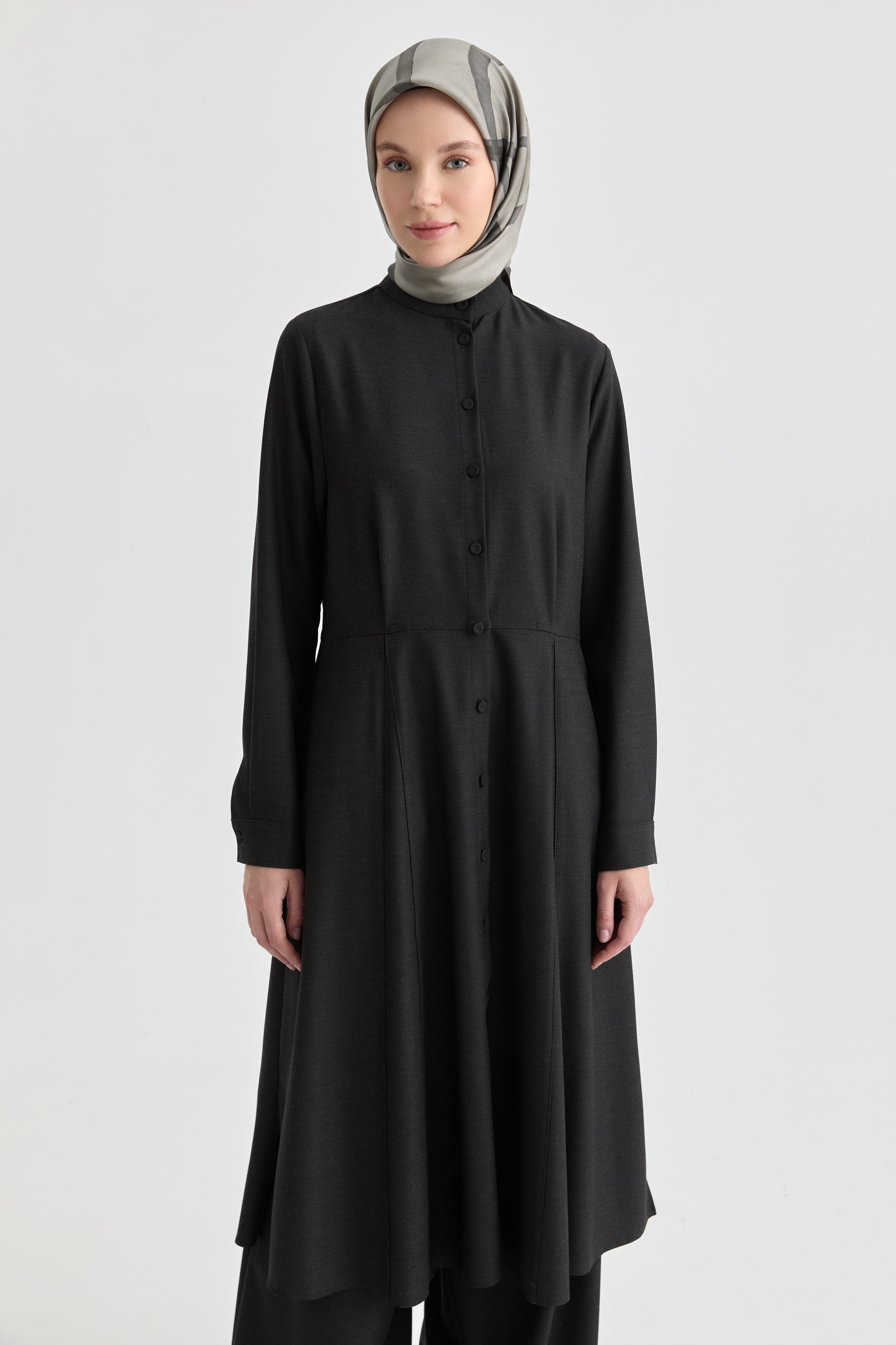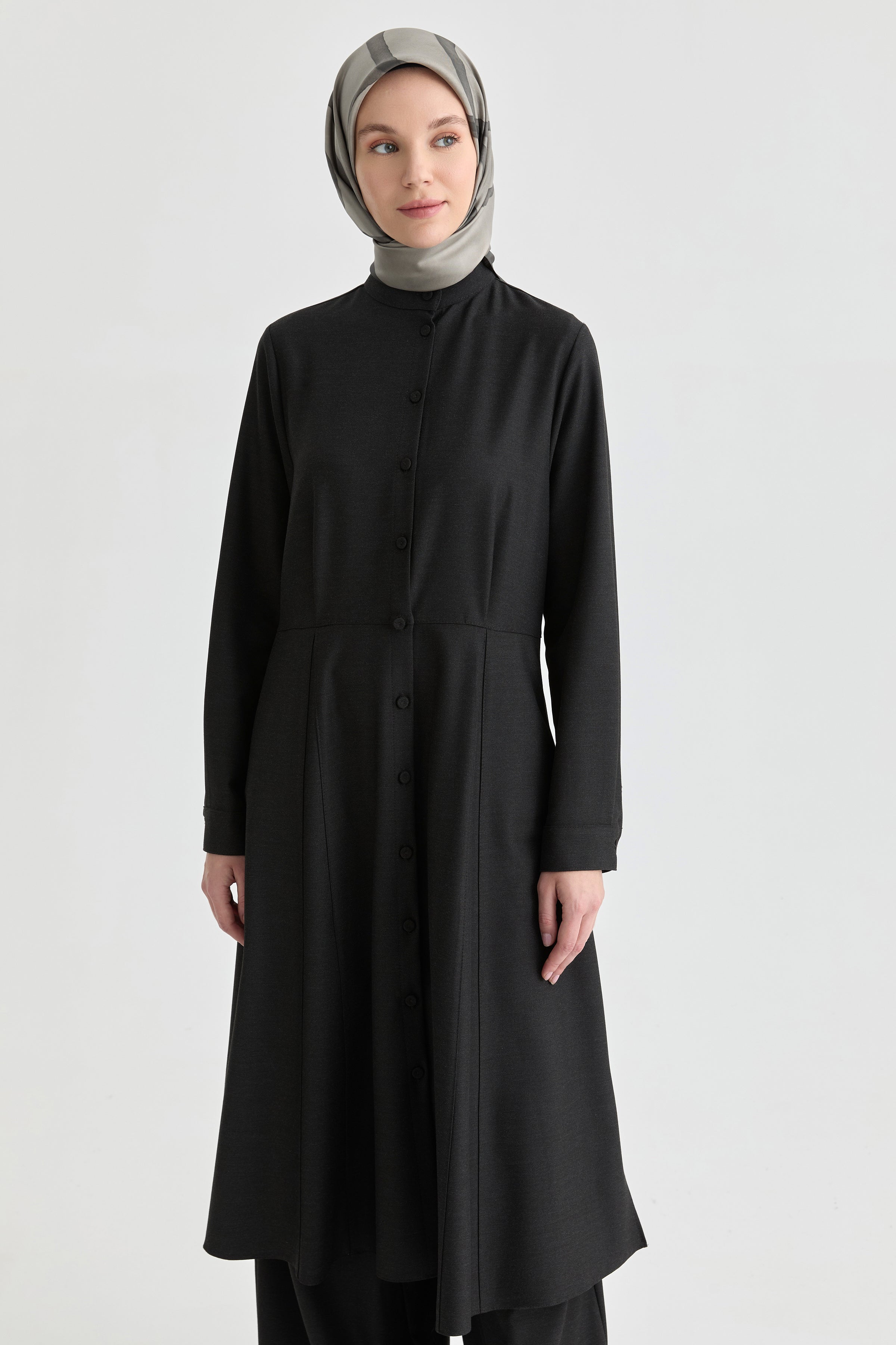 Önden Pile Detaylı Tunik - Antrasit