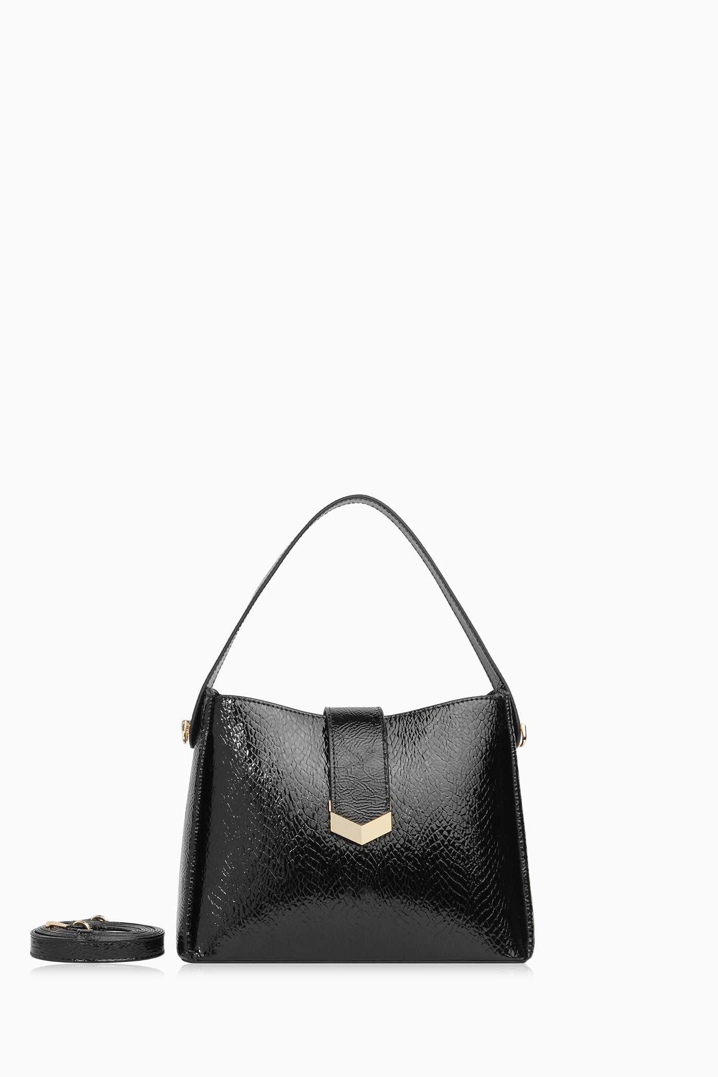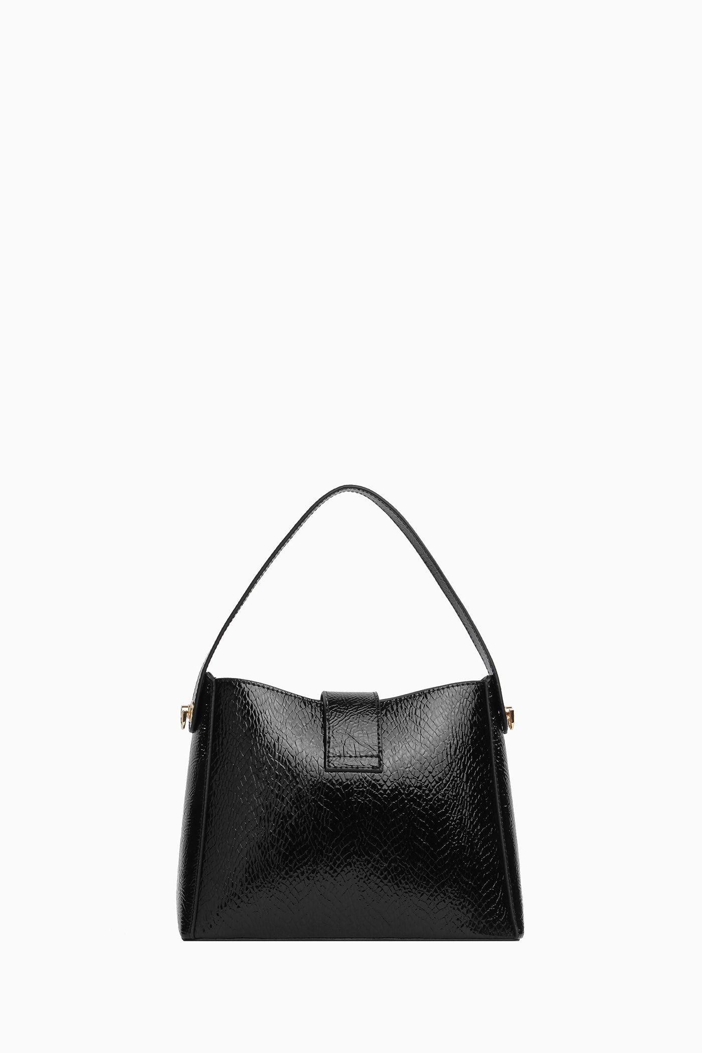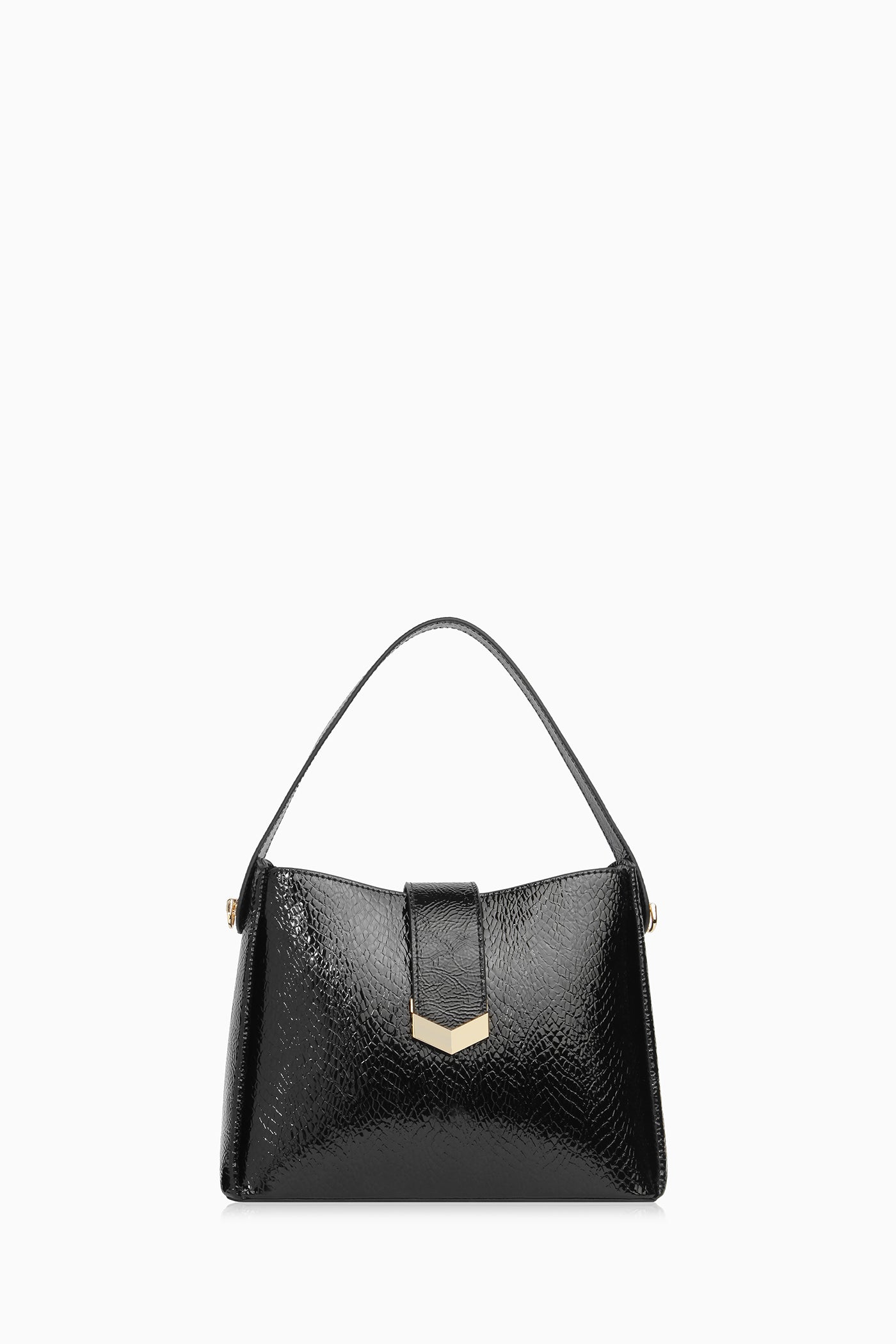 Zarif tokasıyla öne çıkan bu çanta, minimal tasarımıyla sade ama etkileyici bir duruş sunar. Kaliteli dokusu ve kusursuz formu, günlük şehir stilinden özel davet kombinlerine kadar her görünüme uyum sağlar.