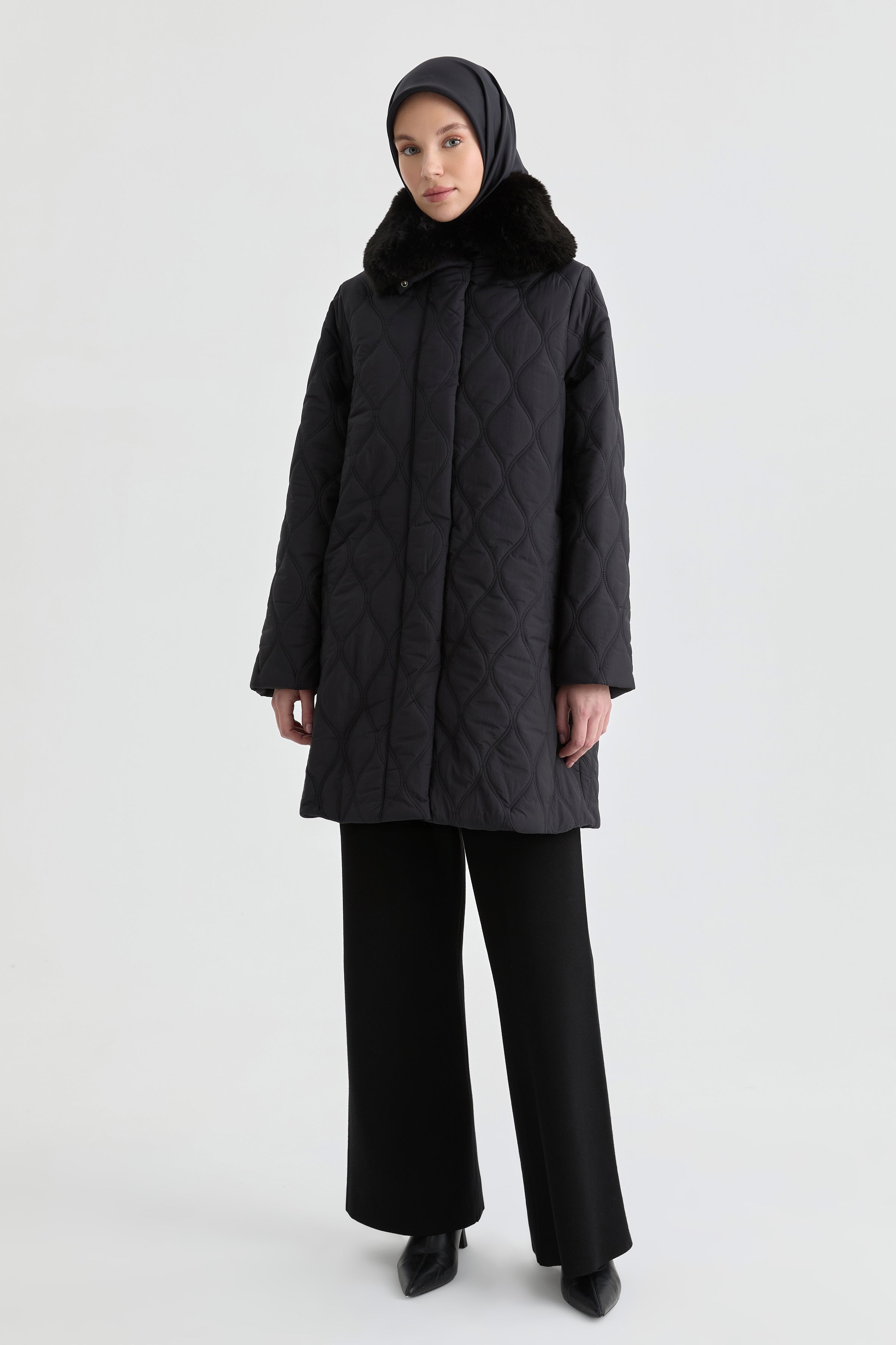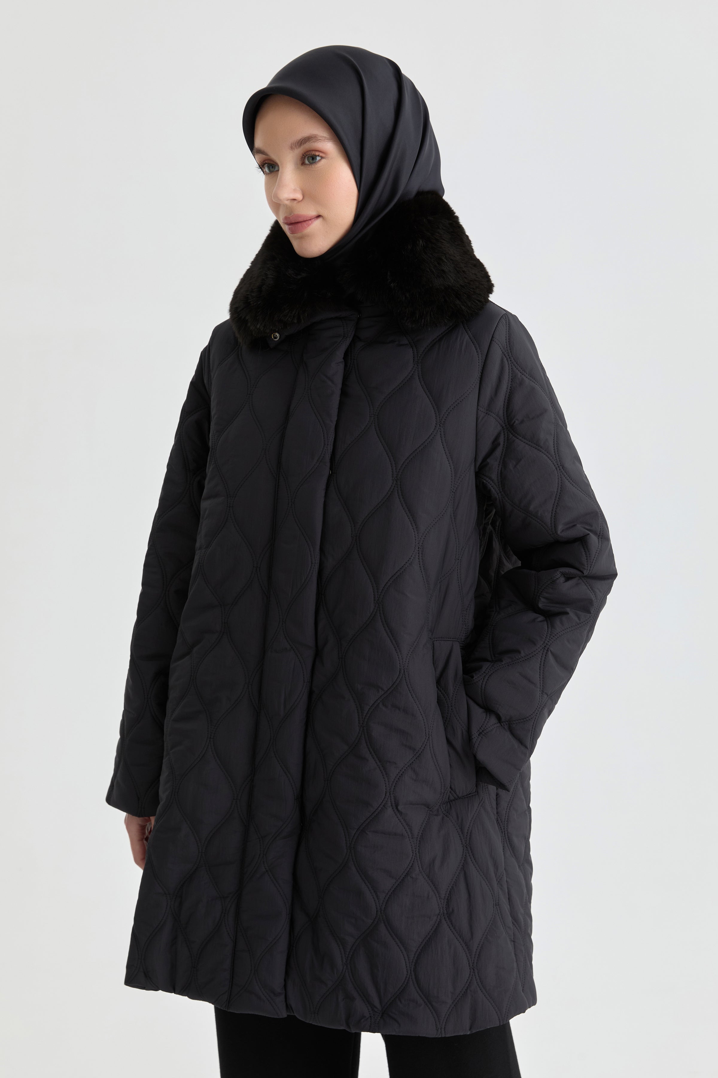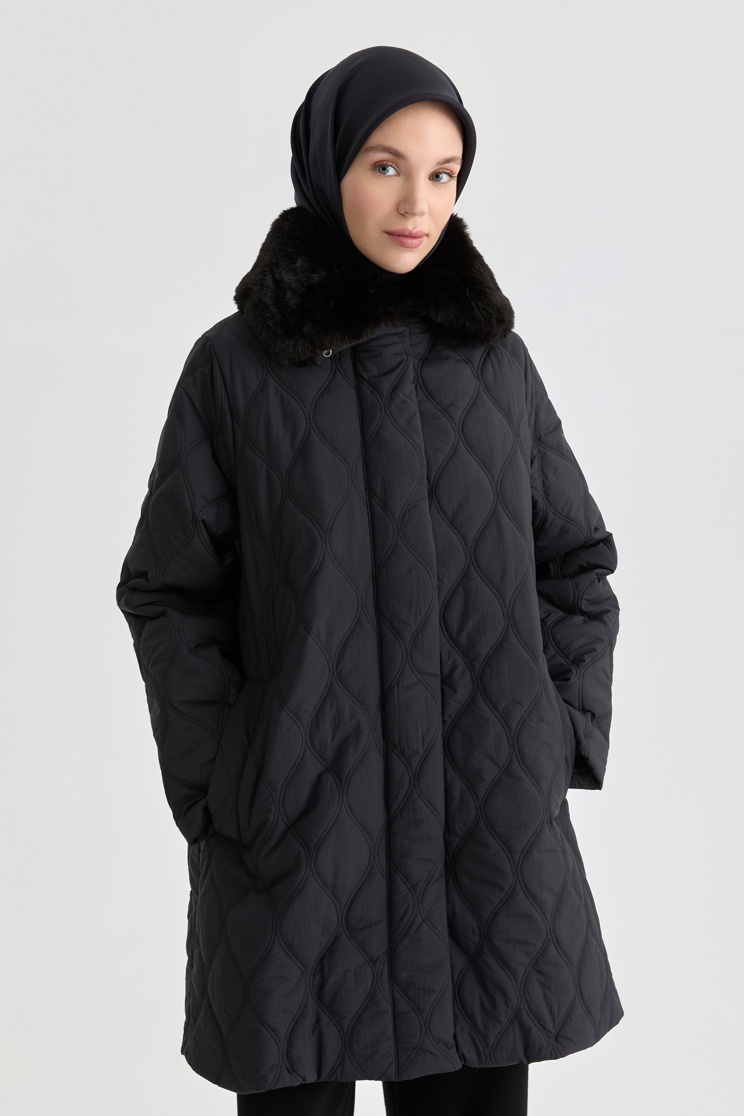 Yumuşak dokulu kürk detaylı yakasıyla sıcaklığı ve şıklığı bir araya getiren Yakası Kürk Detaylı Kaban, güçlü silueti ve modern kesimiyle sezonun en iddialı dış giyim parçalarından biri.