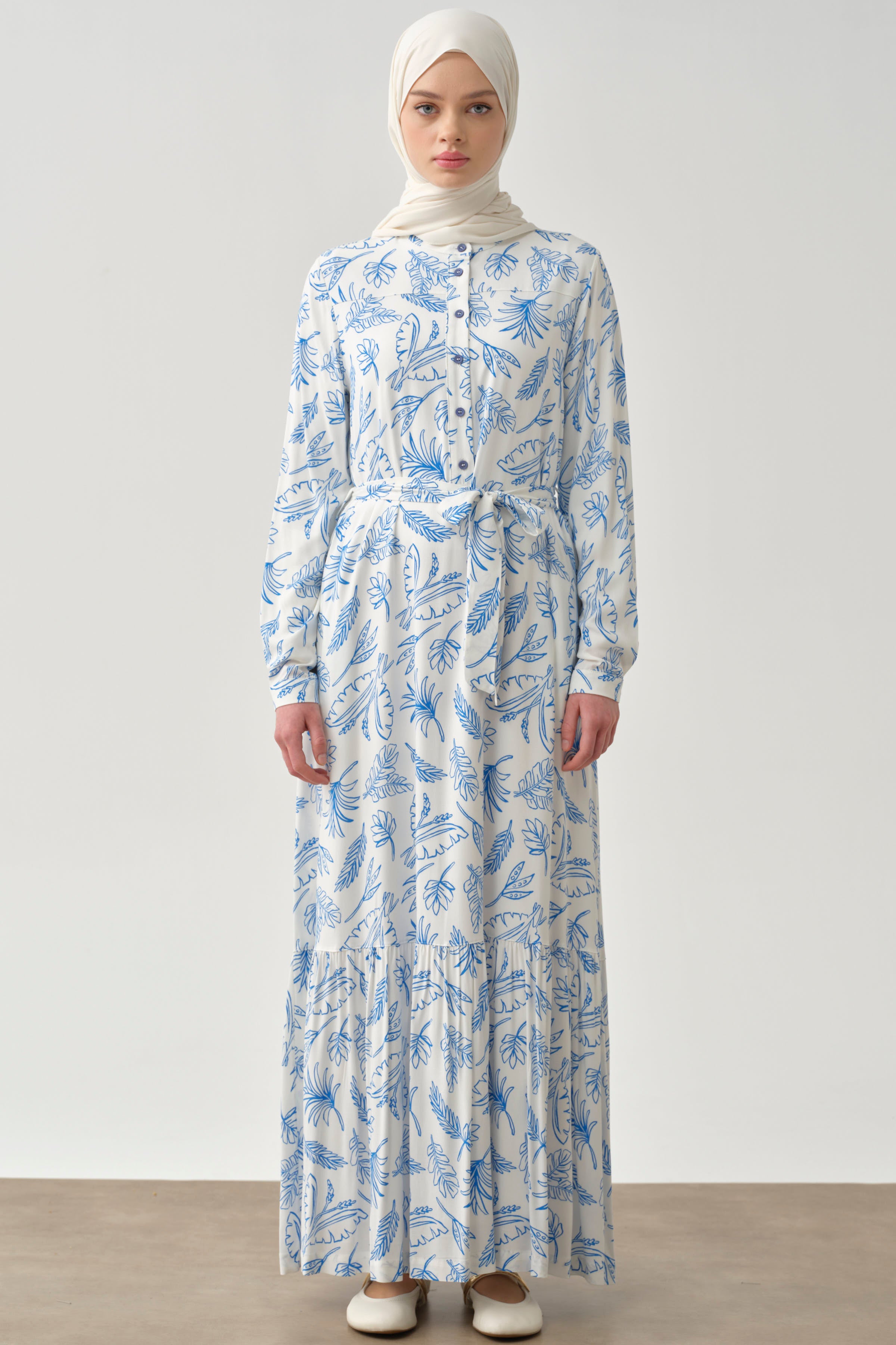 Günlük stilinize hareket katan ve özel günlerde şıklığınızı tamamlayan beli kuşaklı desenli elbise, rahat kesimi ve zarif detaylarıyla gardırobunuzun en özel parçalarından biri olmaya aday!