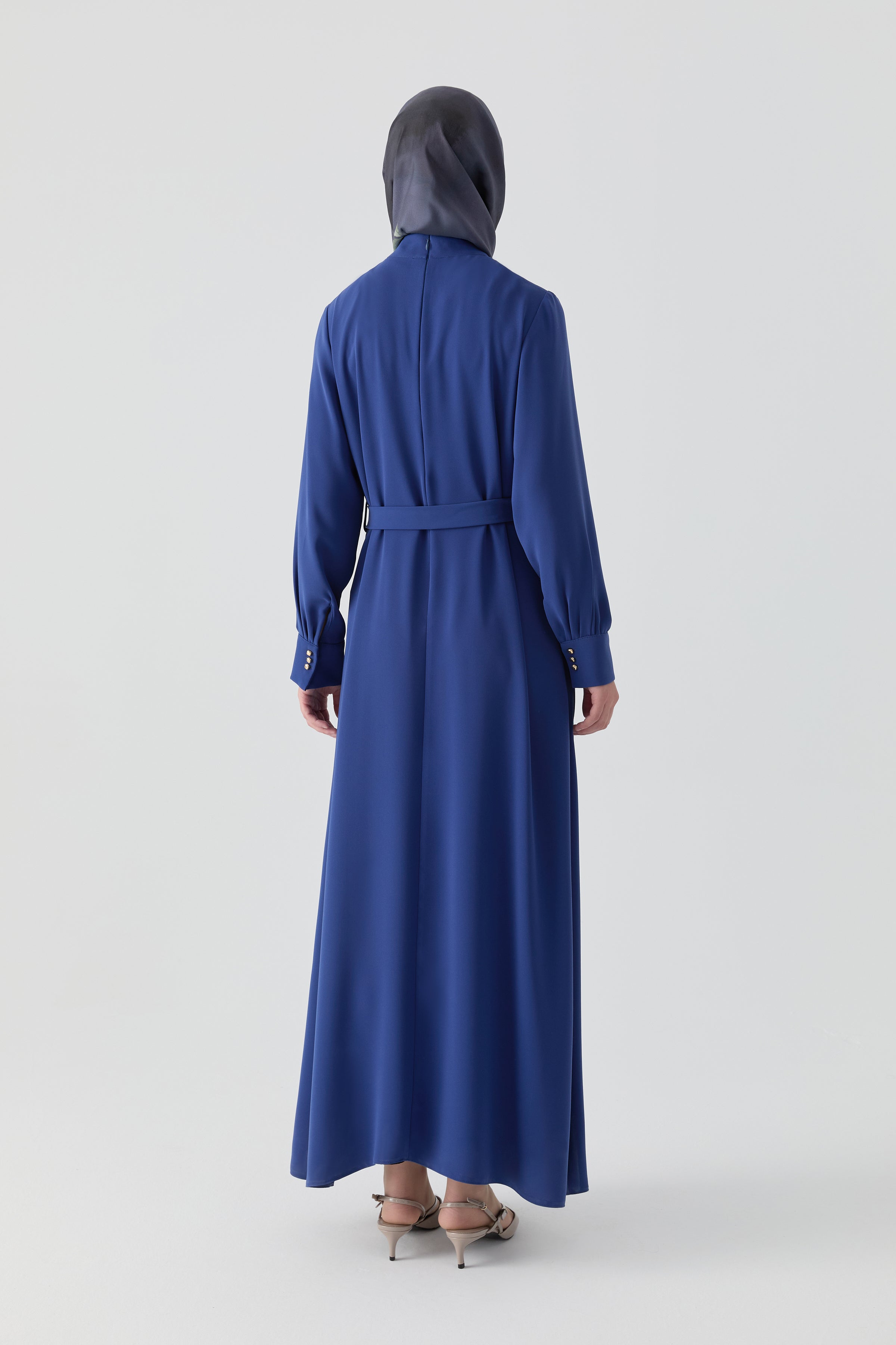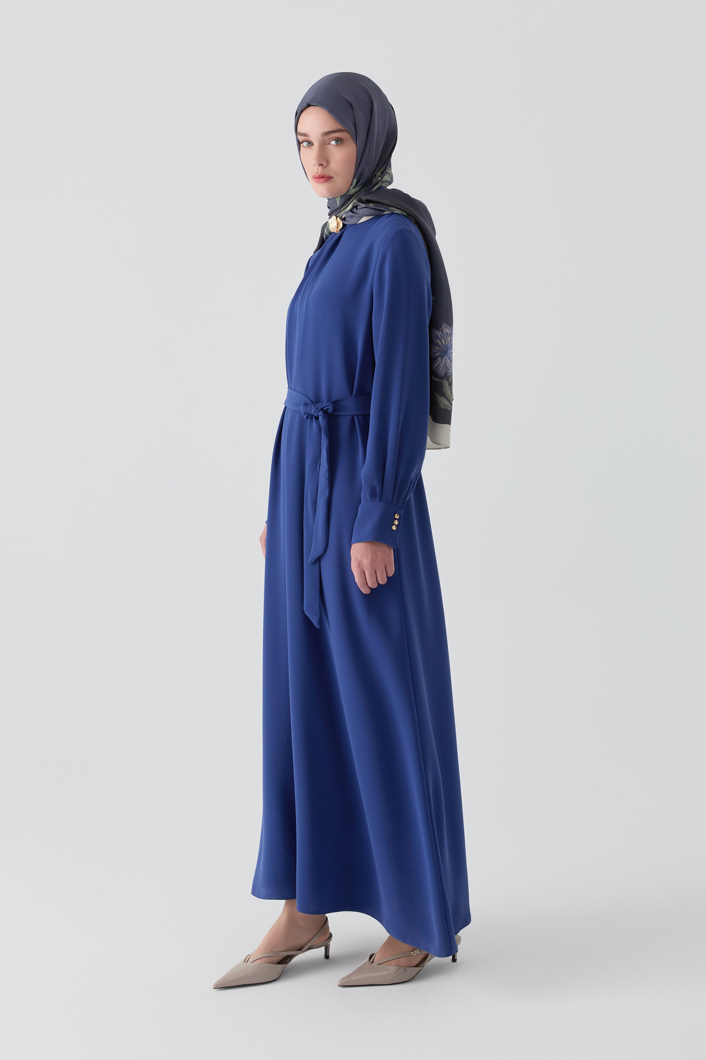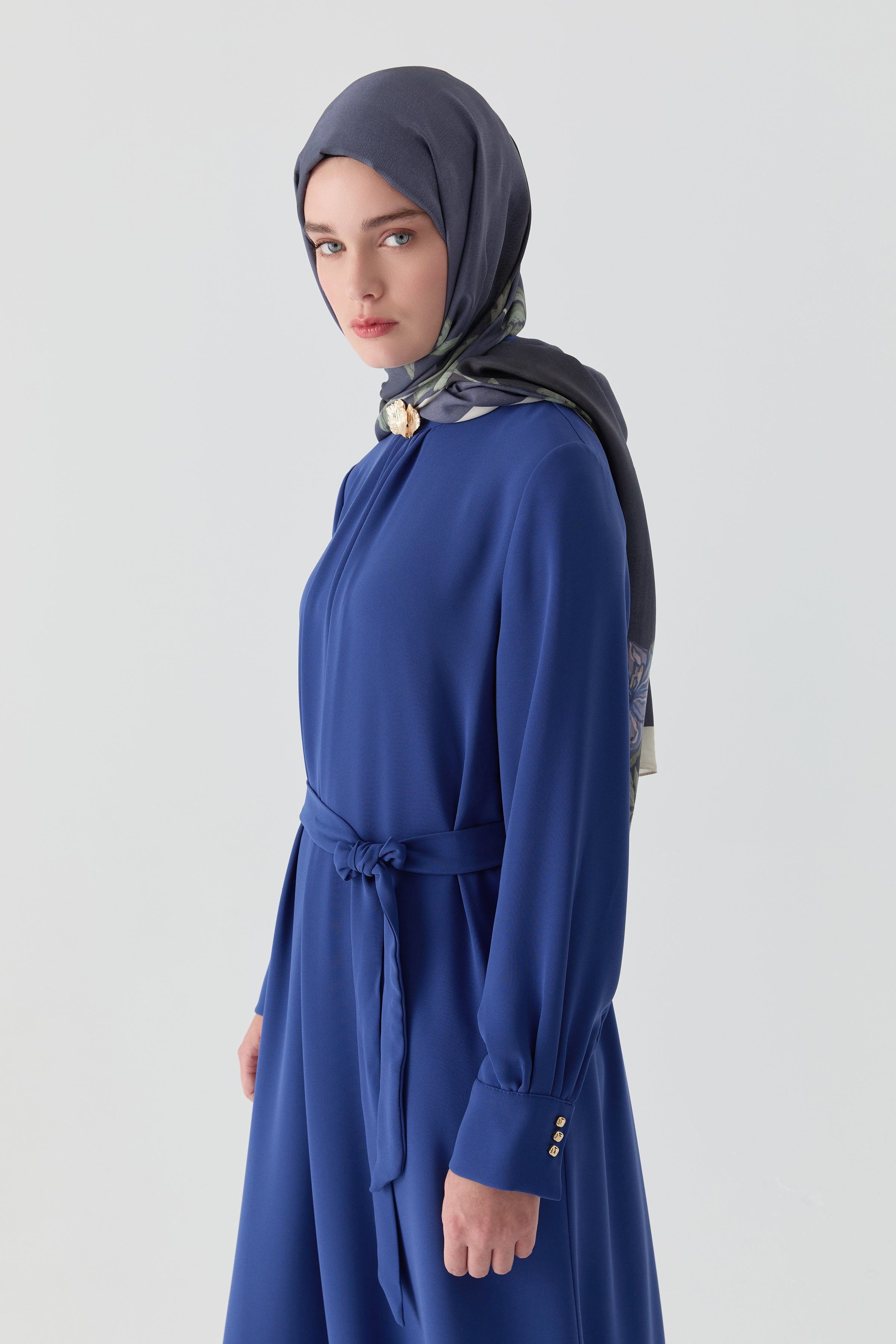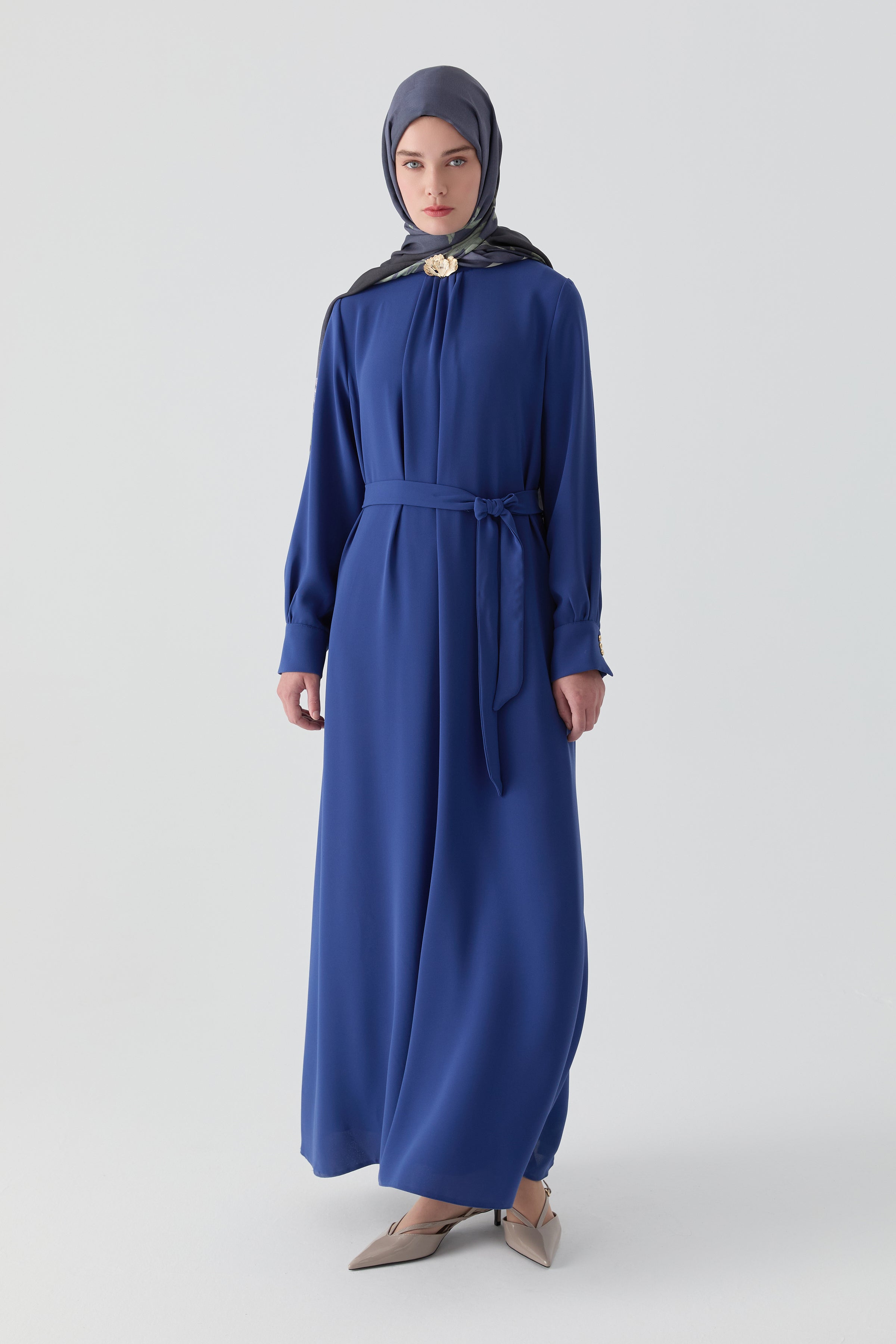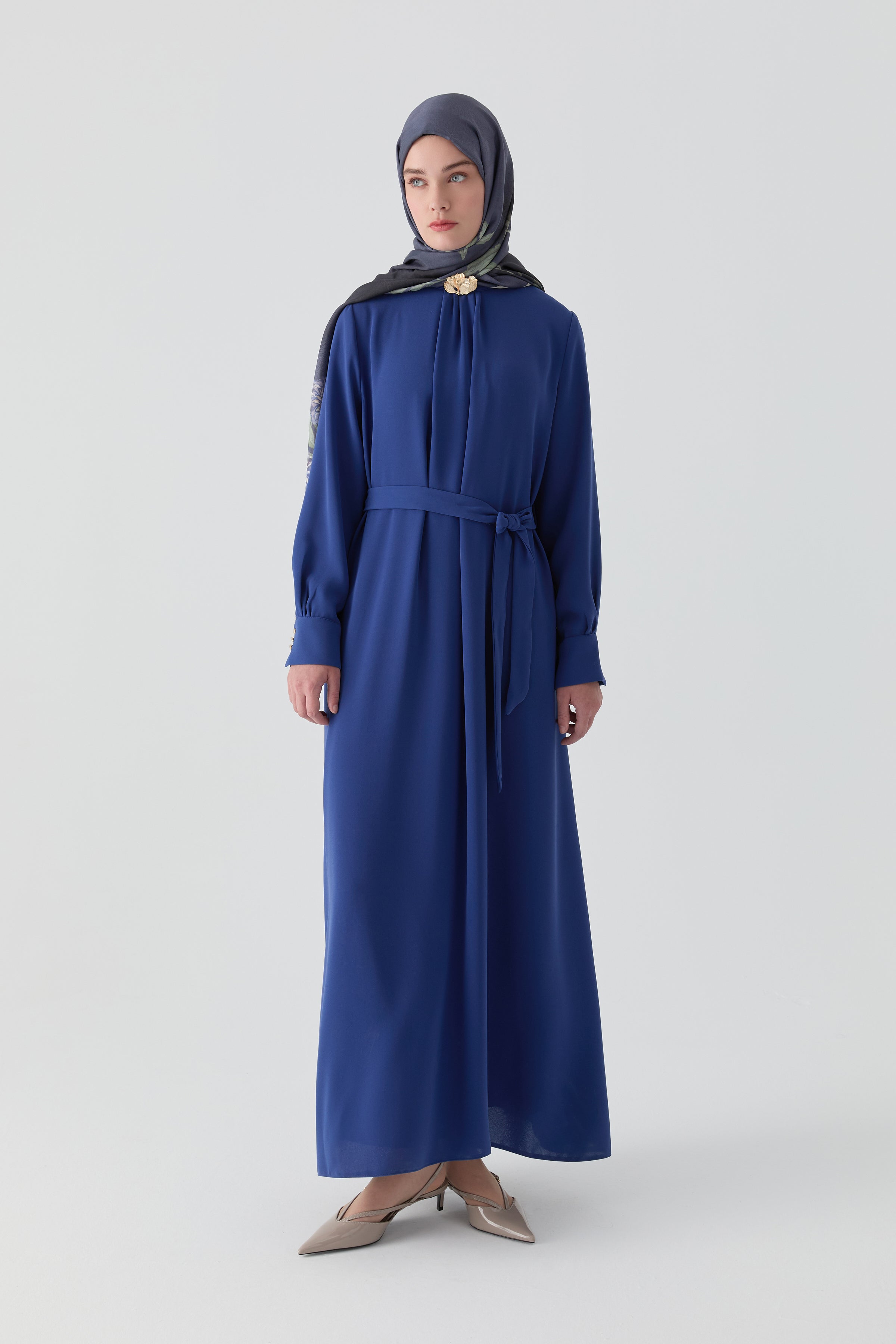 Zarif kırma detaylarıyla öne çıkan bu elbise, feminen silueti ve modern çizgileriyle şıklığı ön plana çıkarır.