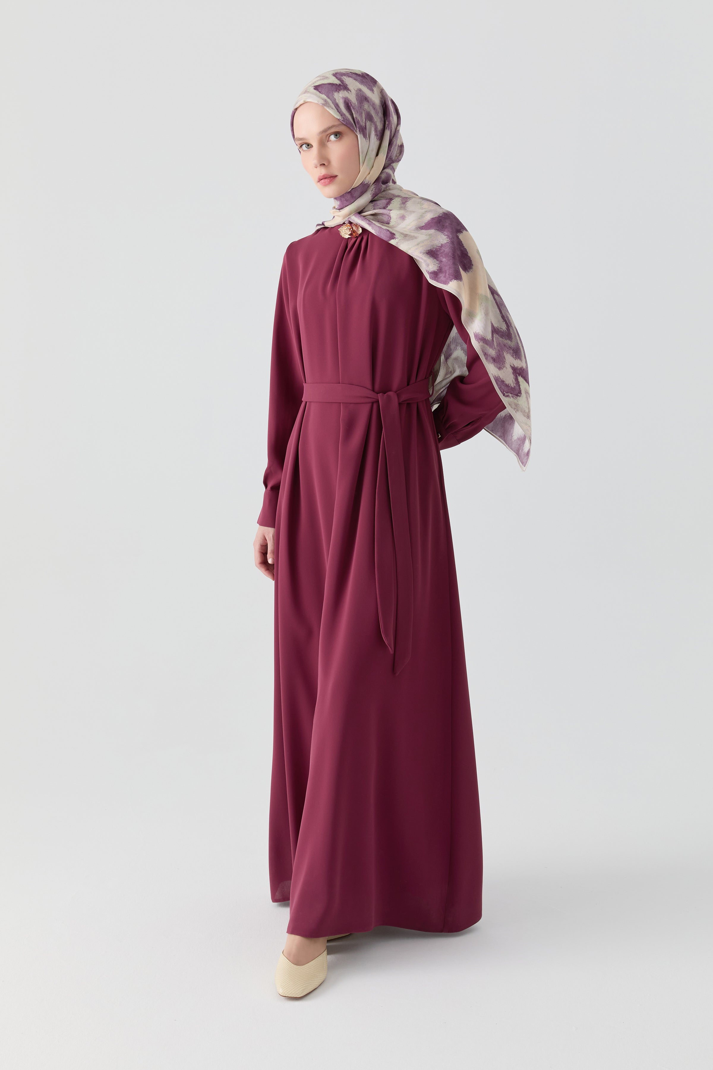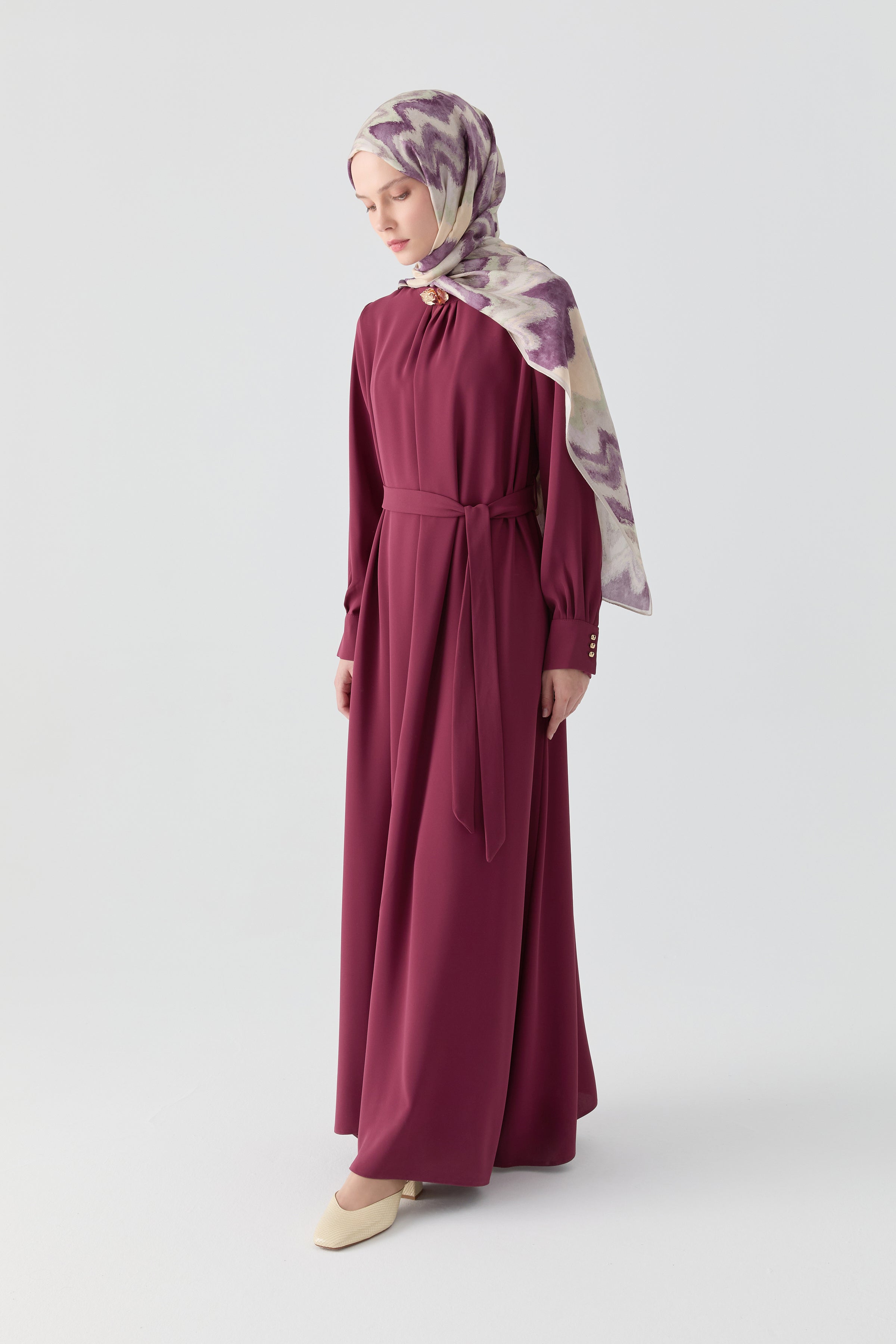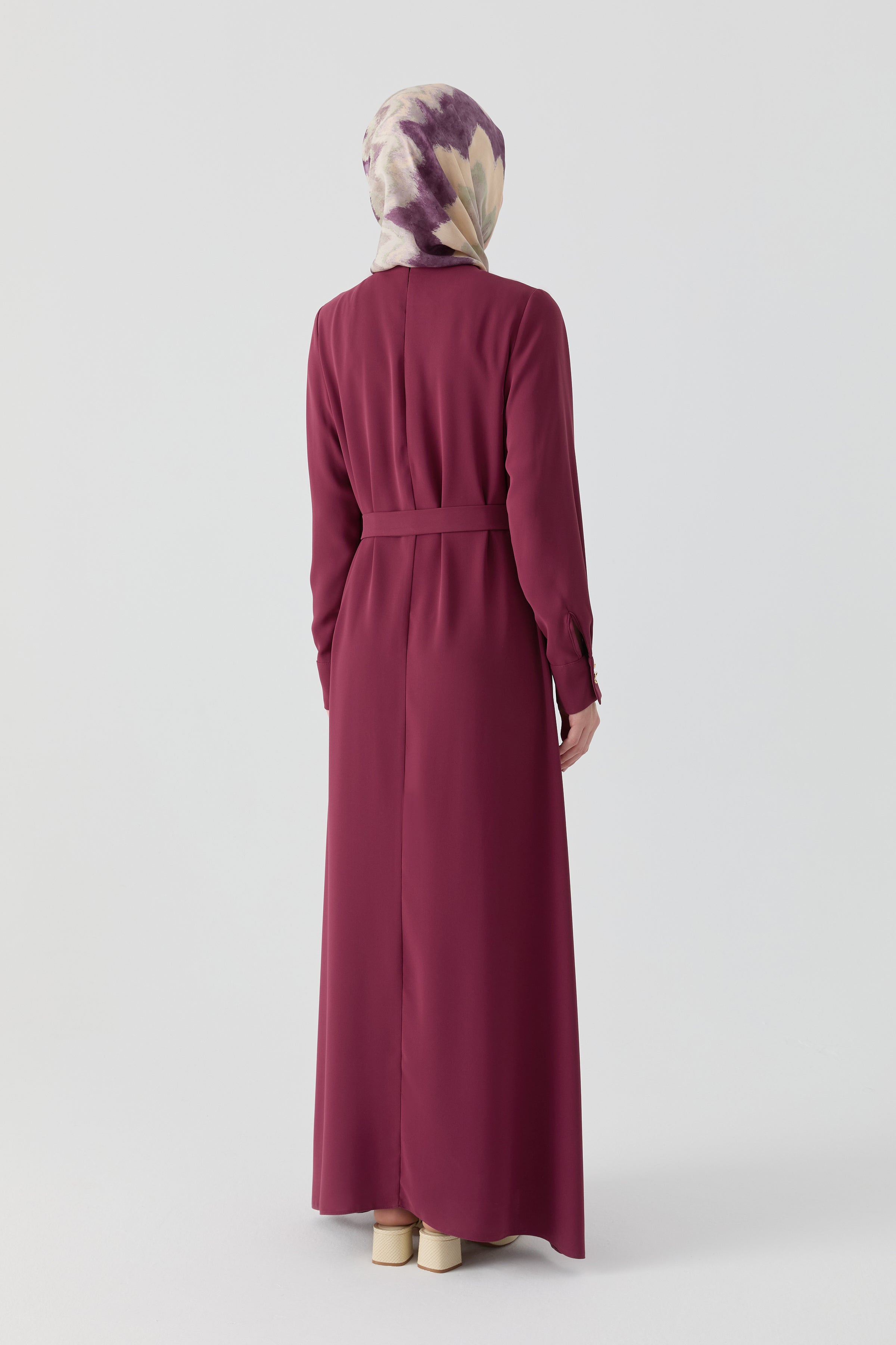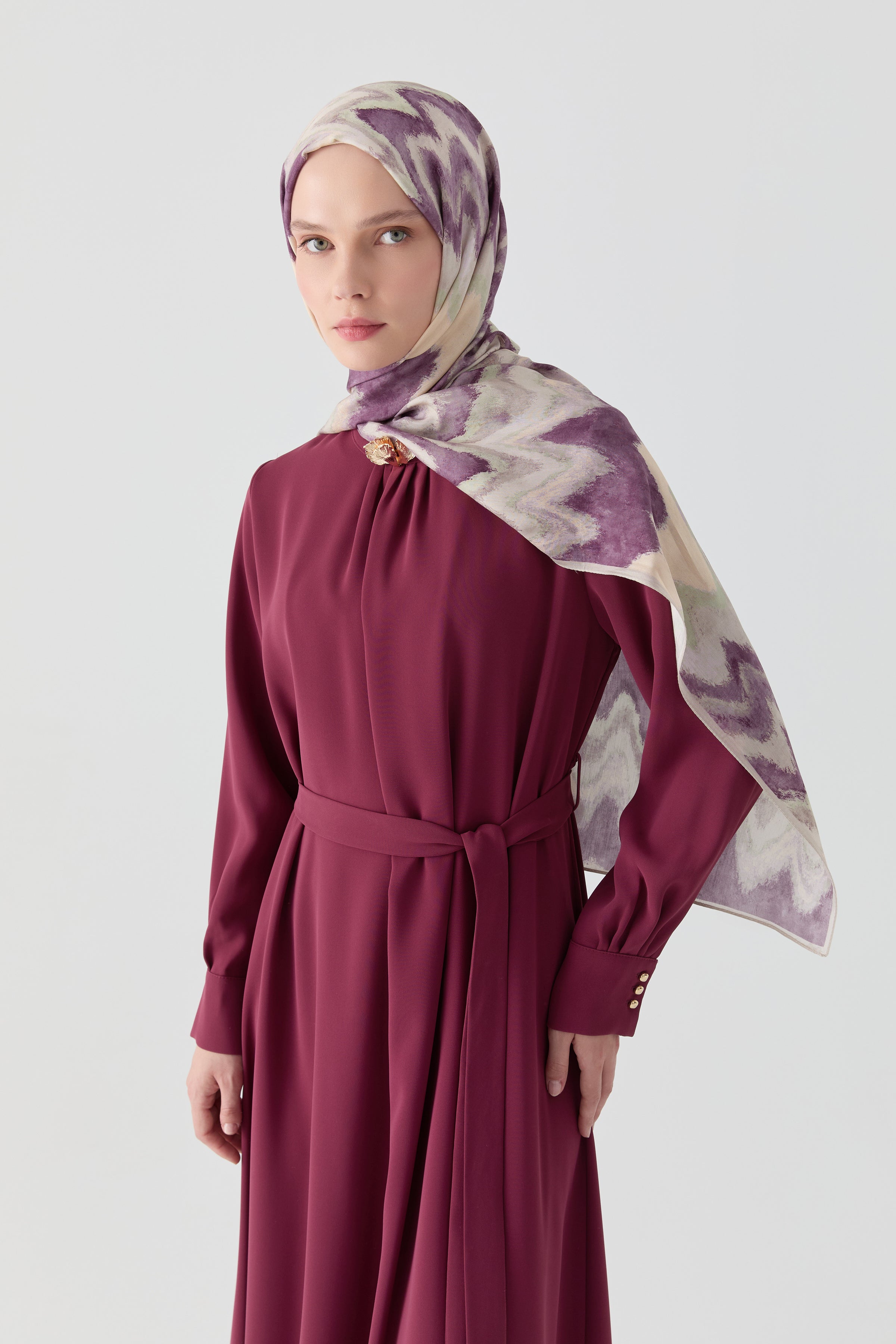 Zarif kırma detaylarıyla öne çıkan bu elbise, feminen silueti ve modern çizgileriyle şıklığı ön plana çıkarır.