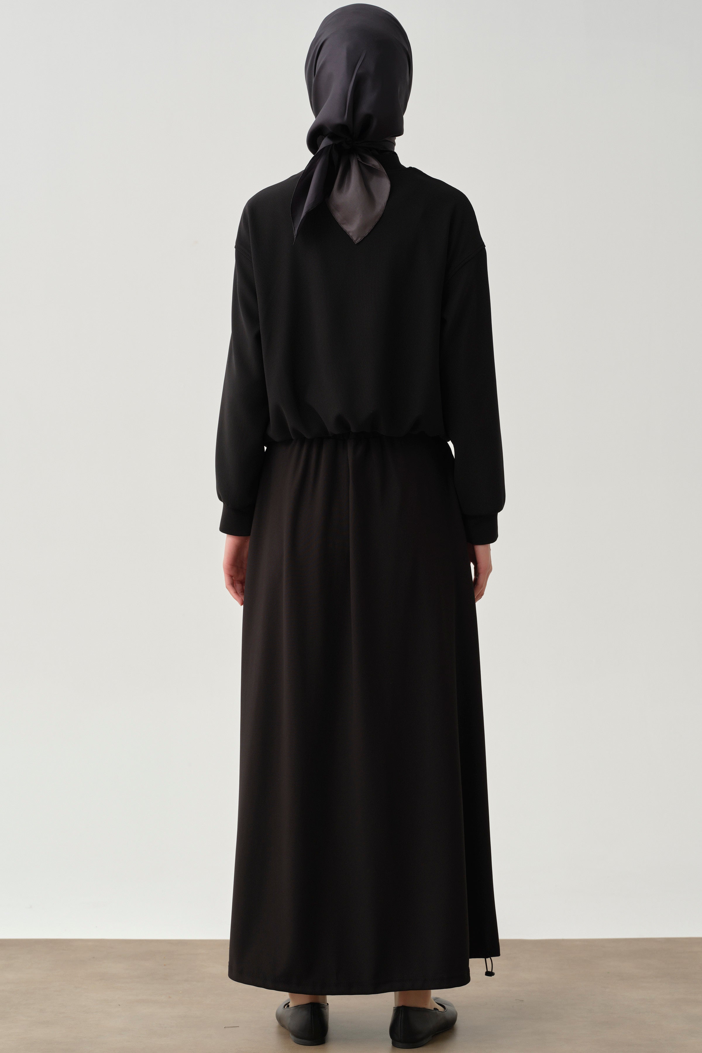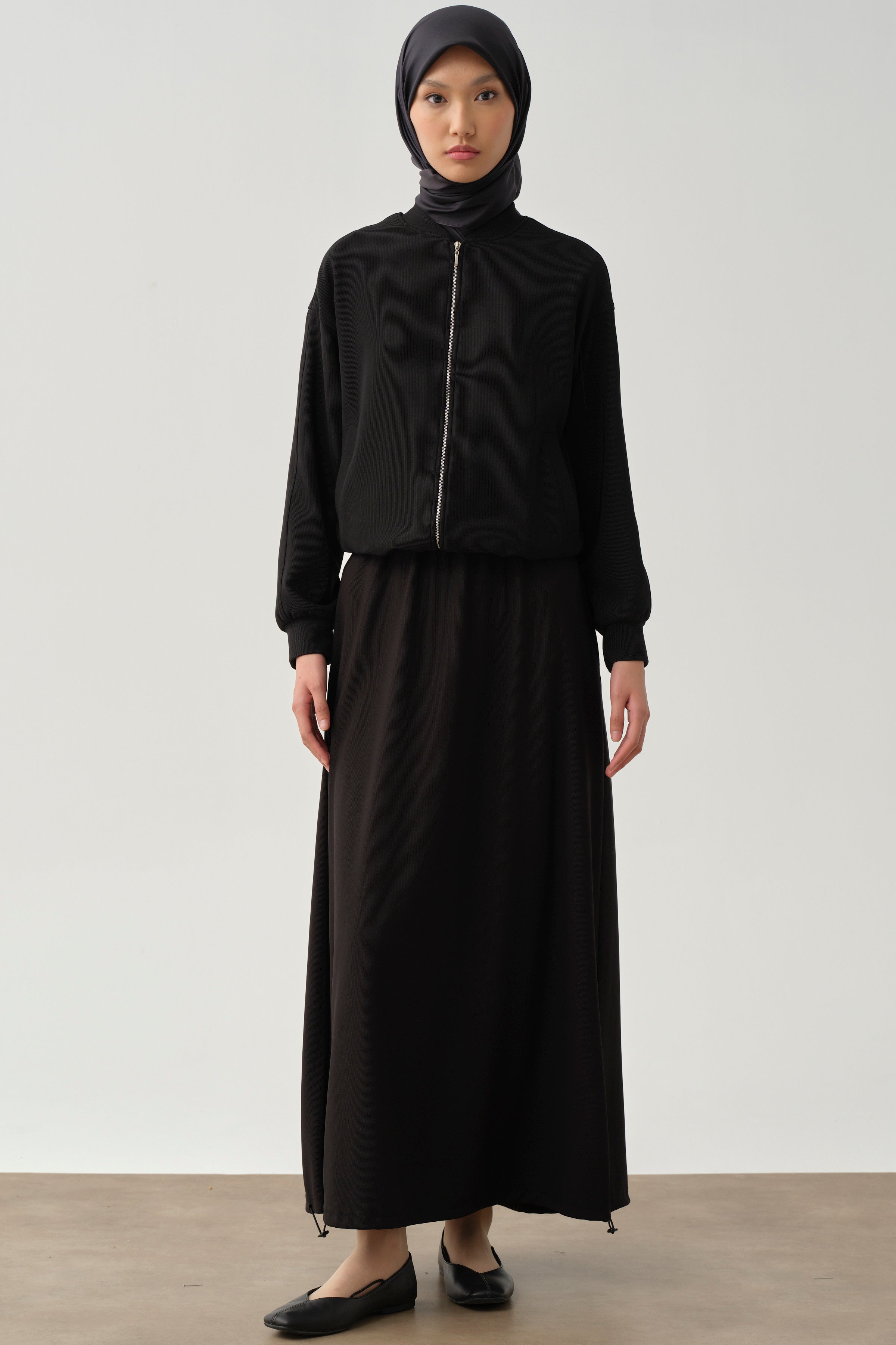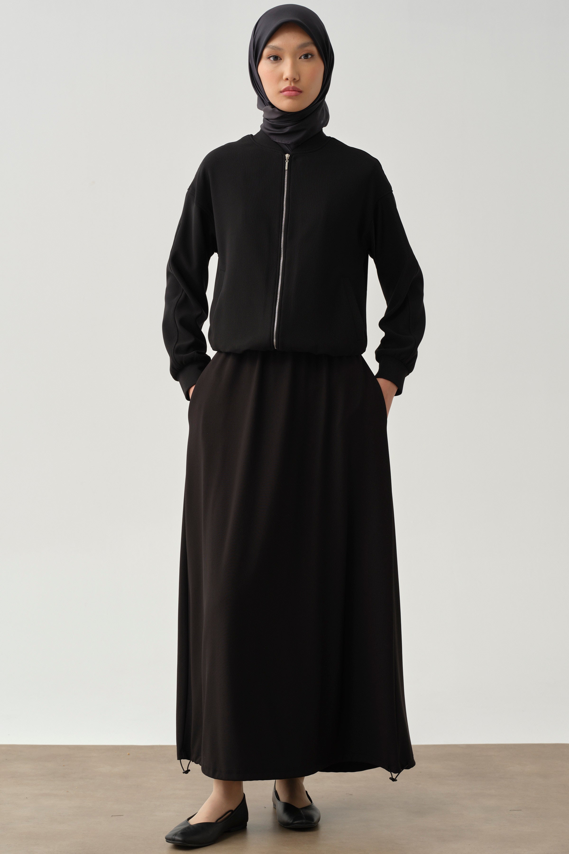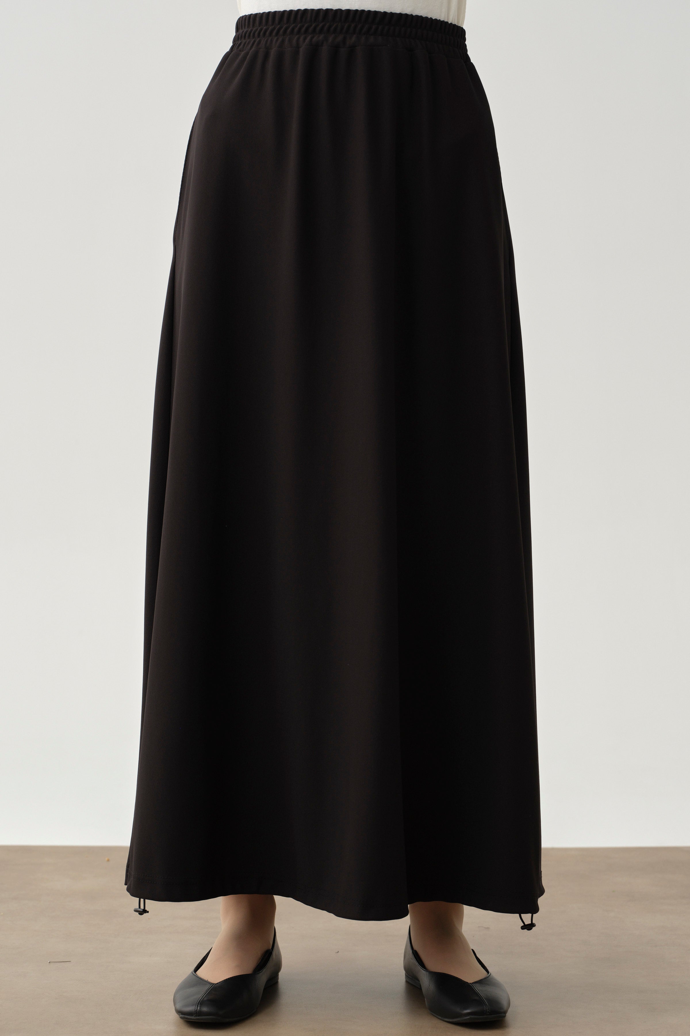 Gizli Cepli Lastikli Örme Etek - Siyah