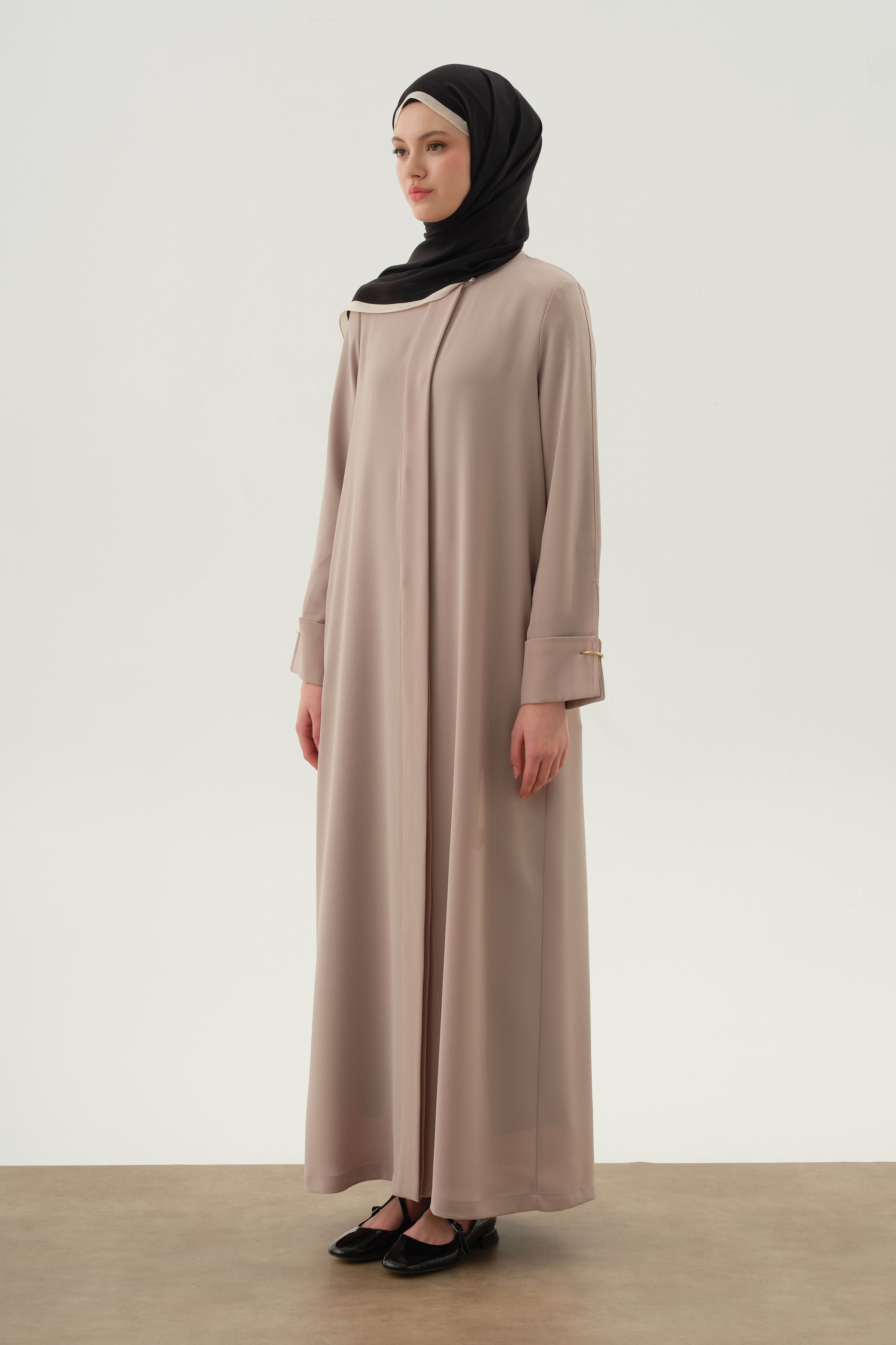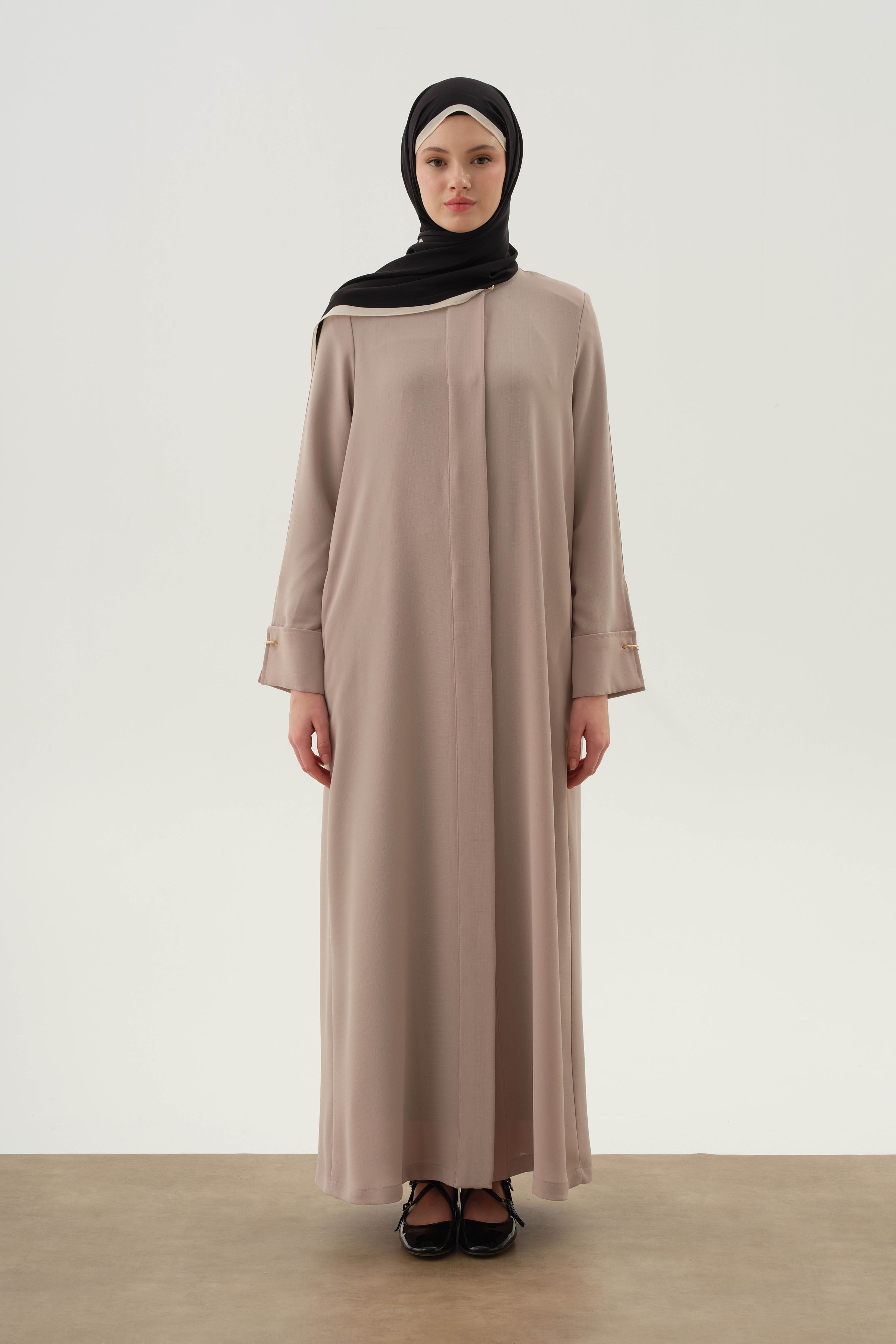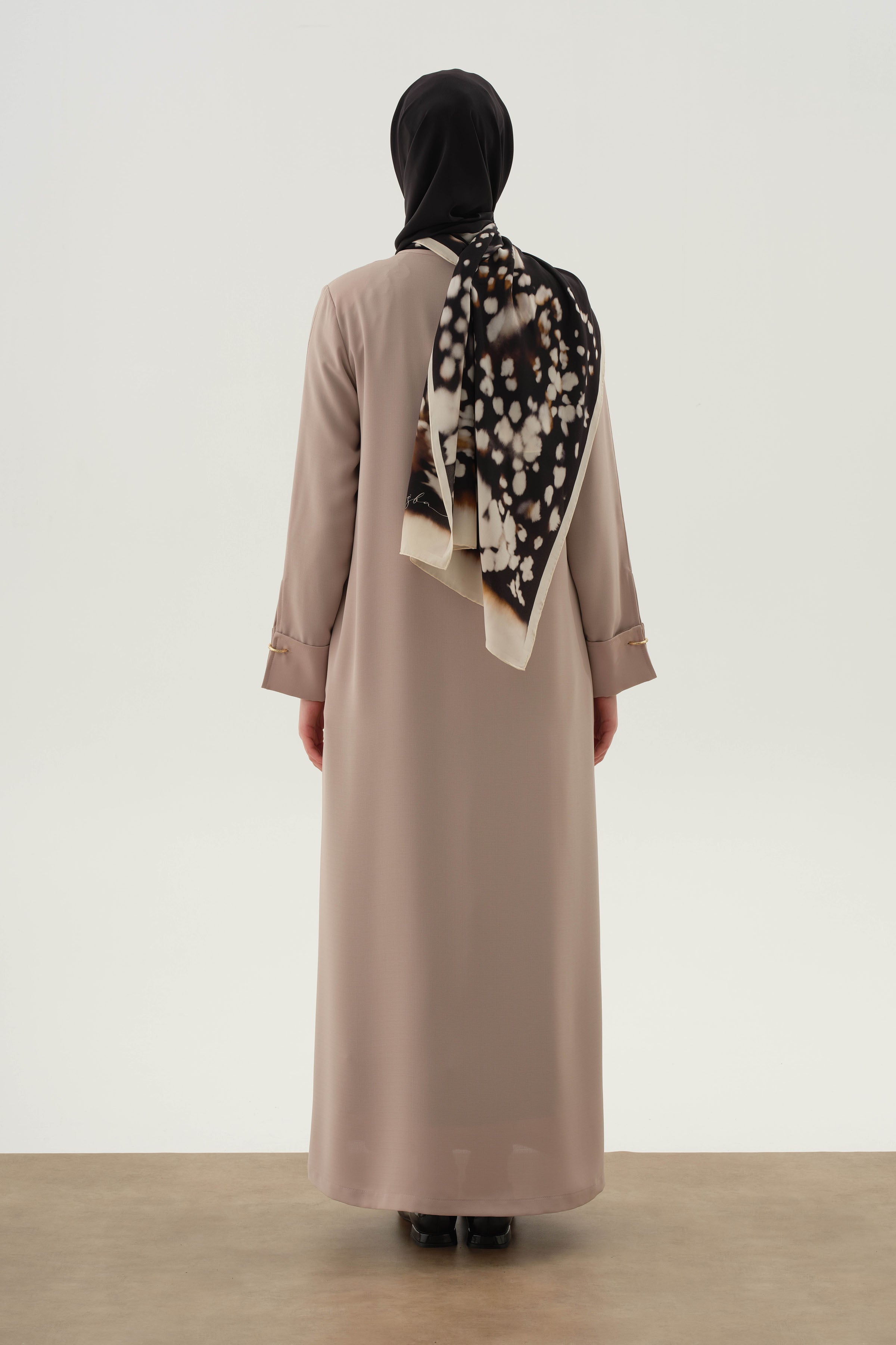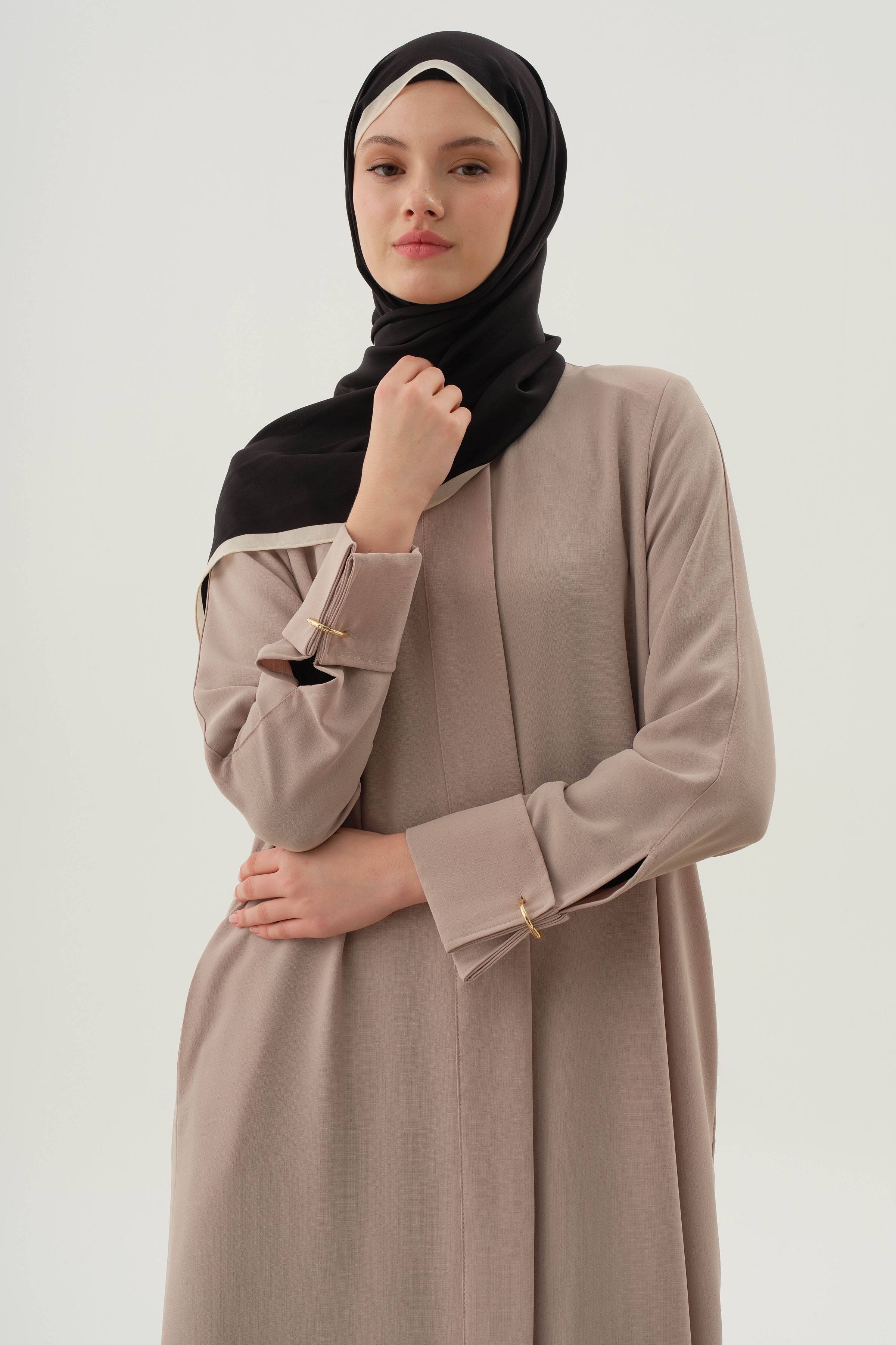 Duble manşet detaylarıyla zarif bir duruş sergileyen bu ferace, sade tasarımıyla şıklığı ön plana çıkarır. Akıcı yapısı ve rahat kesimiyle konforlu bir kullanım sunar. Günlük stilinize modern ve zarif bir dokunuş ekler.