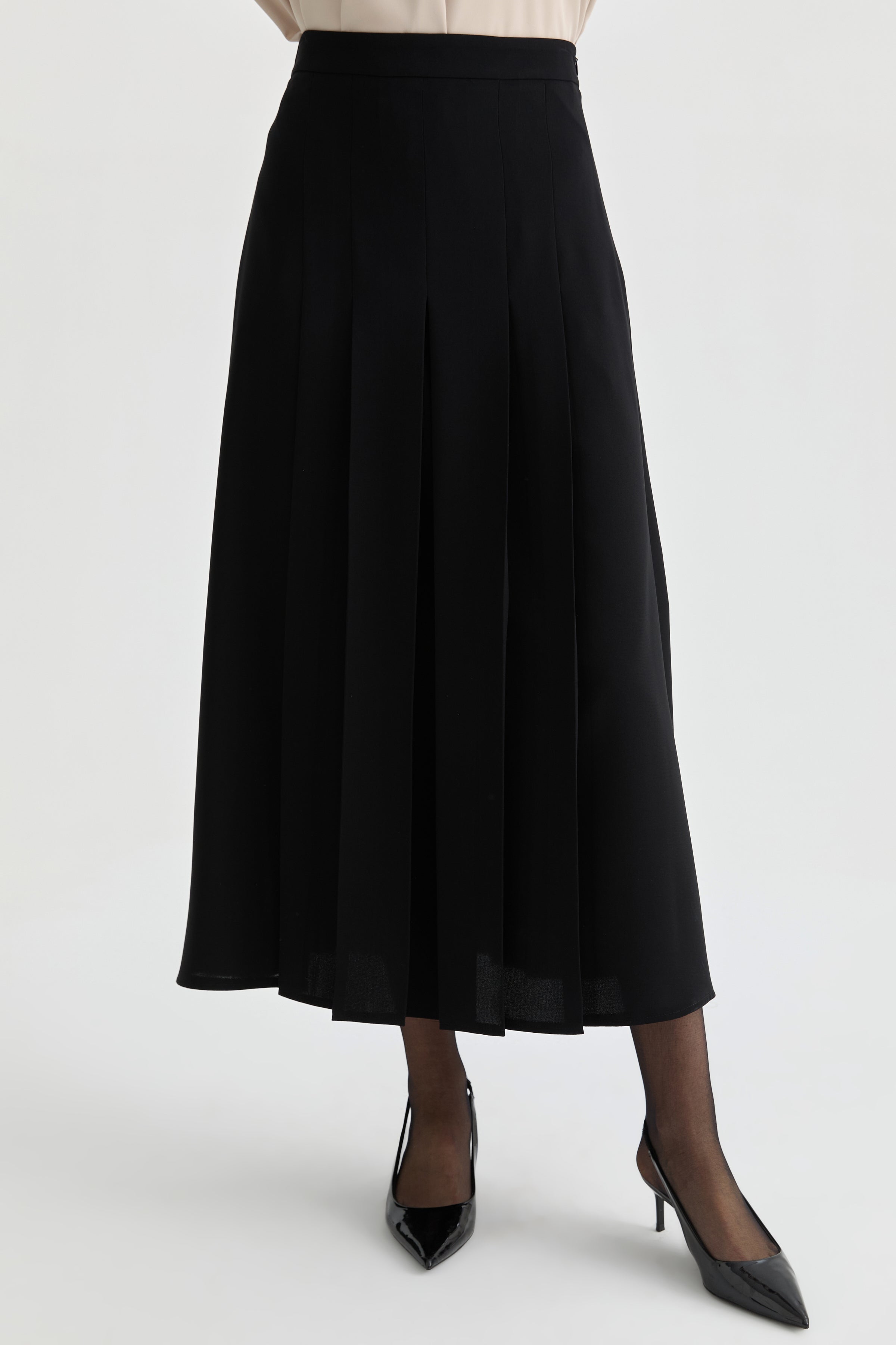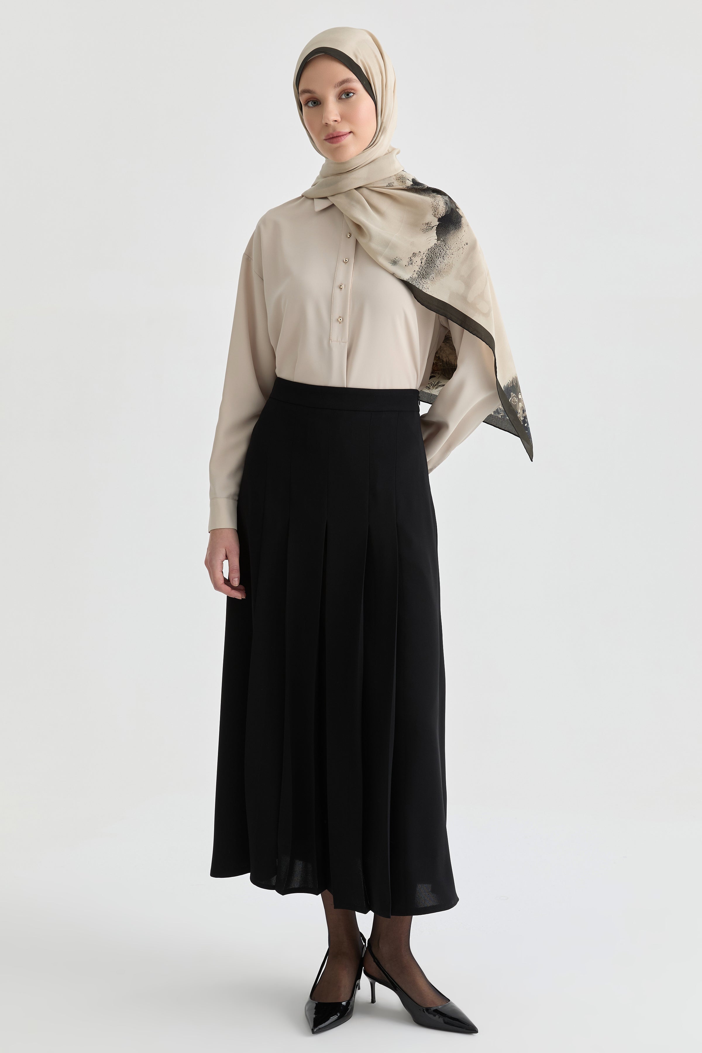 Büyük Beden Pili Detaylı Etek - Siyah