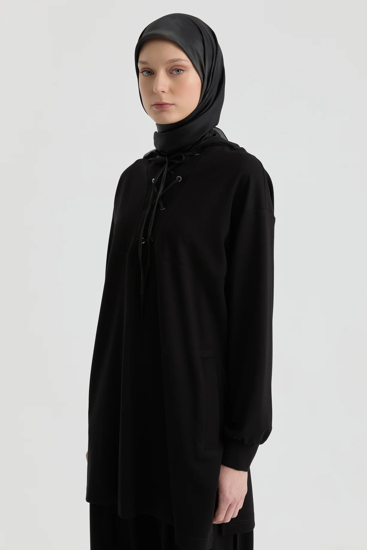 Deri detaylarla hareket kazanan örme sweat, rahat formunu güçlü bir dokunuşla tamamlar. Örme kumaşın yumuşak yapısı konfor sağlarken, deri kombinli bölümler modele net ve dikkat çekici bir duruş kazandırır.
