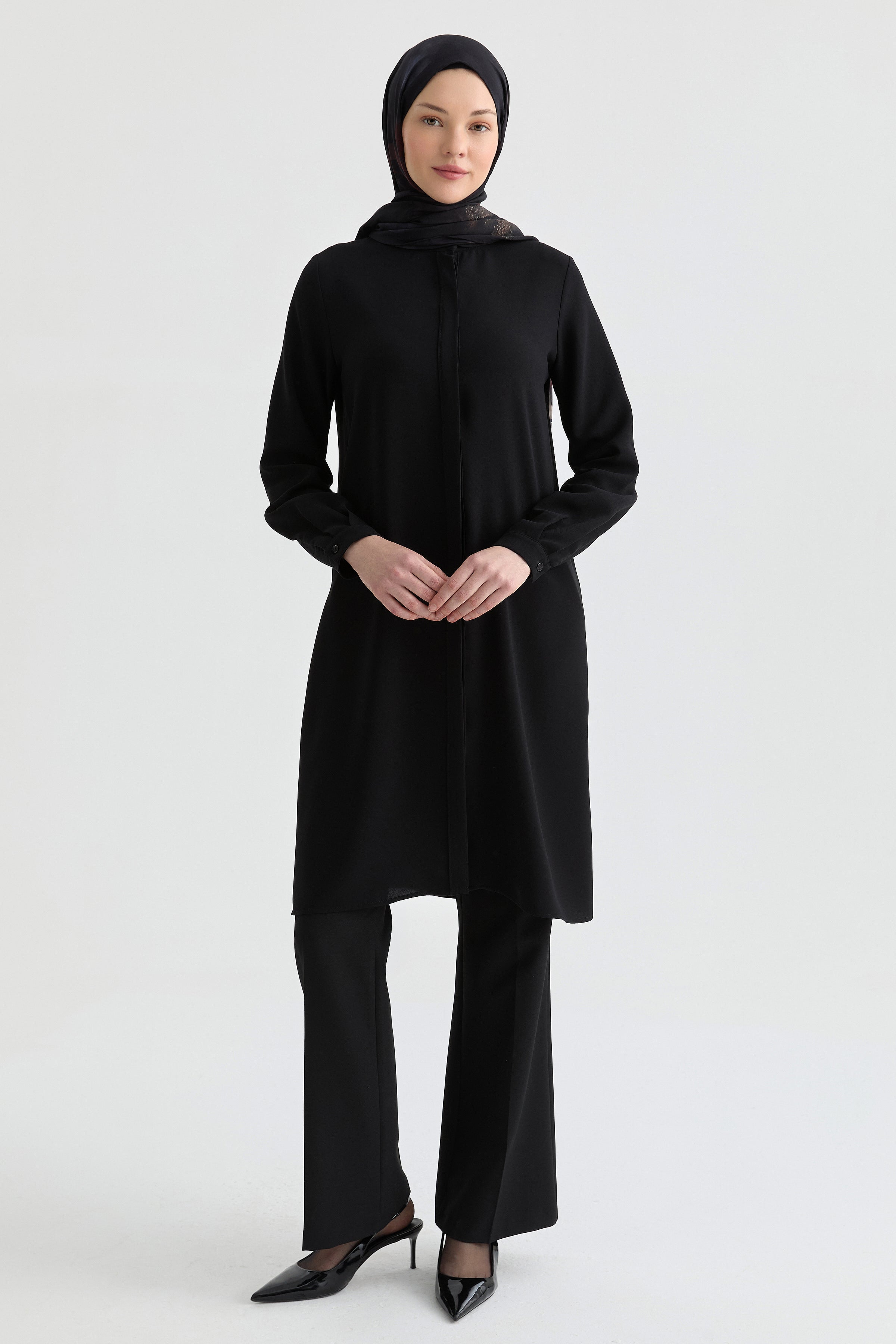Hakim Yaka Gizli Patlı Tunik - Siyah