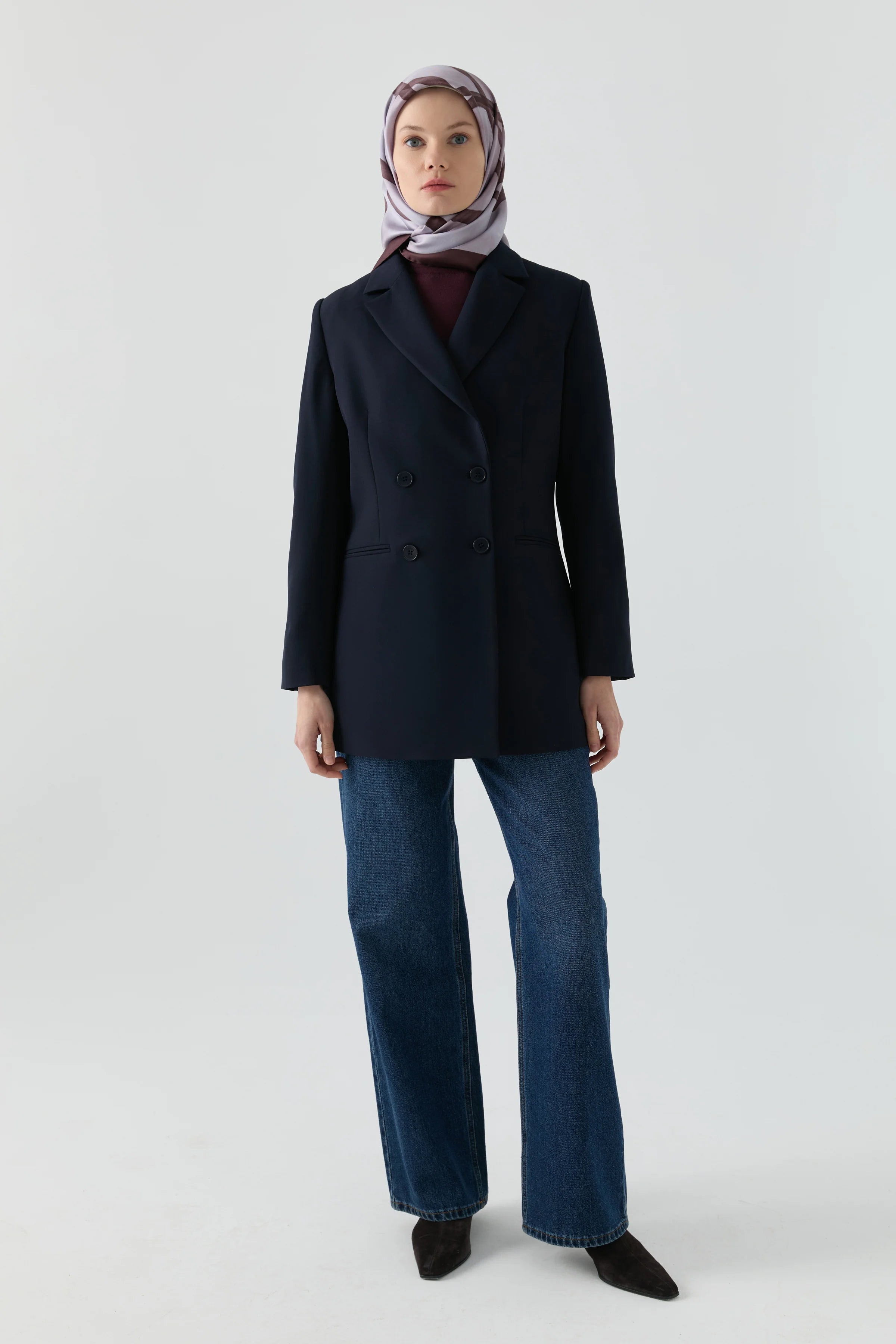 Kruvaze yaka tasarımıyla klasik formu modern bir sadelikle buluşturan bu ceket, pürüzsüz siluetiyle şehir stiline güçlü ama yalın bir görünüm kazandırır.
