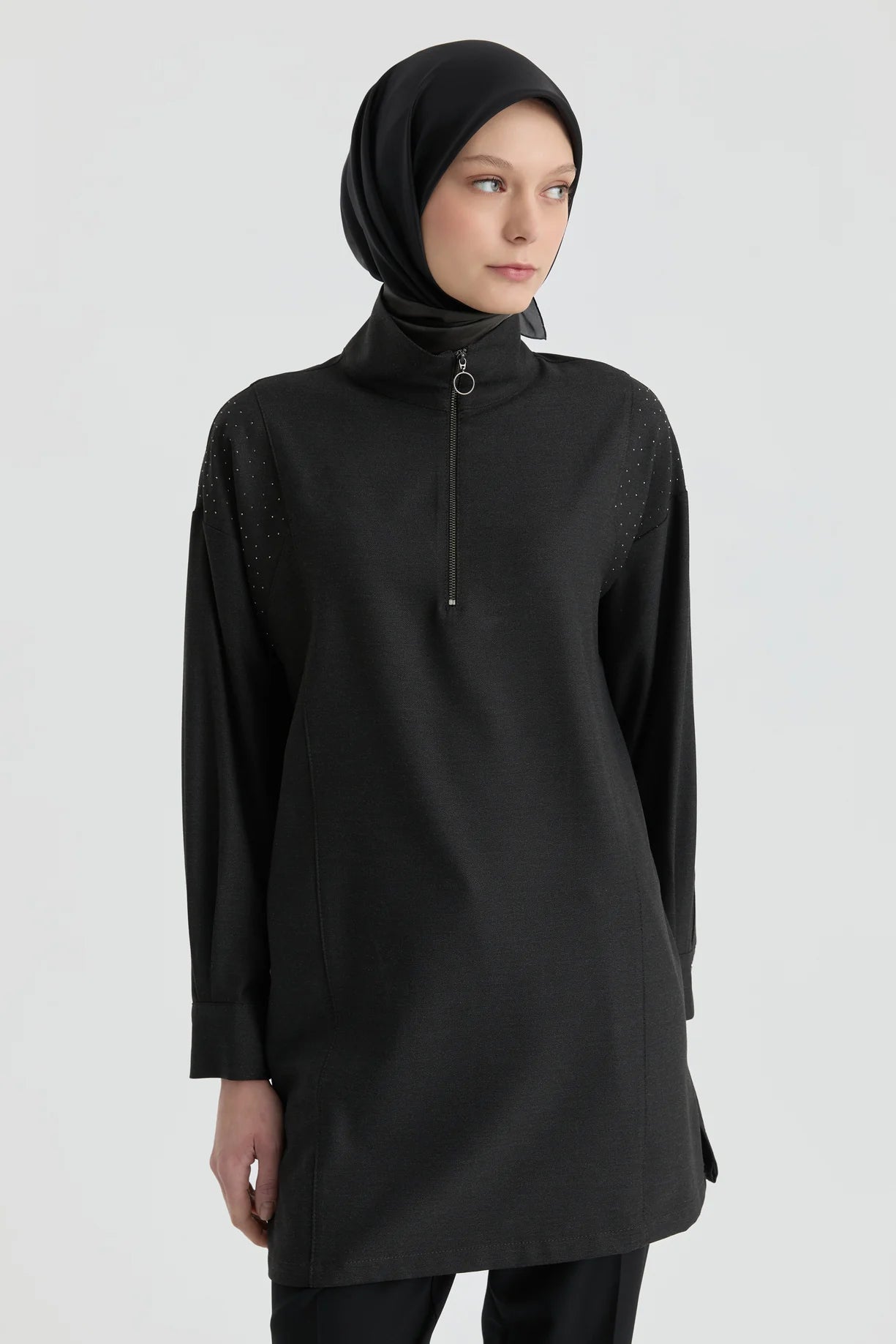 Önden Yarım Fermuarlı Tunik - Antrasit
