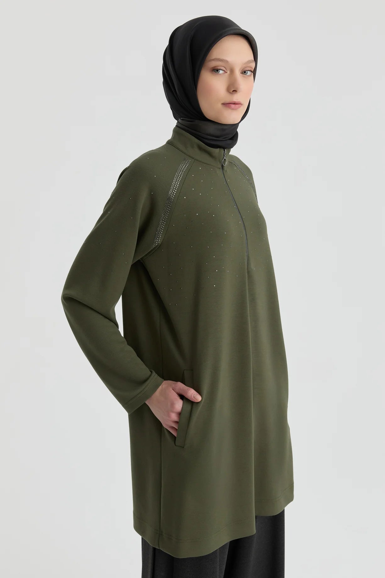 Reglan Kol Detaylı Tunik - Haki