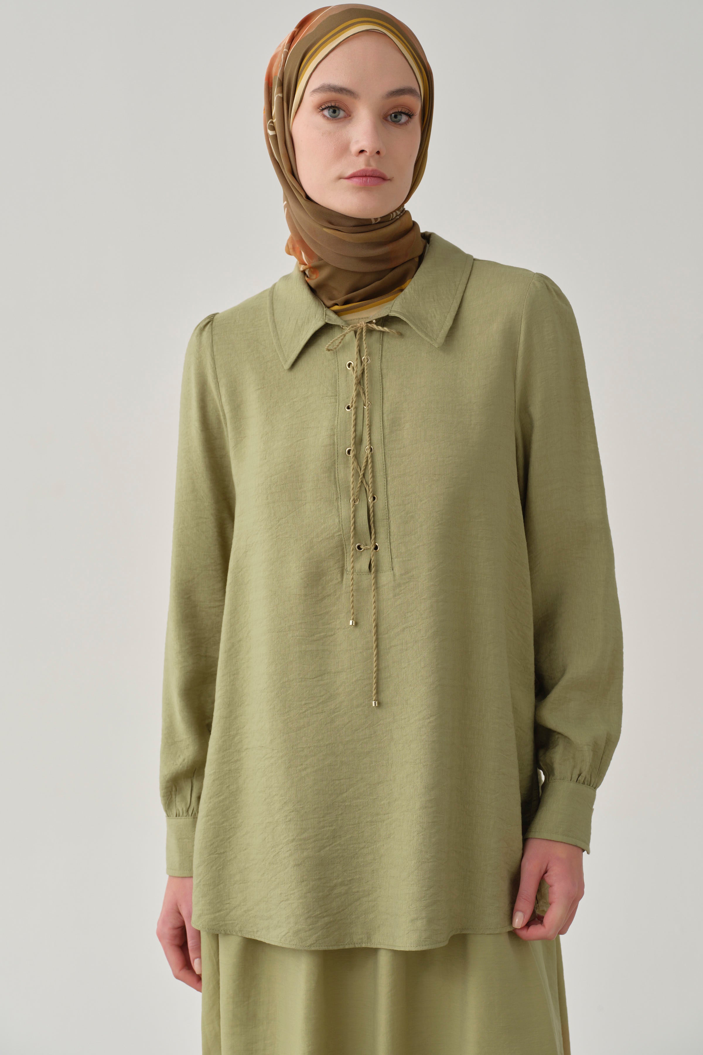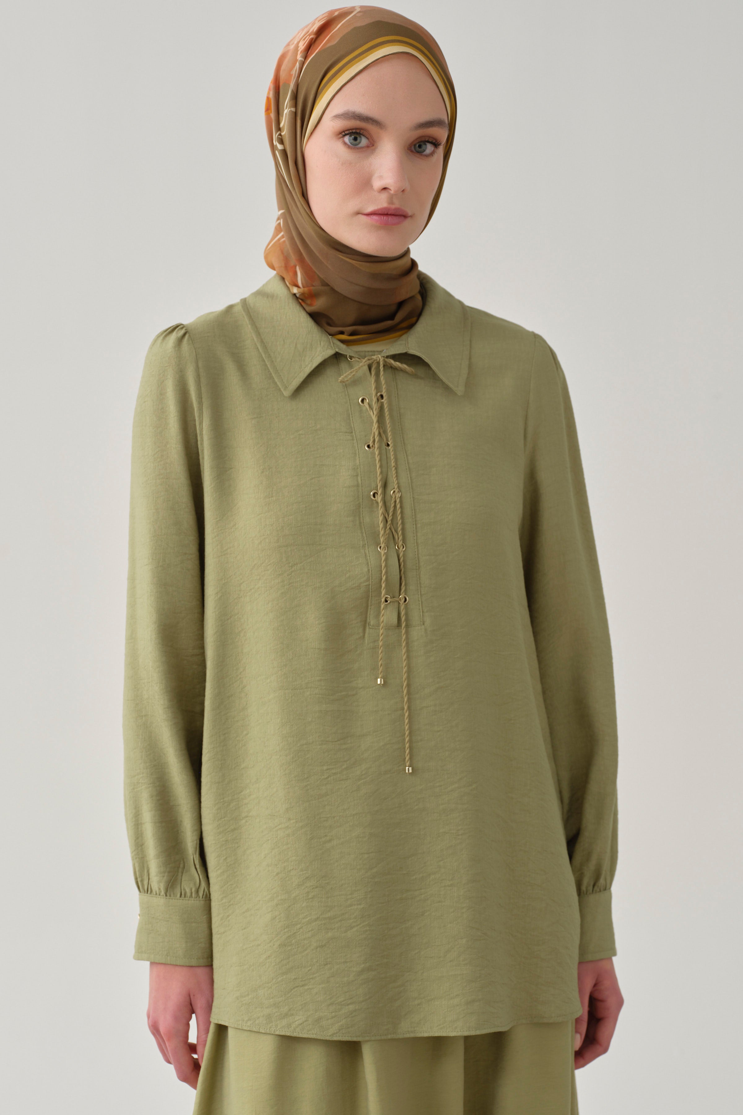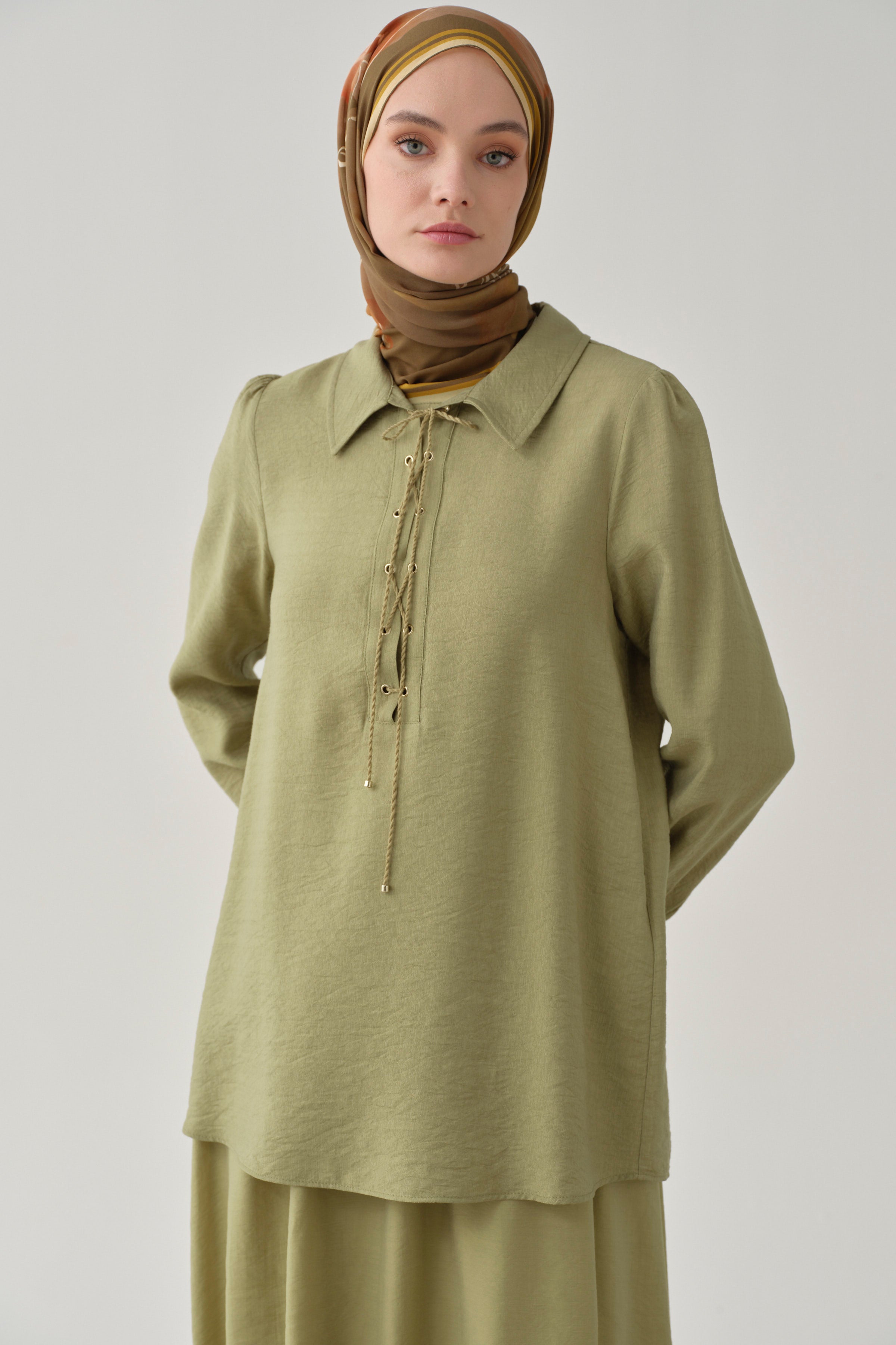 Yaka Çapraz Bağlamalı Bluz - Olive