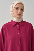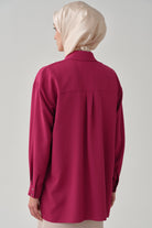 Yırtmaçlı Asimetrik Kesim Bluz - Vişne