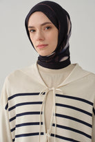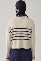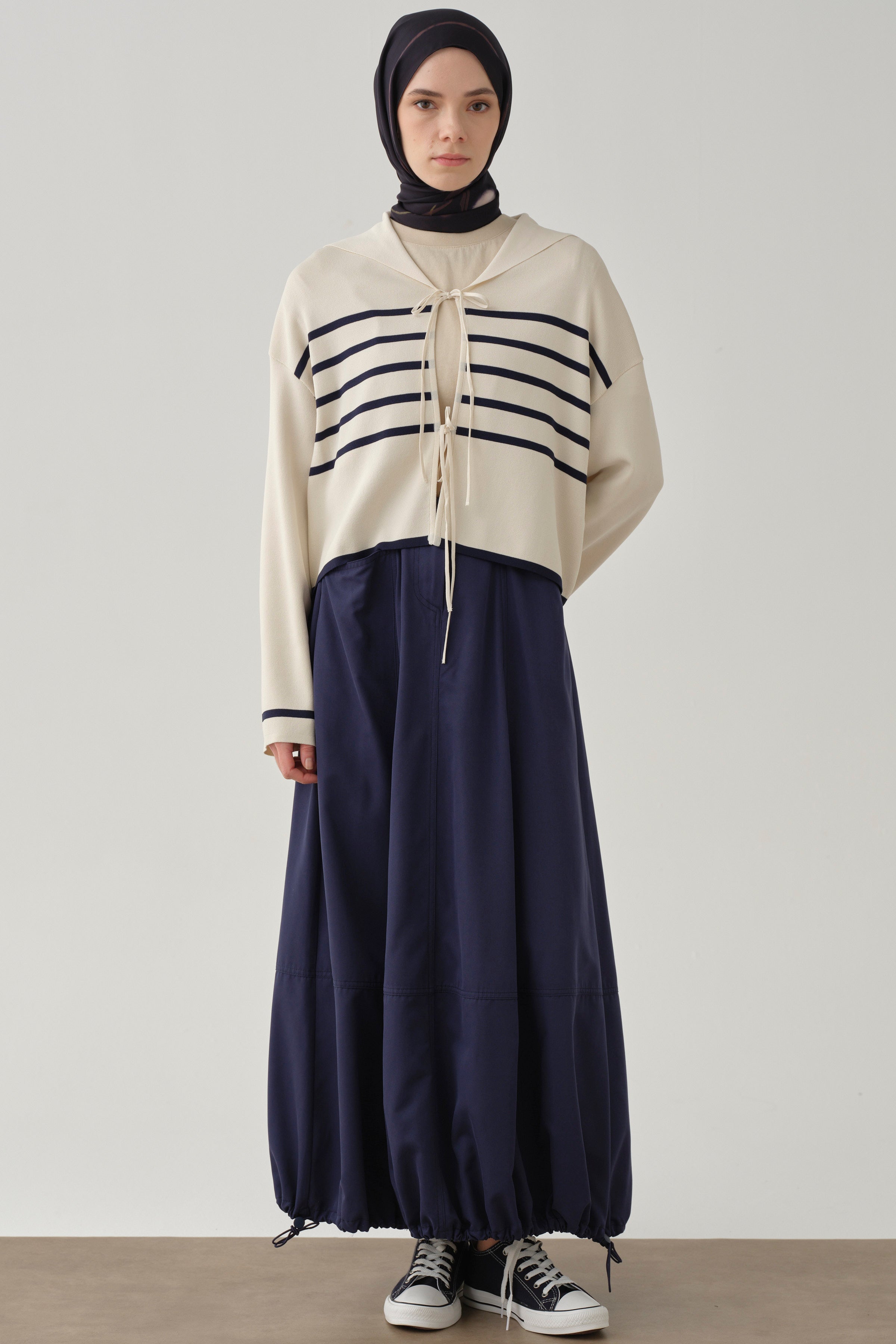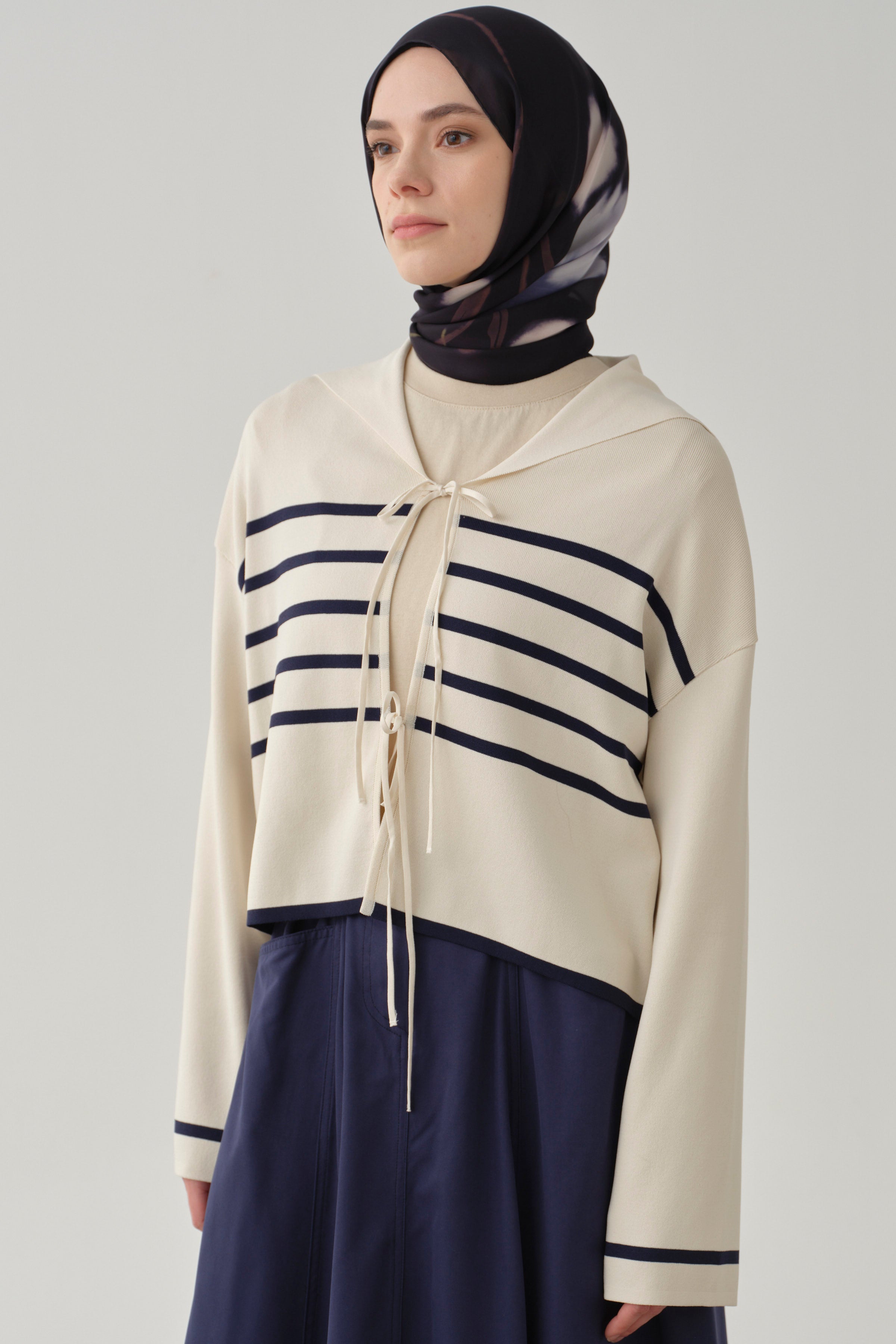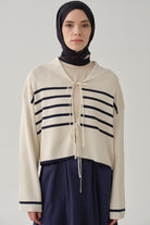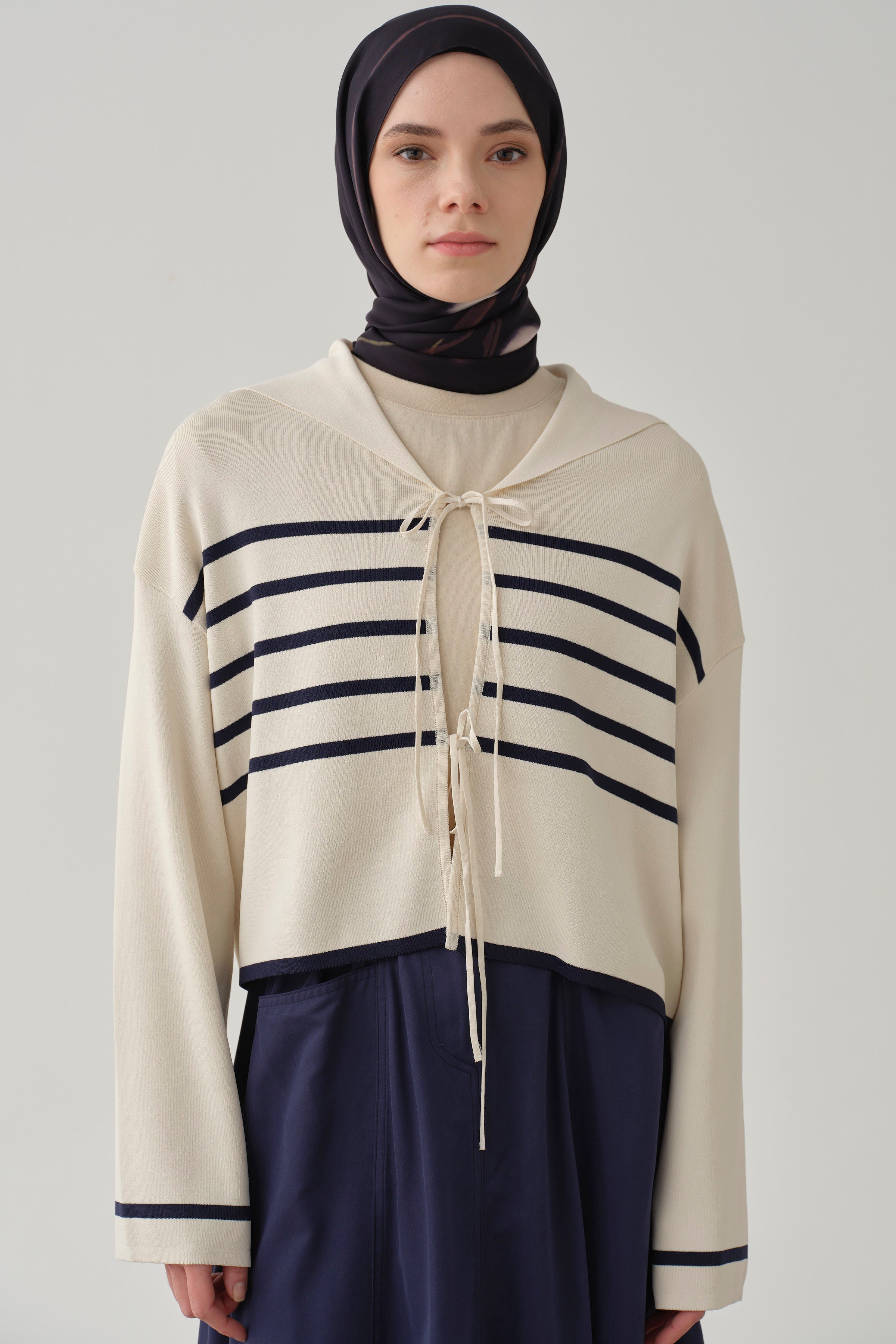 Önü Bağcıklı Çizgili Hırka - Lacivert