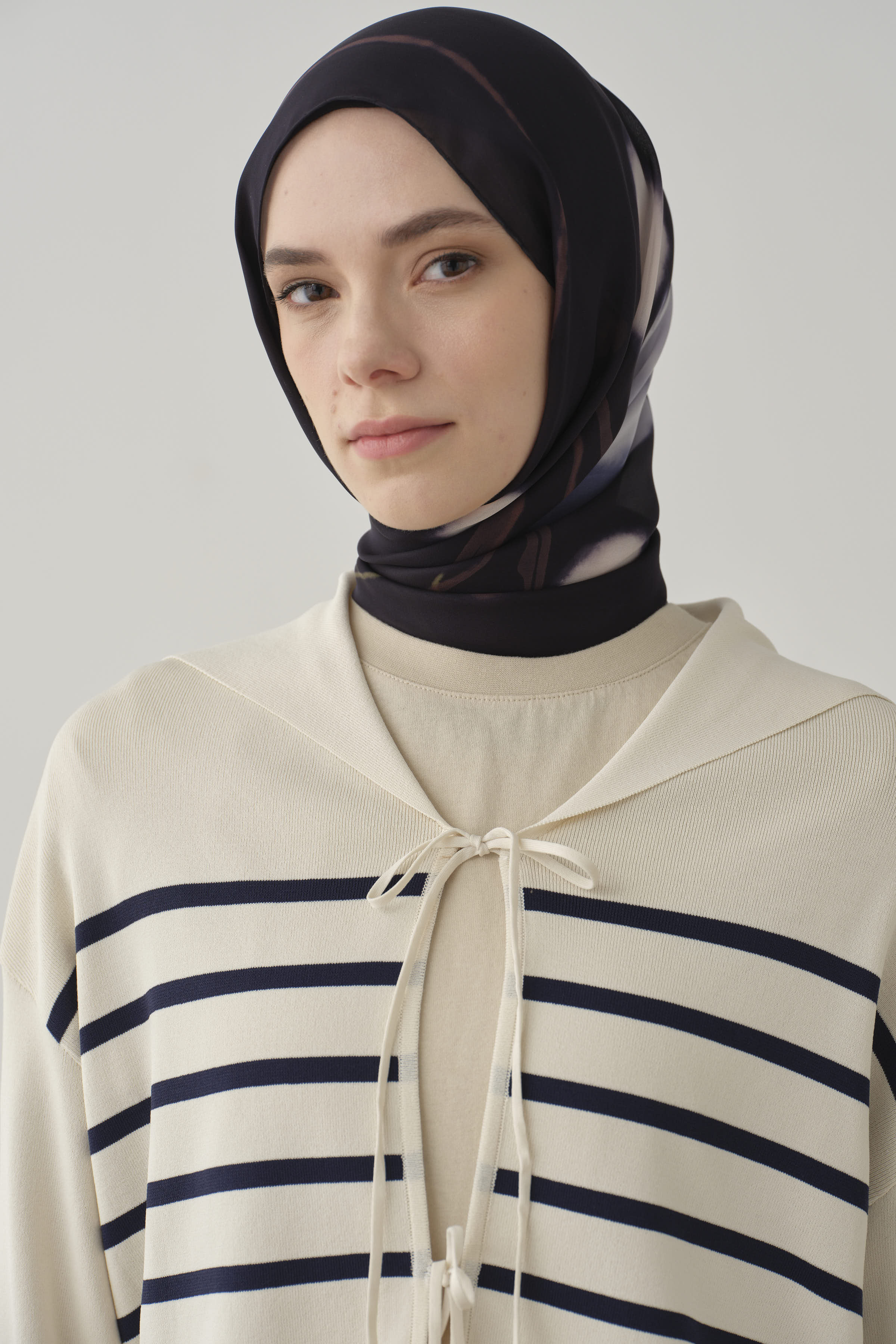 Hem rahatlığı hem de şıklığı bir araya getiren önü bağcıklı çizgili hırka, gardırobunuzun vazgeçilmez parçalarından biri olmaya aday!