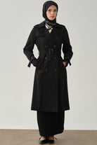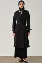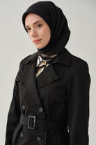 Kruvaze Yaka Kemerli Klasik Trençkot - Siyah