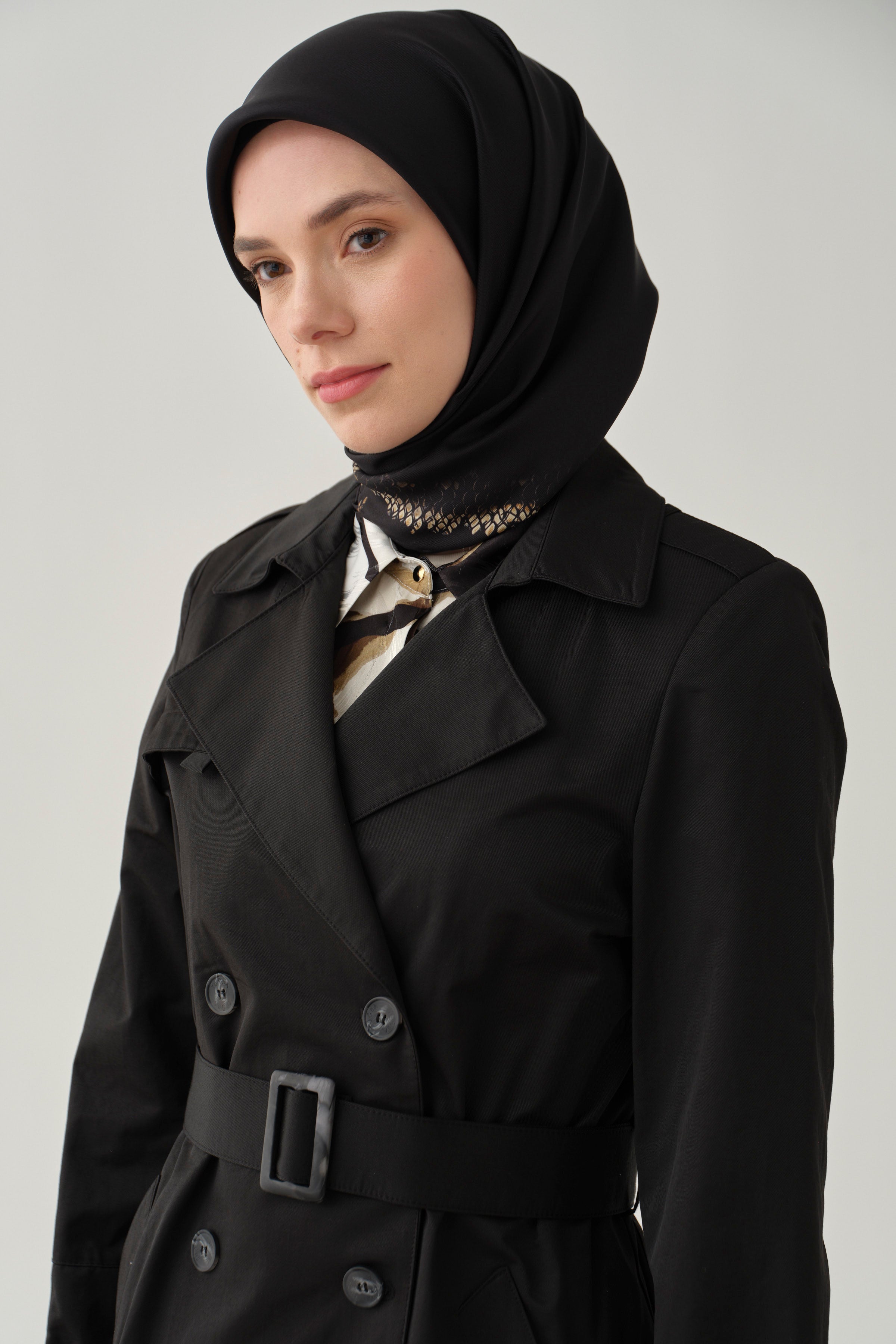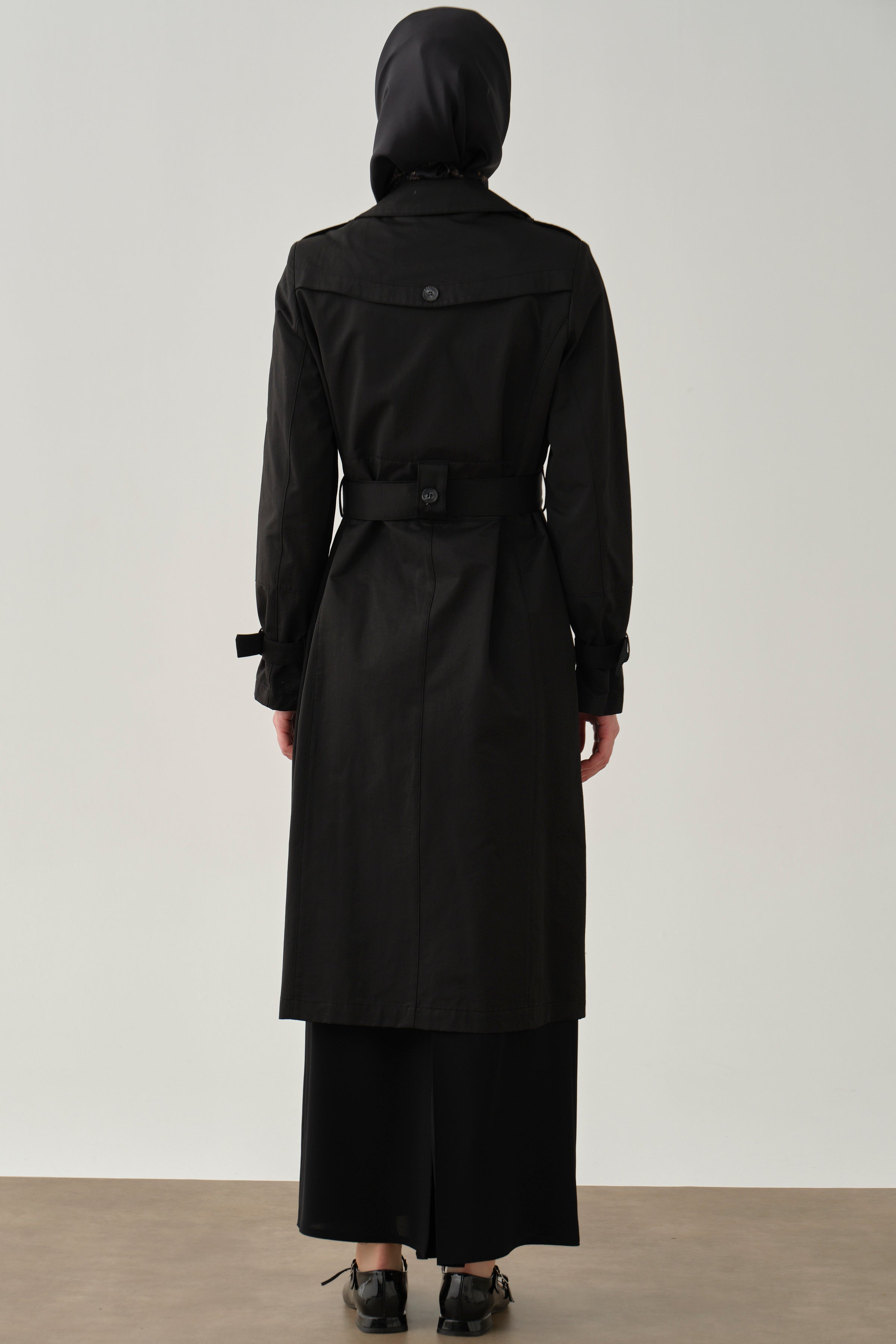 Trençkot, kruvaze yakasıyla sofistike bir görünüm sunarken, kemer detayıyla belinizi vurgular ve siluetinizi şekillendirir.