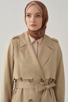 Rüzgarlık Nakış Detaylı Trençkot - Taş