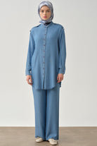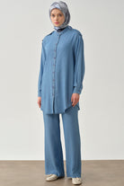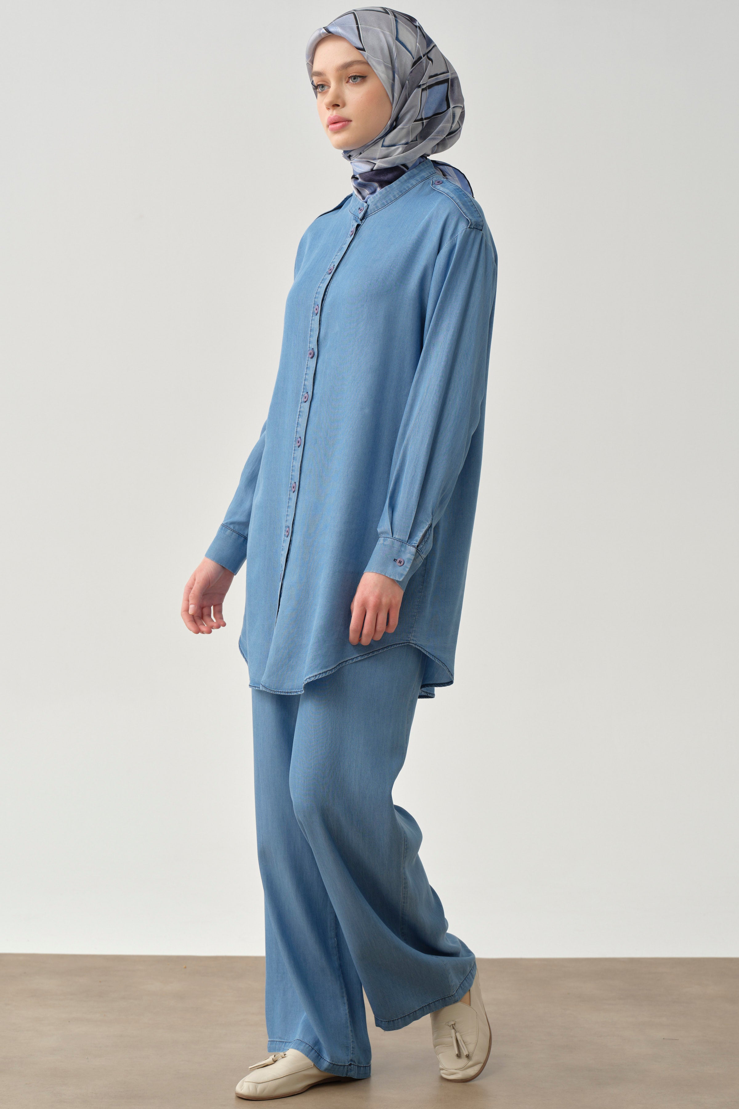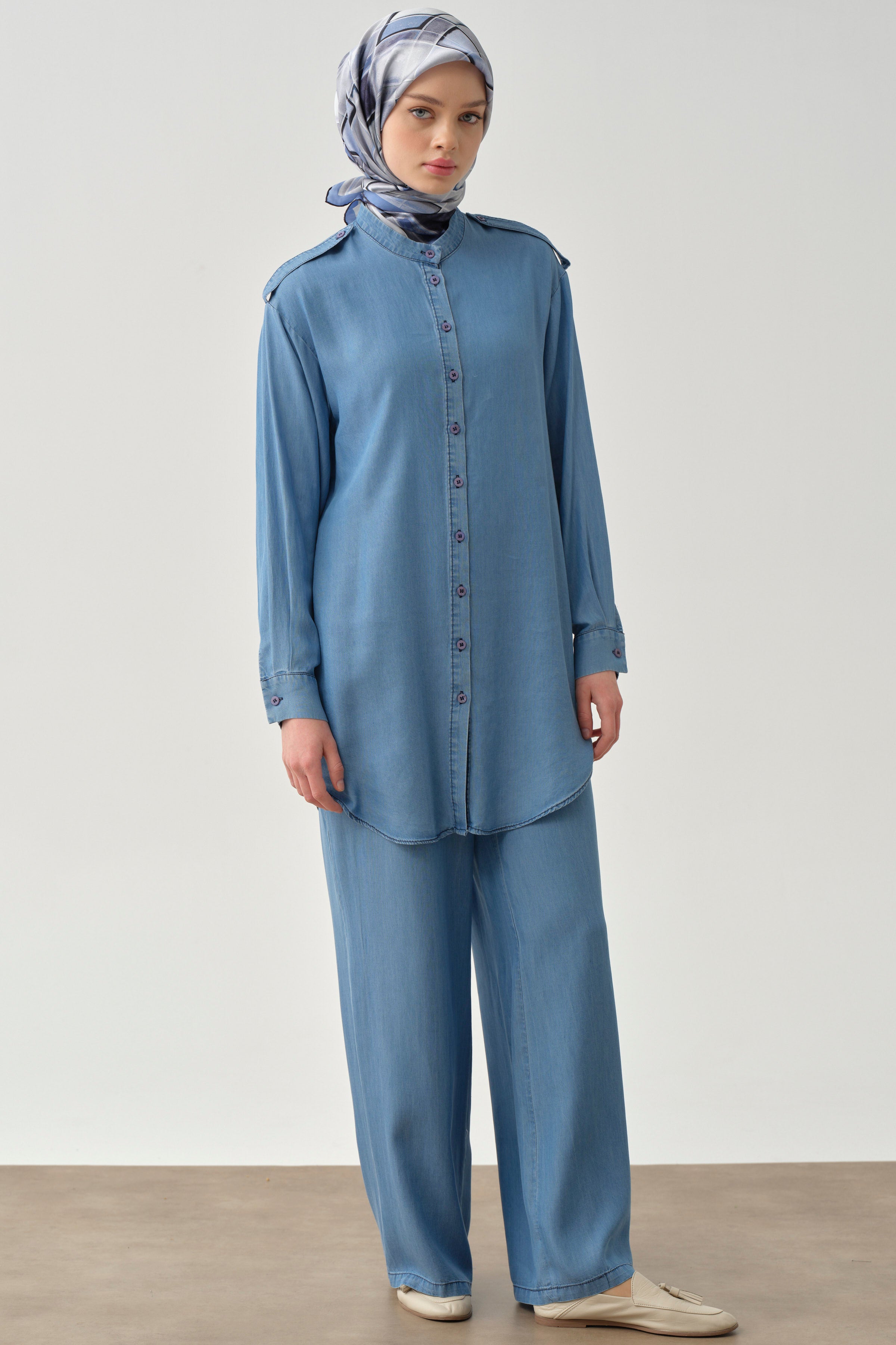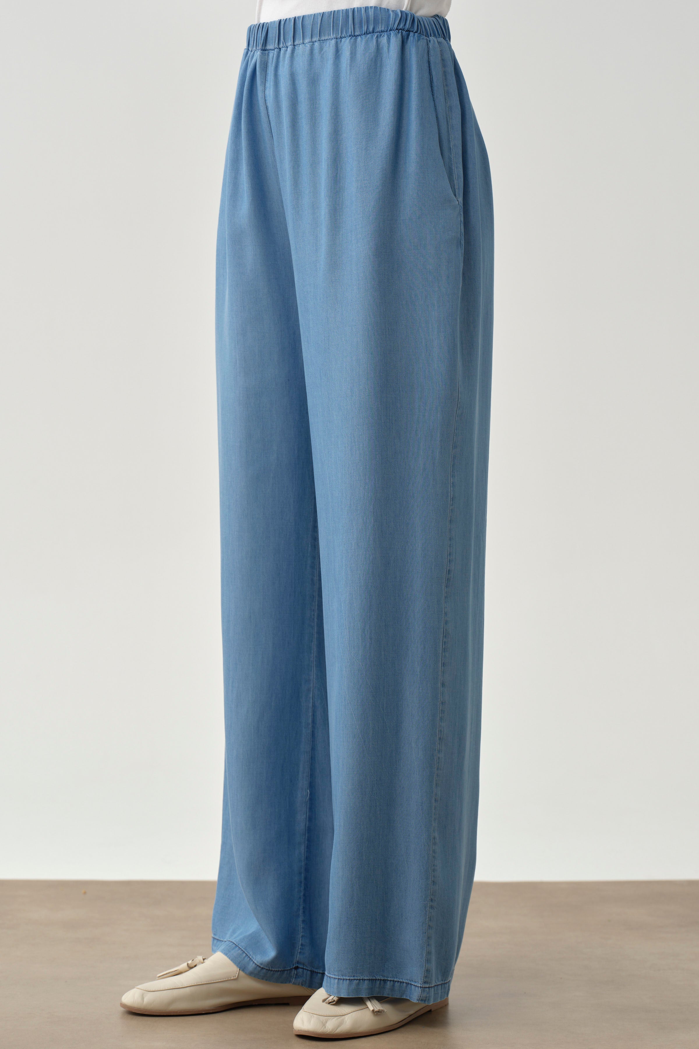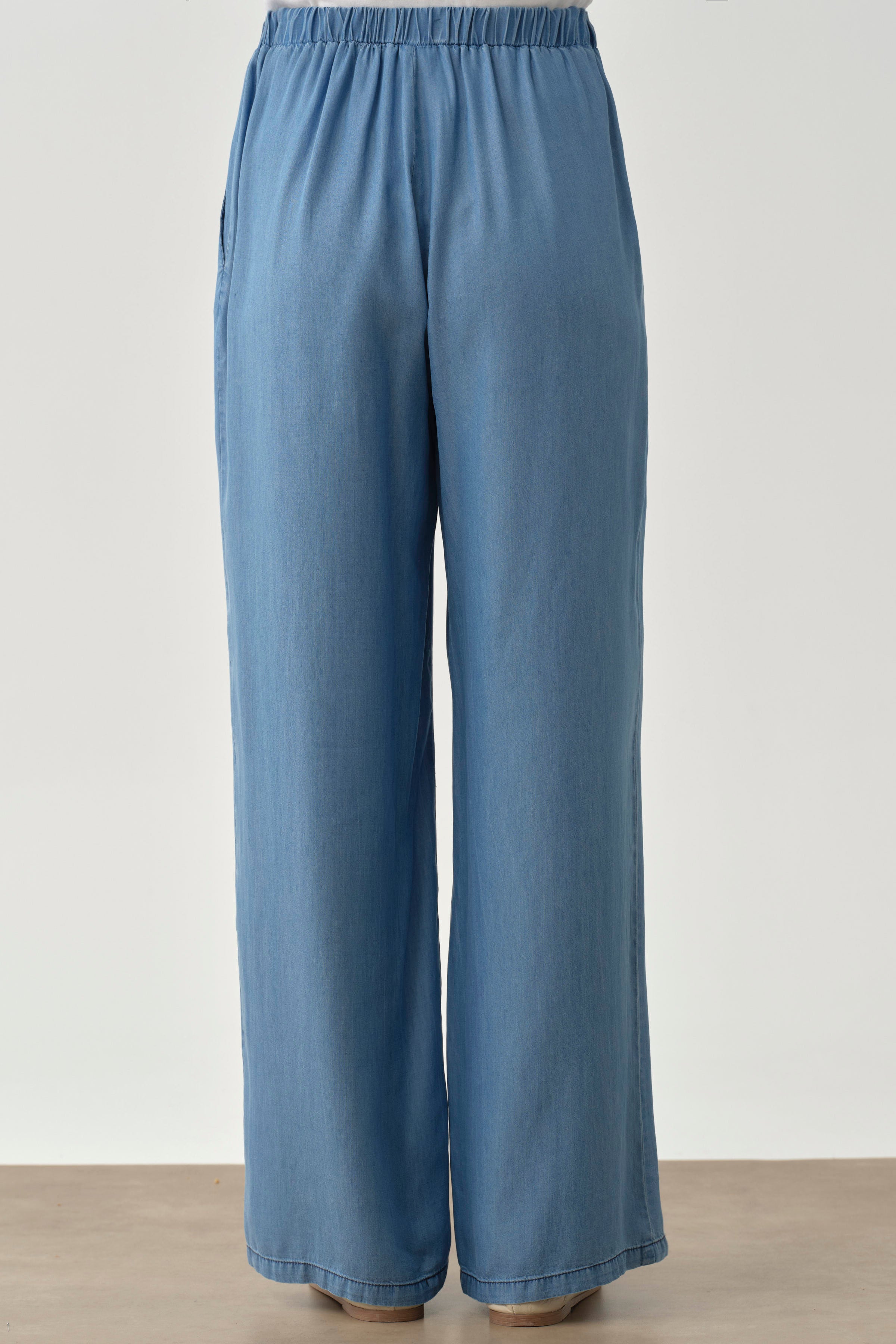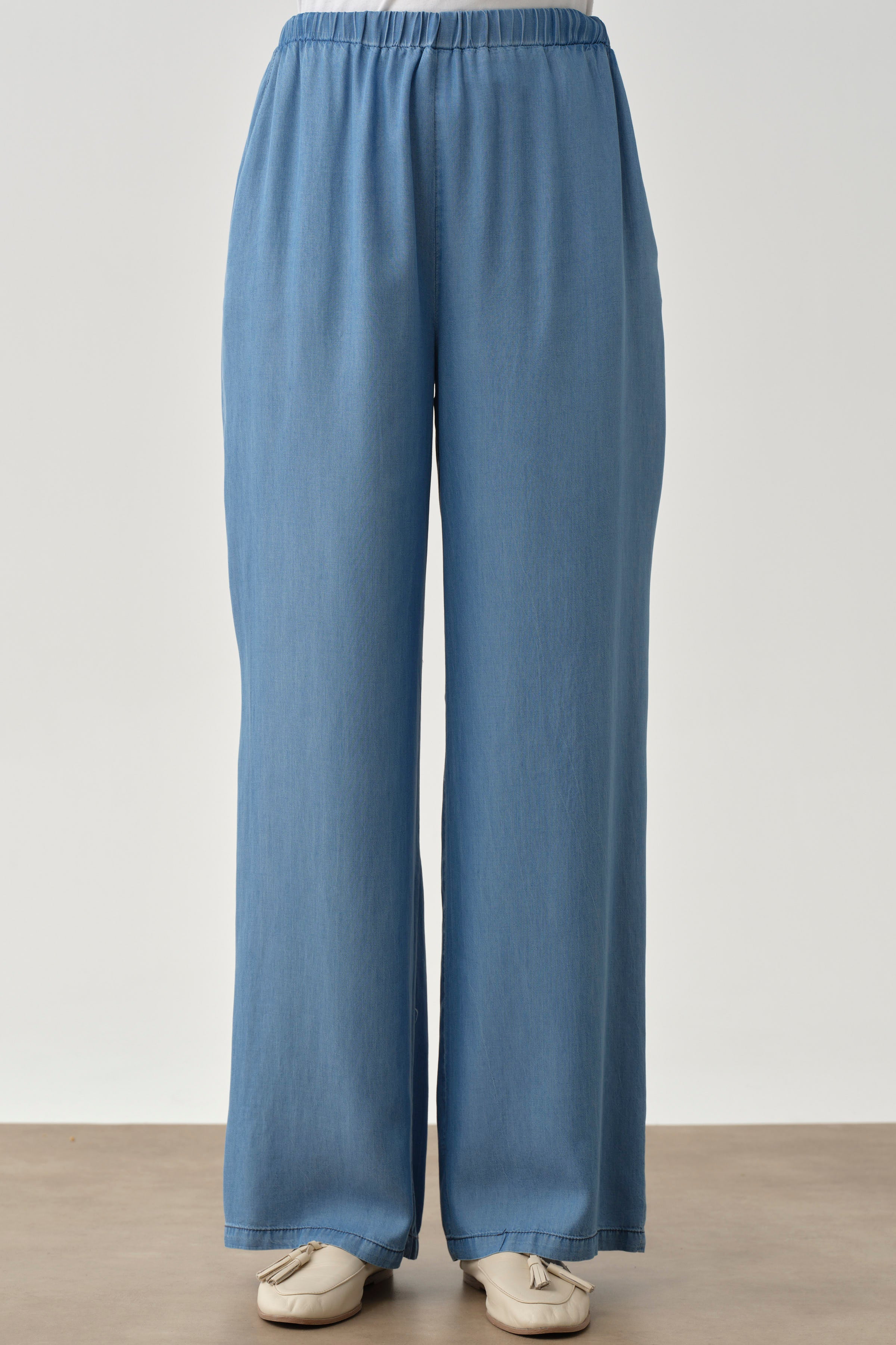 Bel Lastikli Bol Paça Pantolon - İndigo