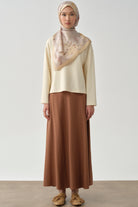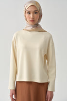 Yırtmaçlı Asimetrik Örme Sweat - Ekru