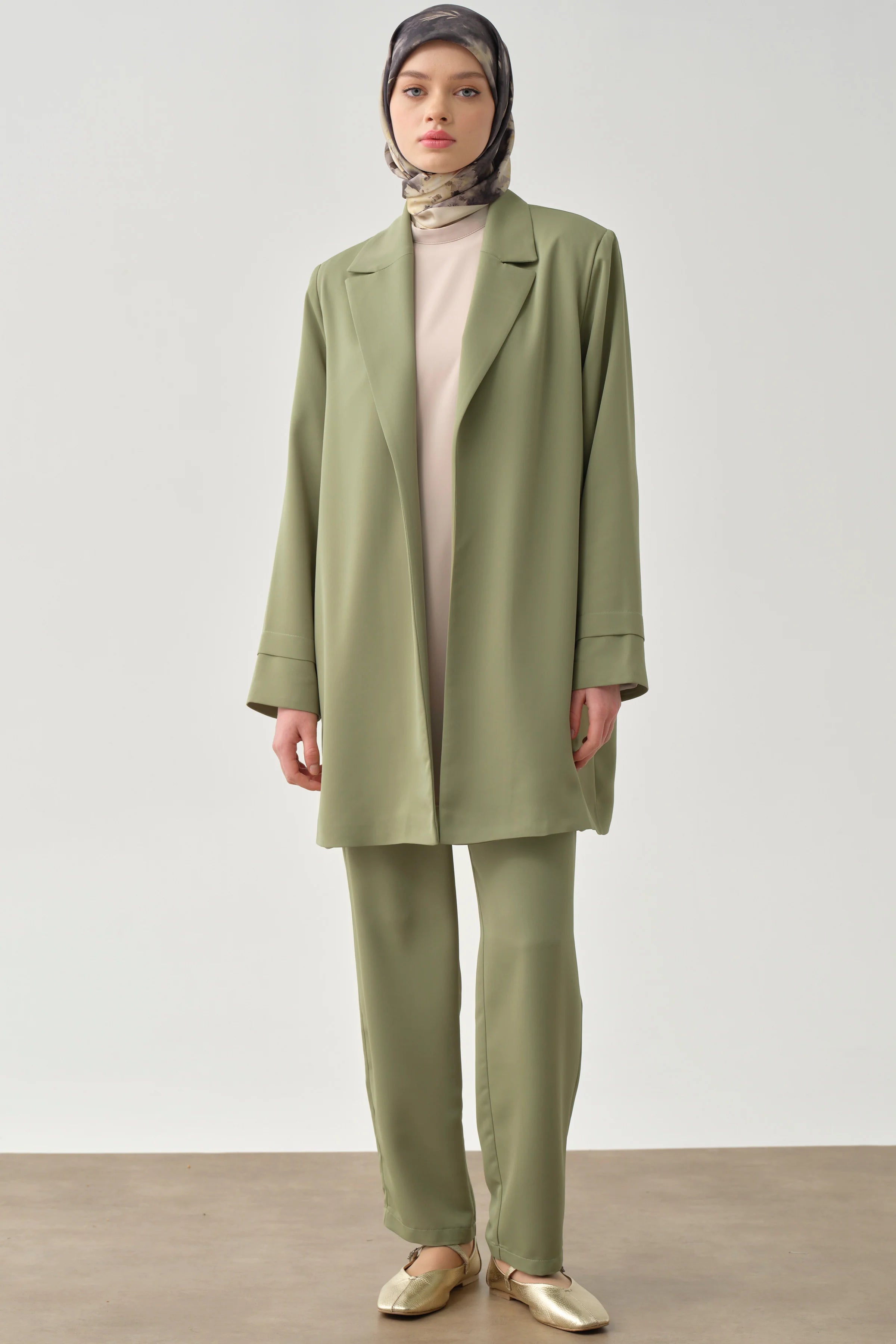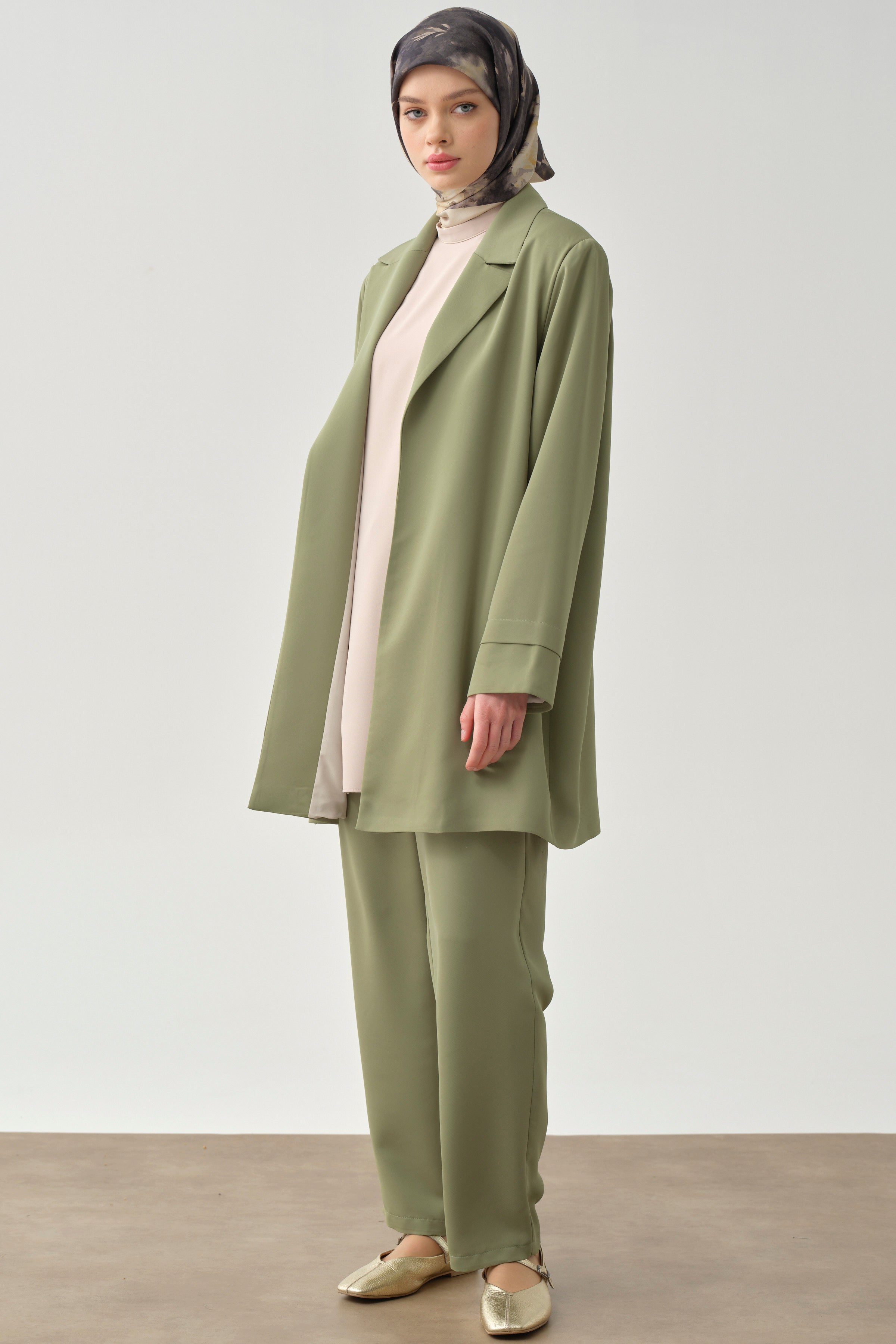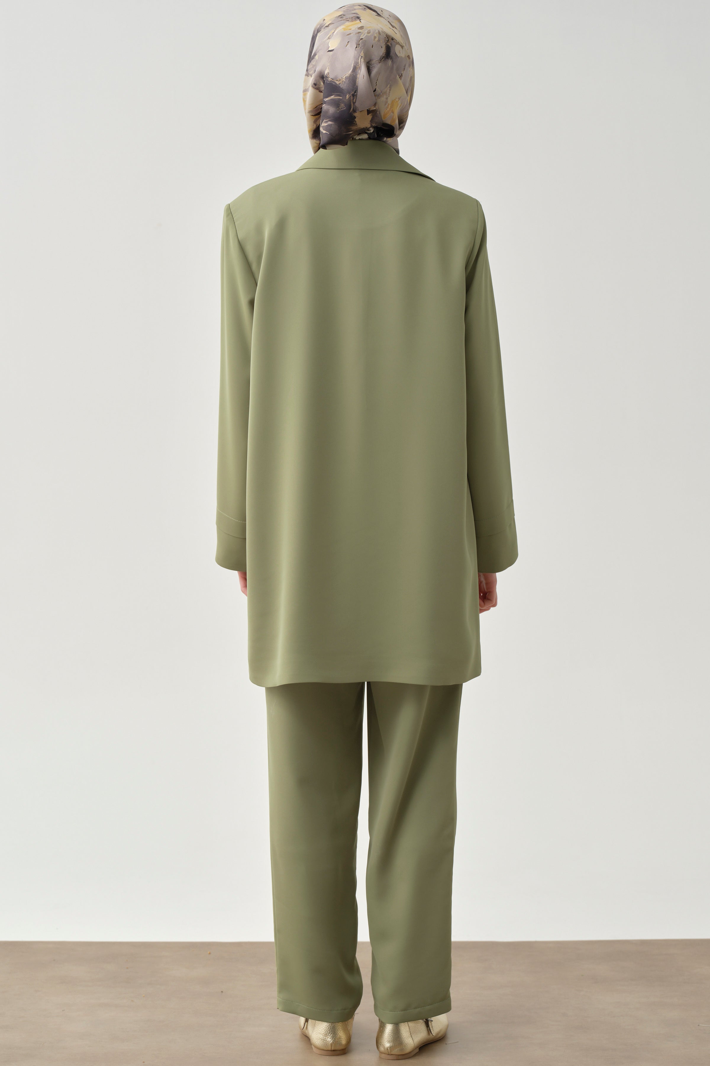 Garnili Ceket Pantolon Üçlü Takım - Olive