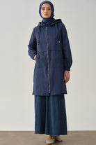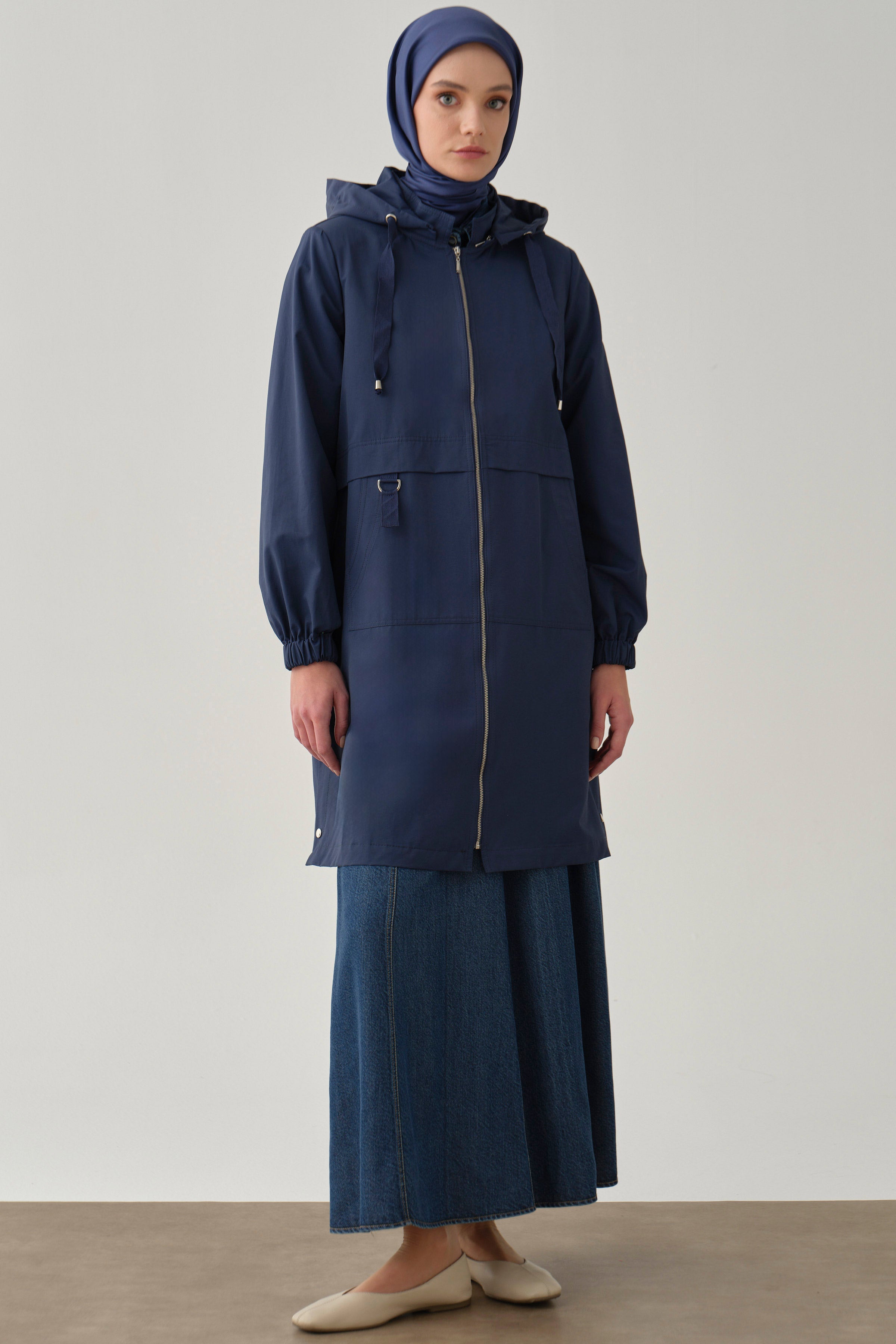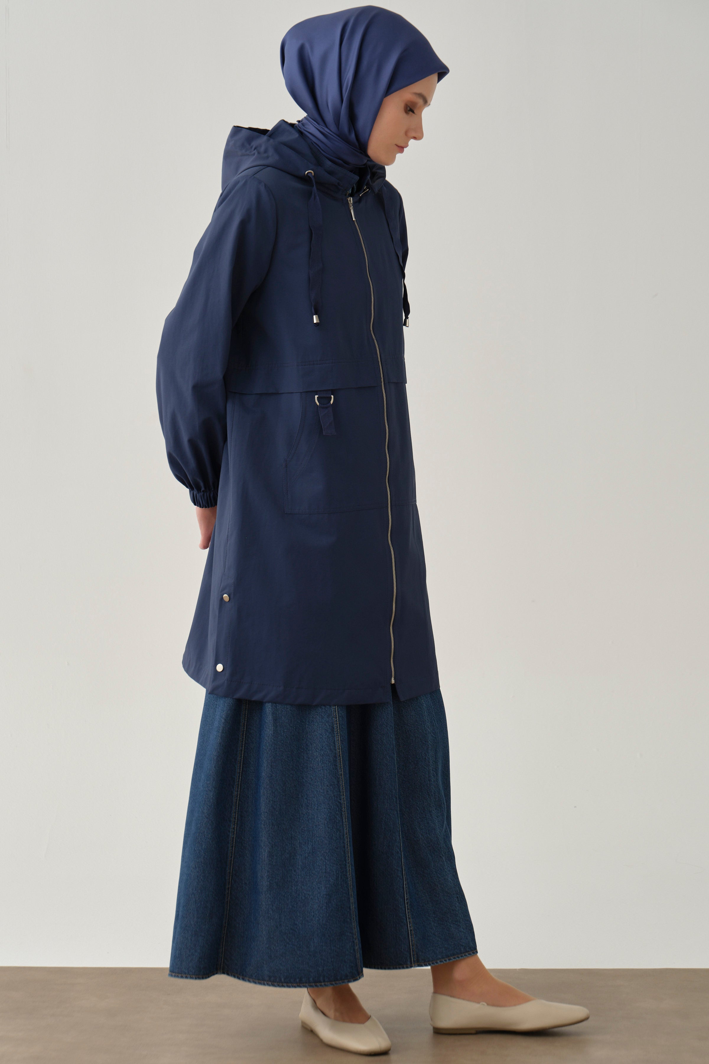 Aller Detaylı Yırtmaçlı Parka - İndigo