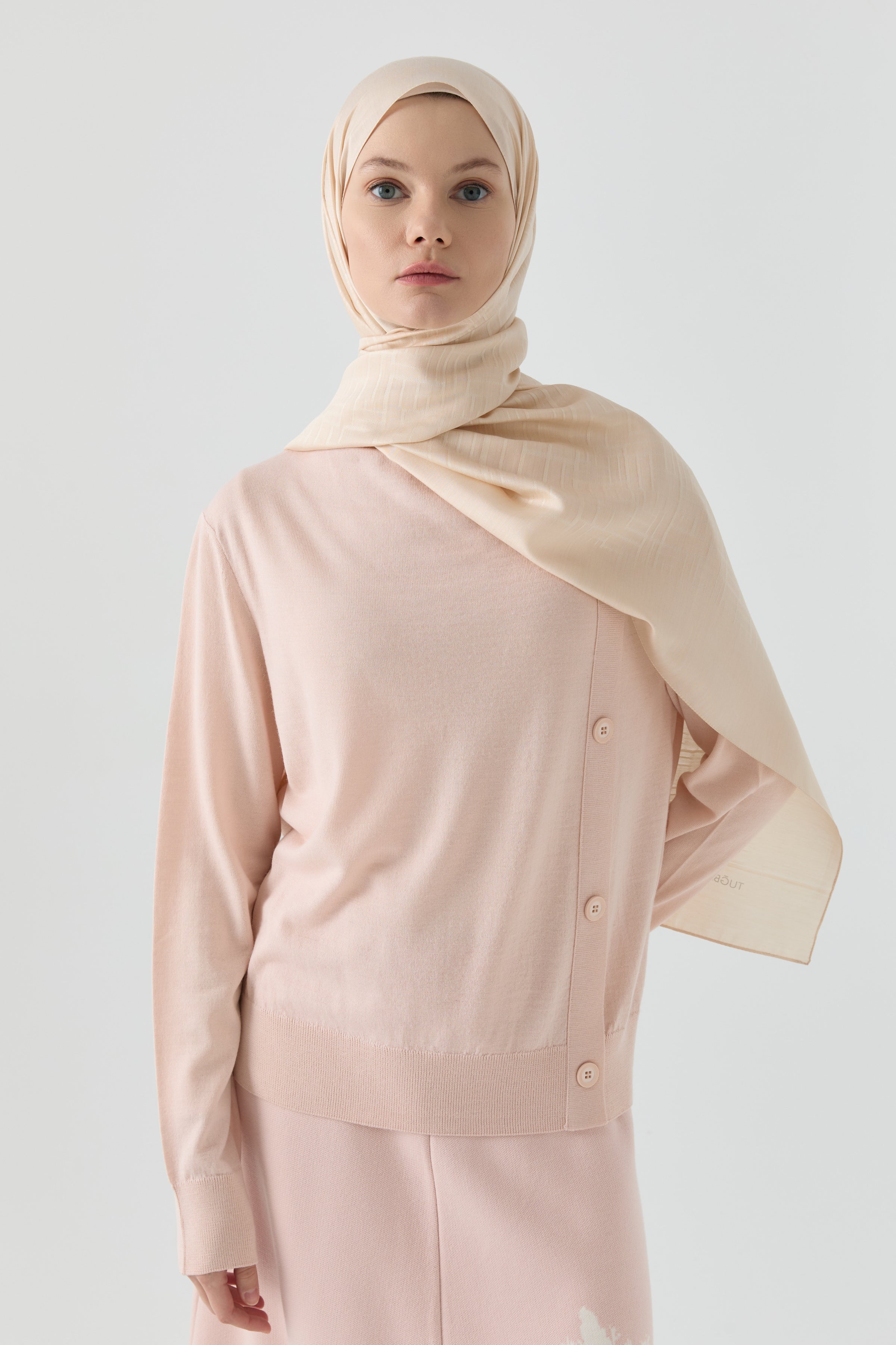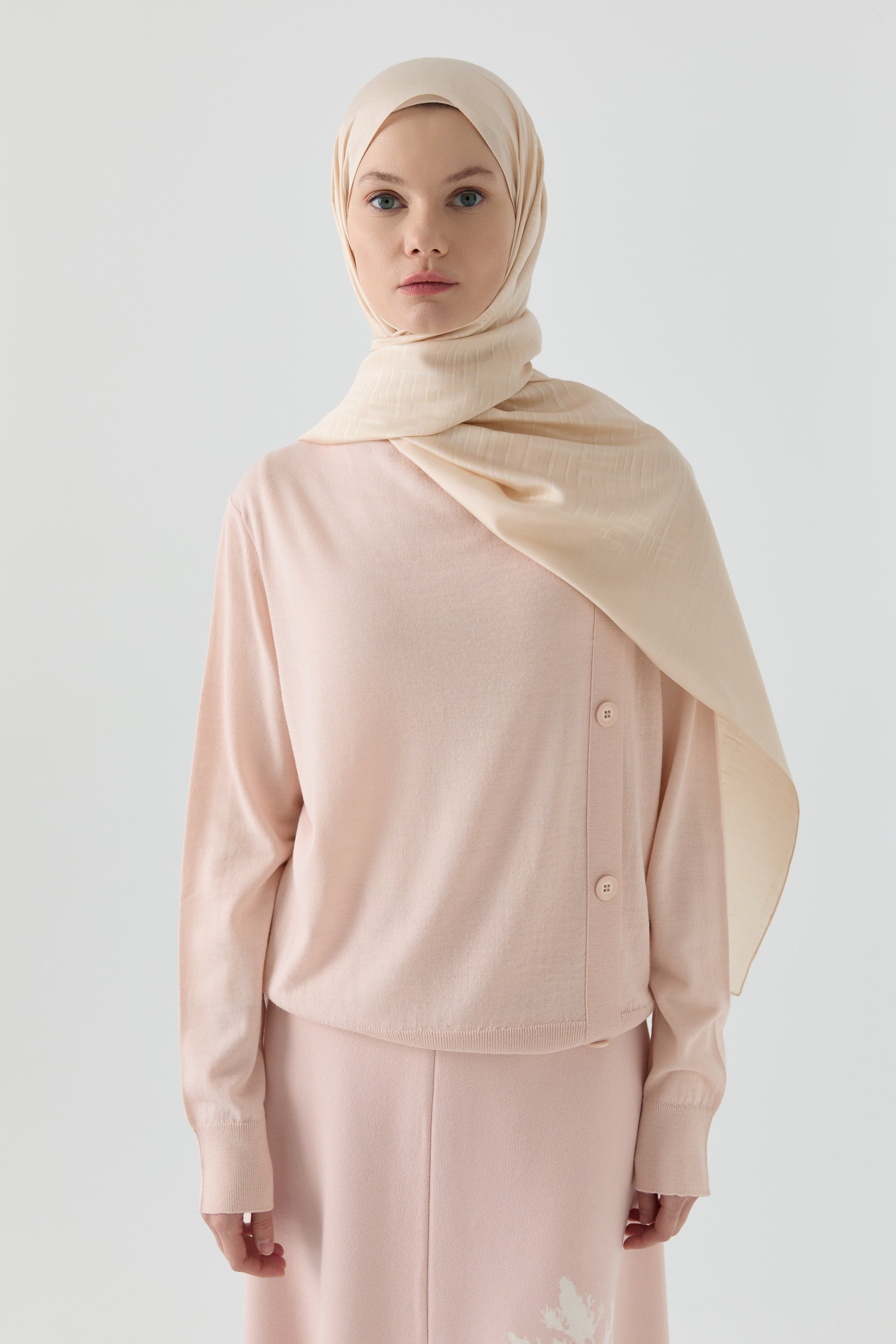 Yan kısmındaki düğme detaylarıyla klasik kazak formuna ince bir hareket katan bu parça, yumuşak dokusuyla gün boyu konfor sağlar. Minimal çizgileri şehir stiline temiz ve modern bir hava kazandırırken, farklı kombinlerle kolayca uyum sağlayan zamansız bir görünüm sunar.