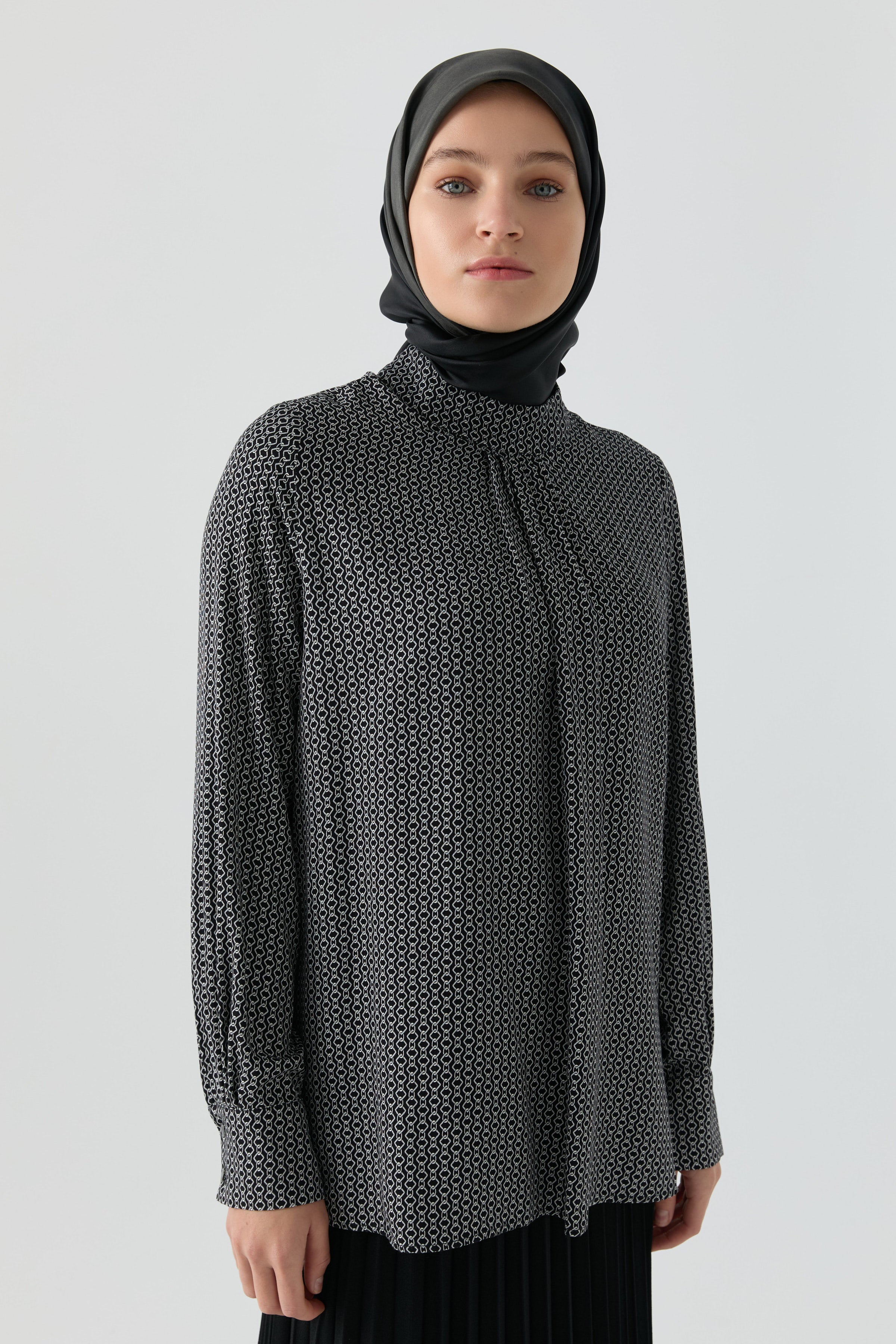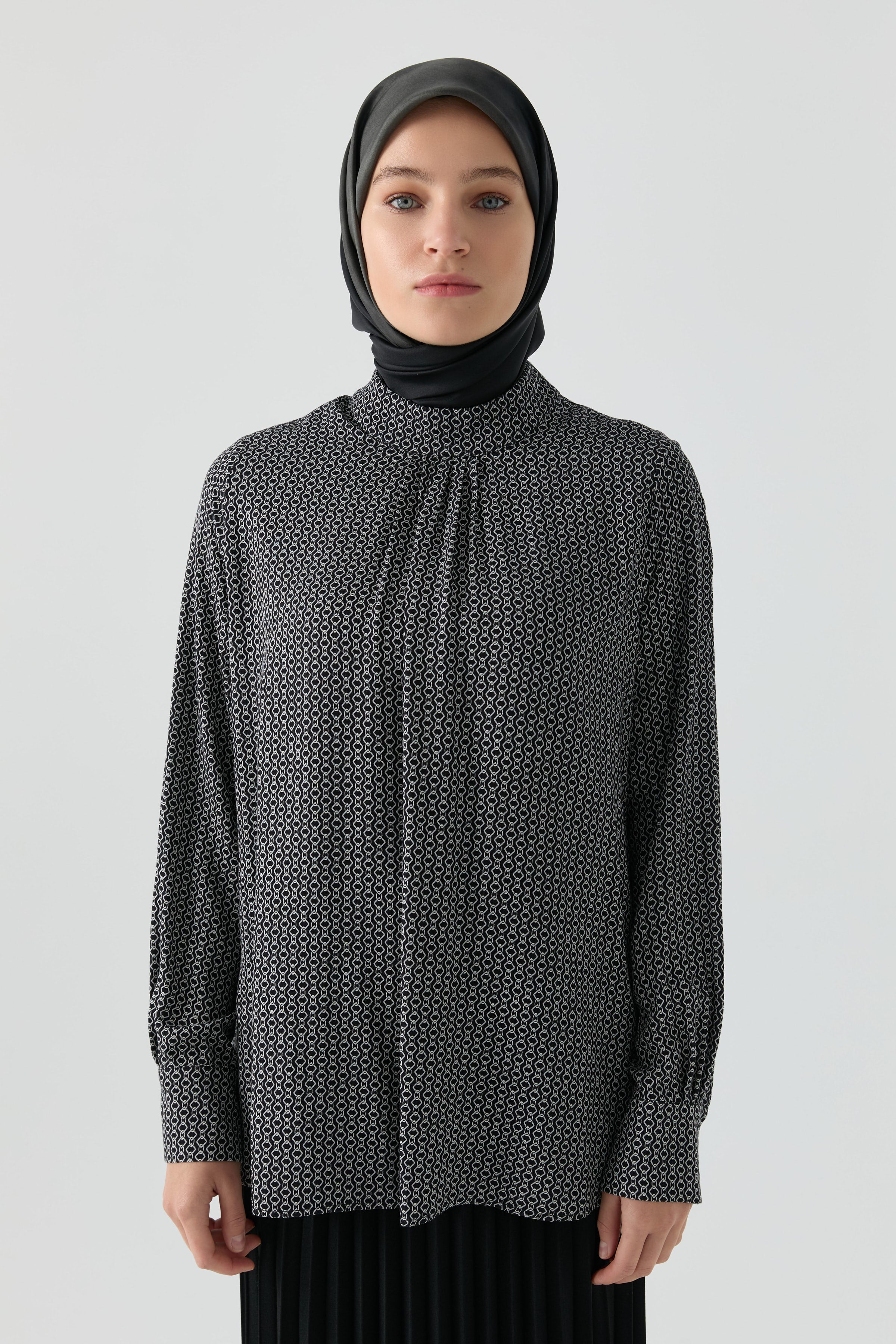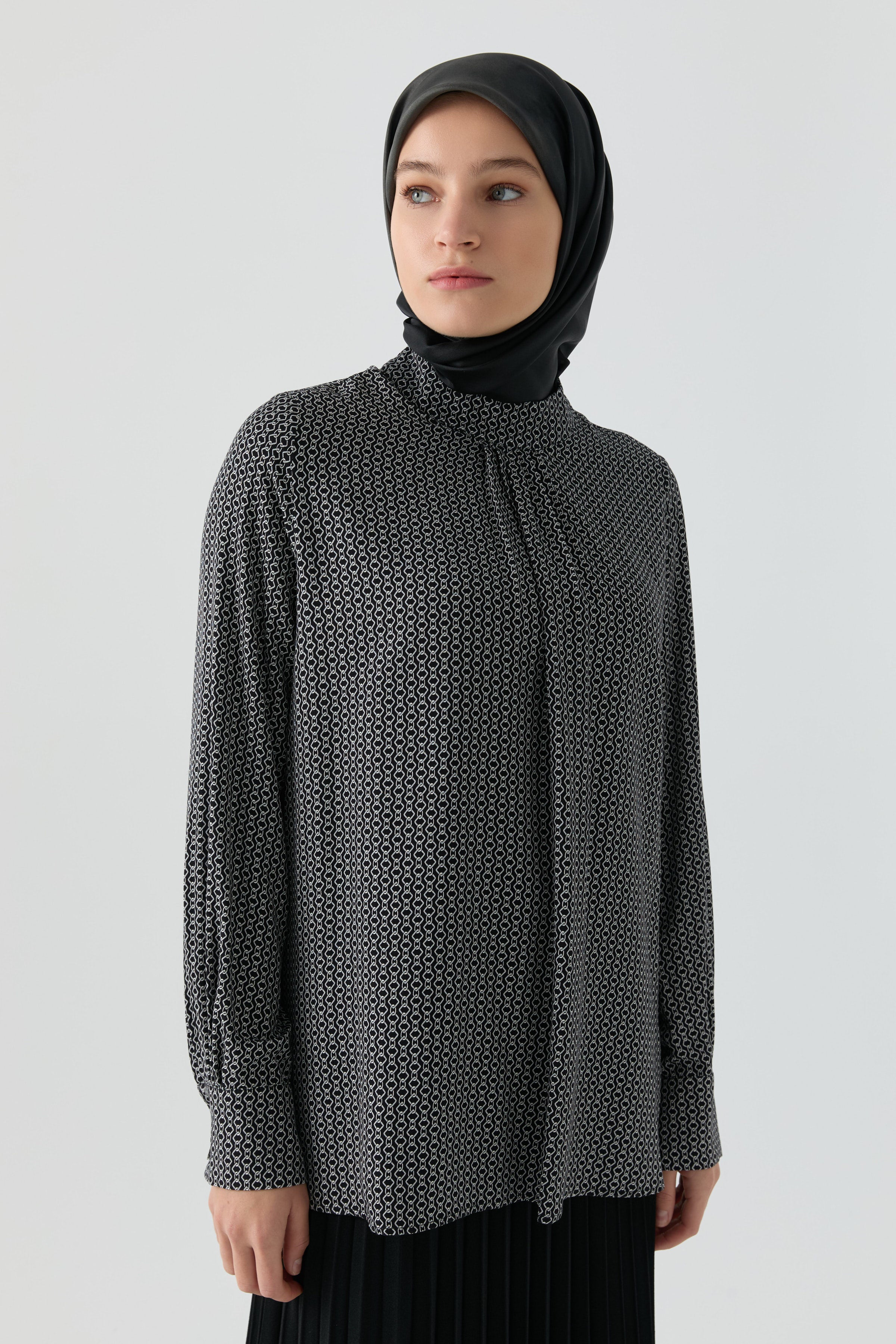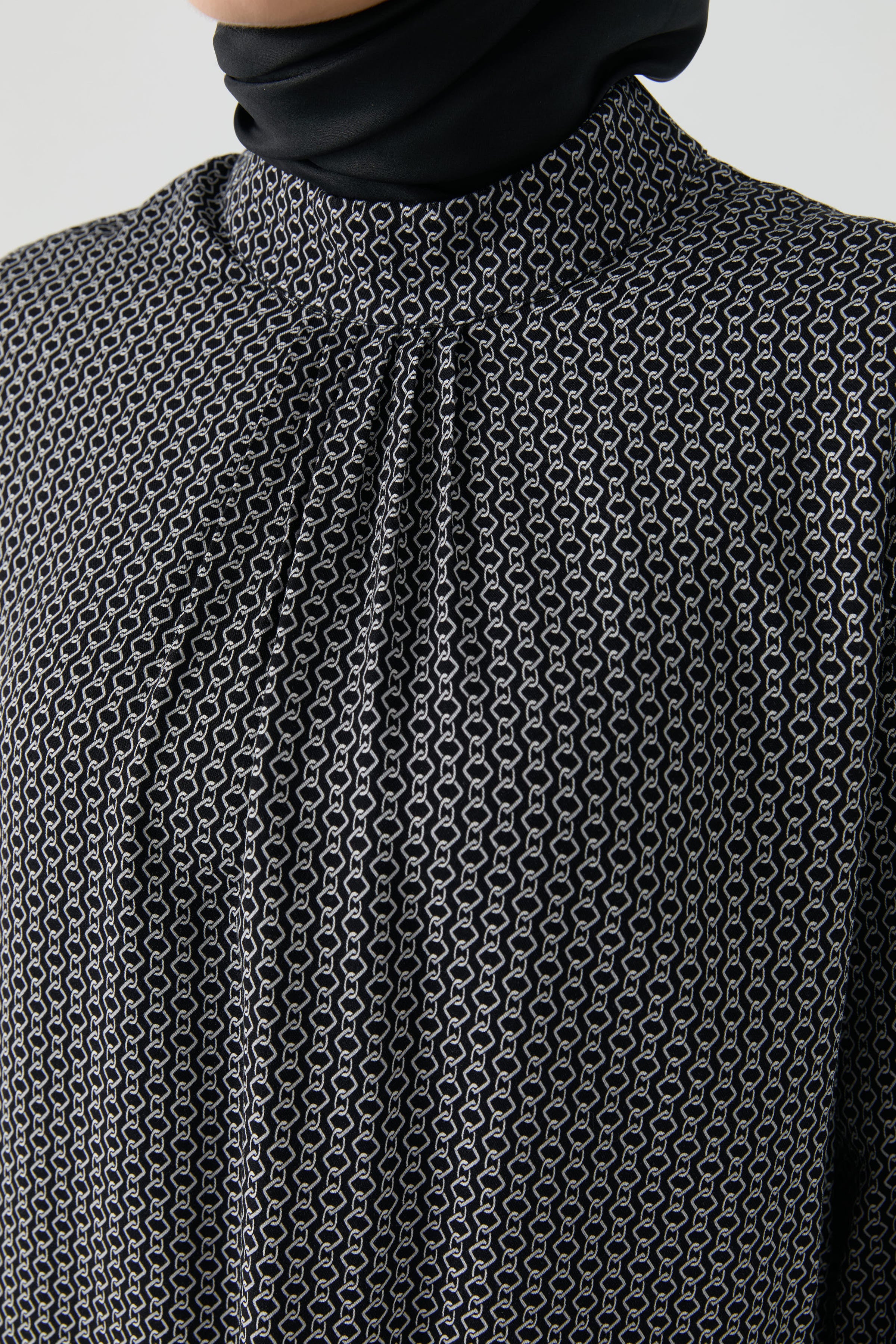 Zarif zincir desenleriyle öne çıkan bu bluz, sade siluetine modern ve seçkin bir hareket katar. Hafif dokusu gün boyu konfor sunarken, desenin ince çizgileri şehir stiline şık ve dikkat çekici bir hava verir.