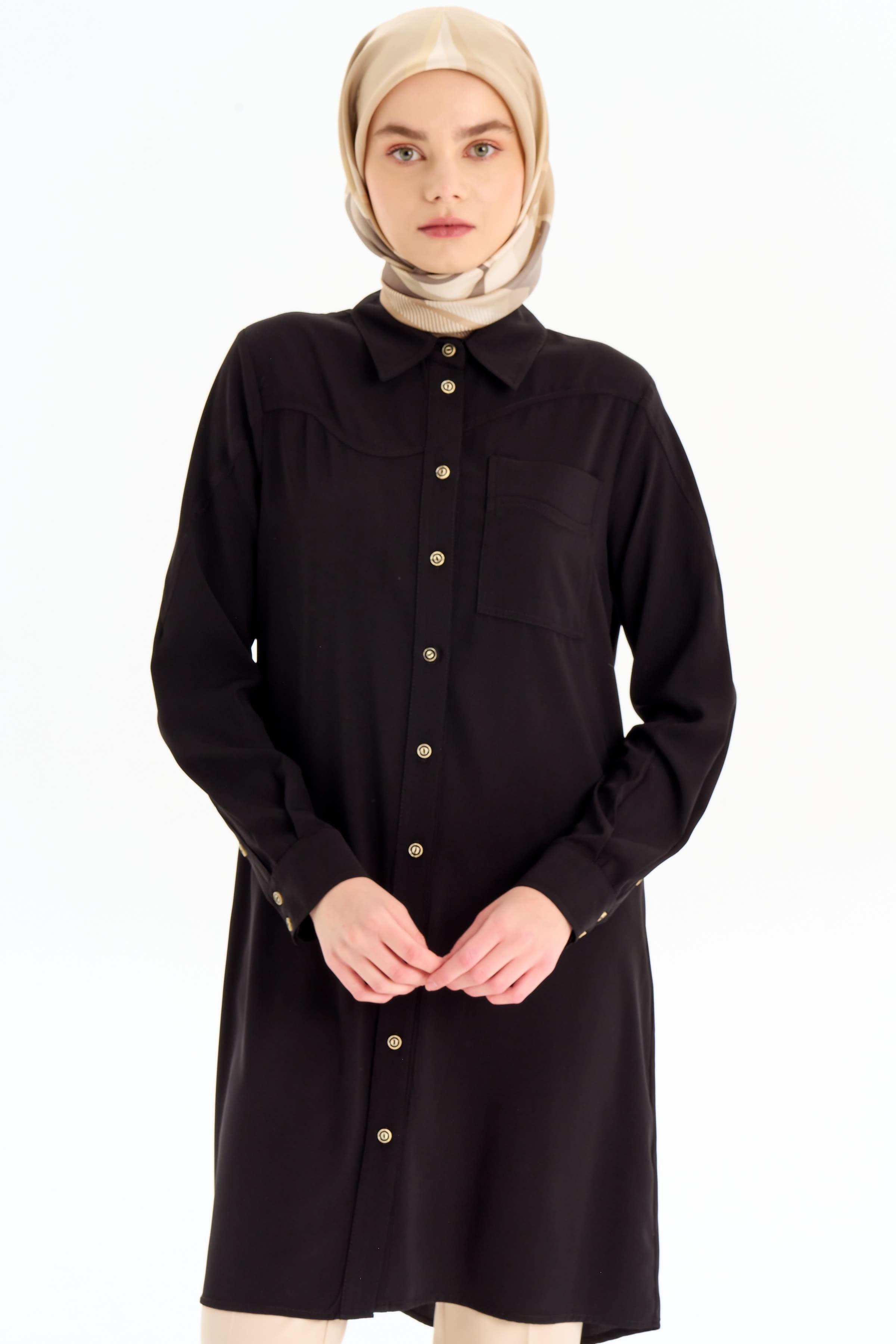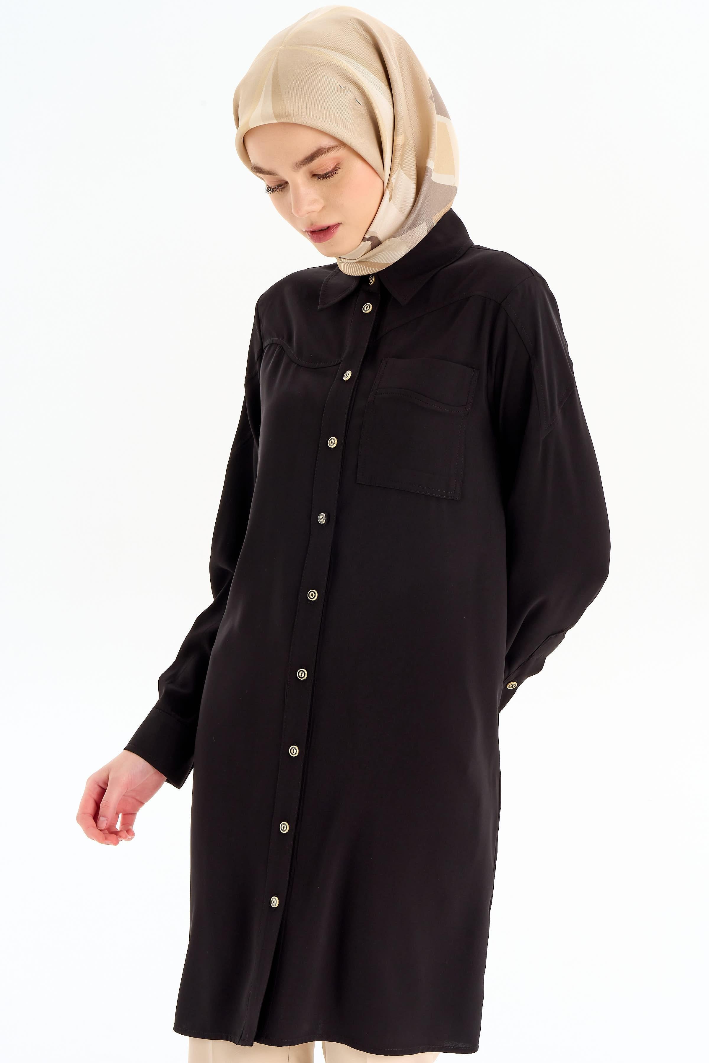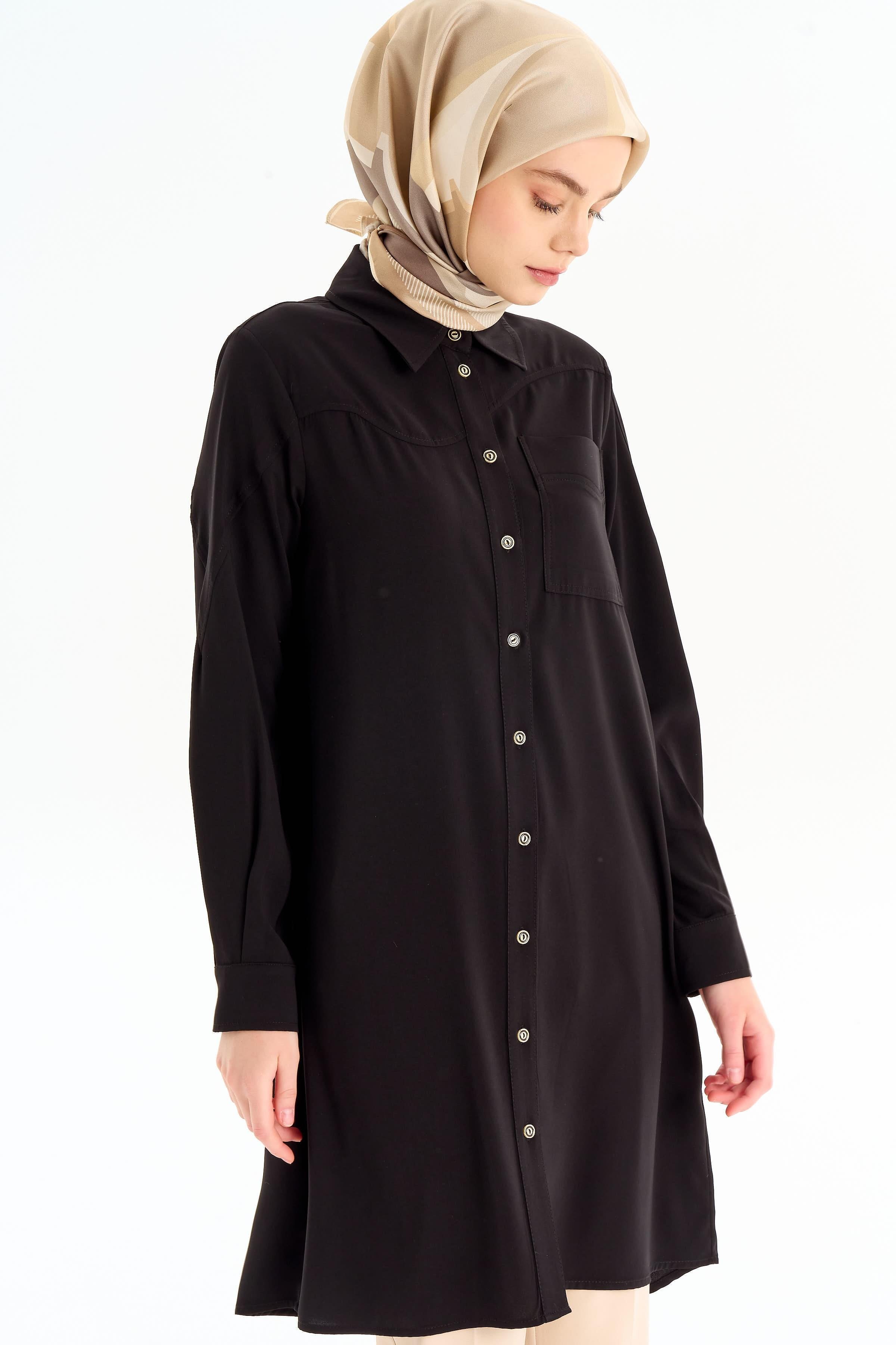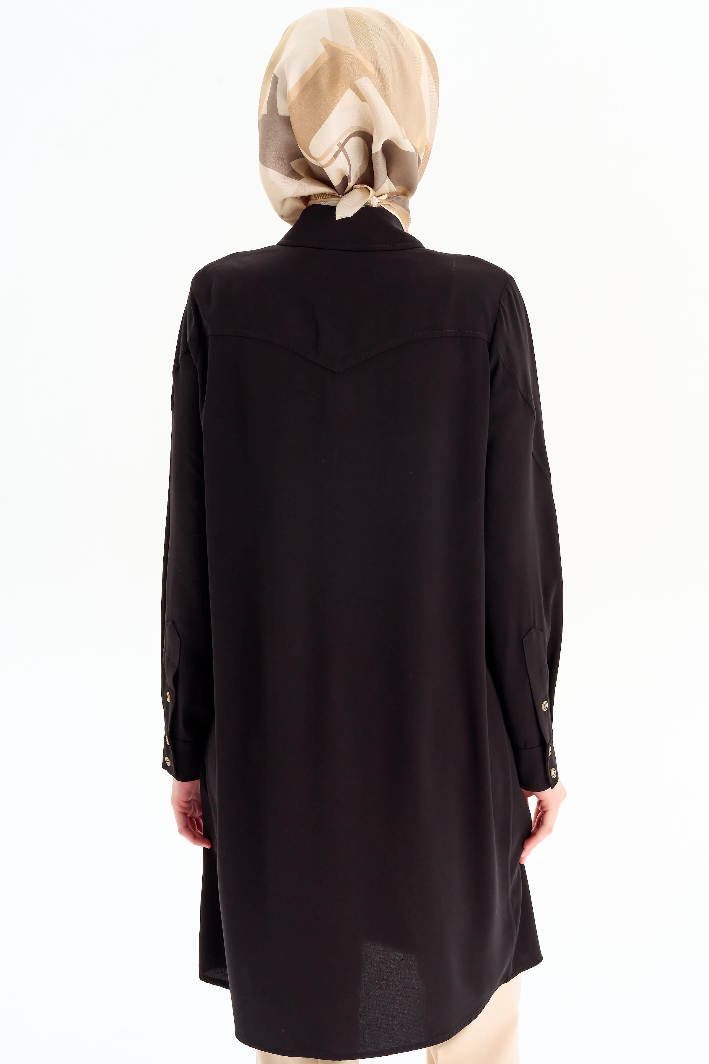 Cepli Kesik Detaylı Tunik - Siyah