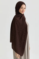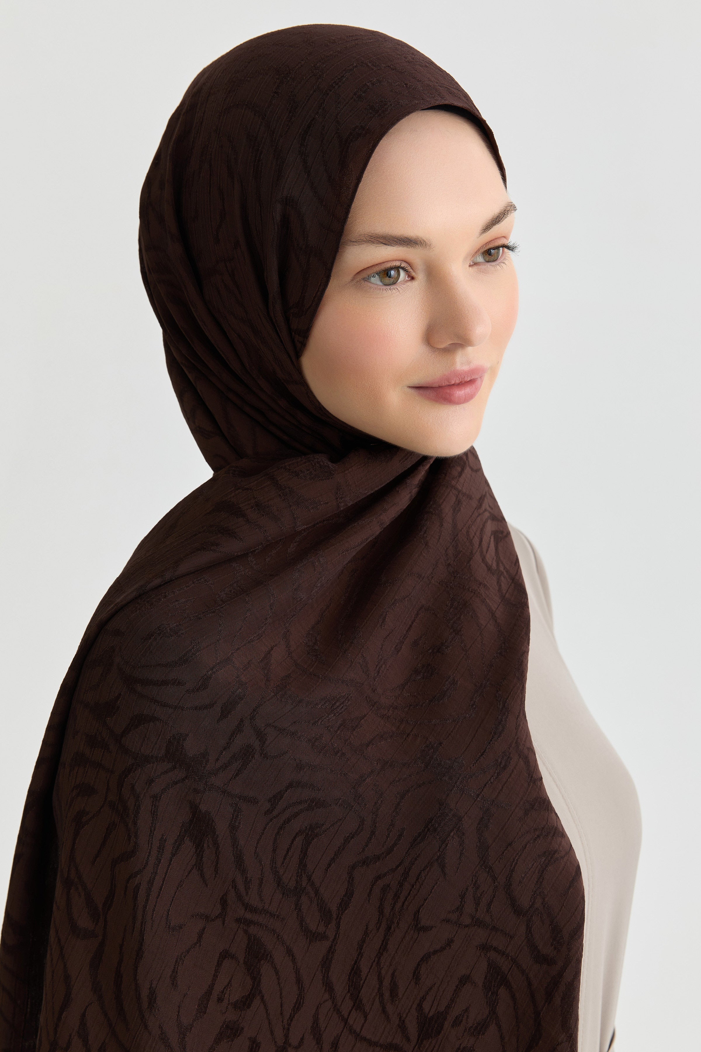 Afra Jakar Şal, dokusundaki ince desenlerle zarif ve sakin bir duruş sunar. Yumuşak yapısı sayesinde boyuna kolayca yerleşir, gün boyu konfor sağlar.