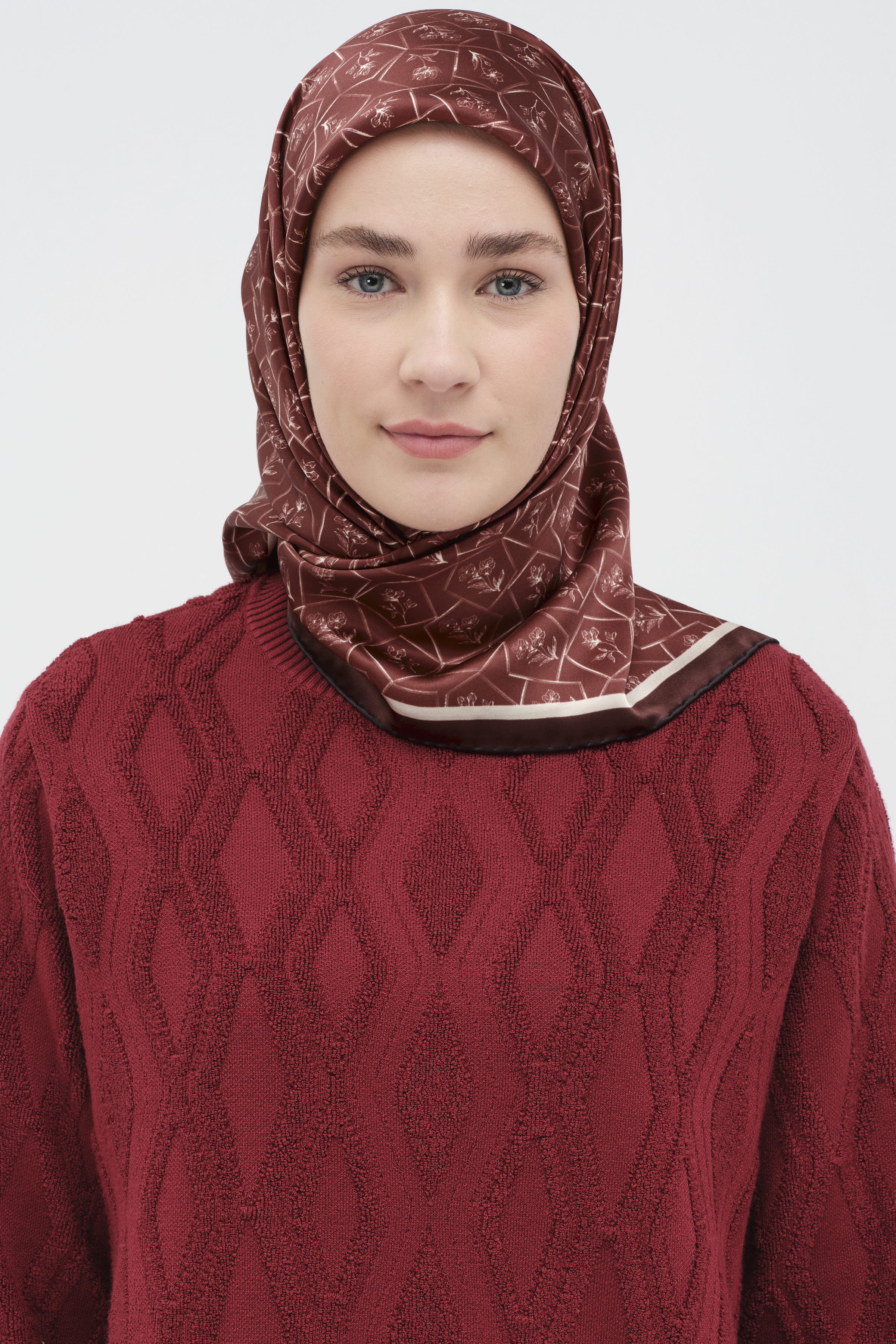 Çerçeveli Sura İpek Eşarp - Kırmızı
