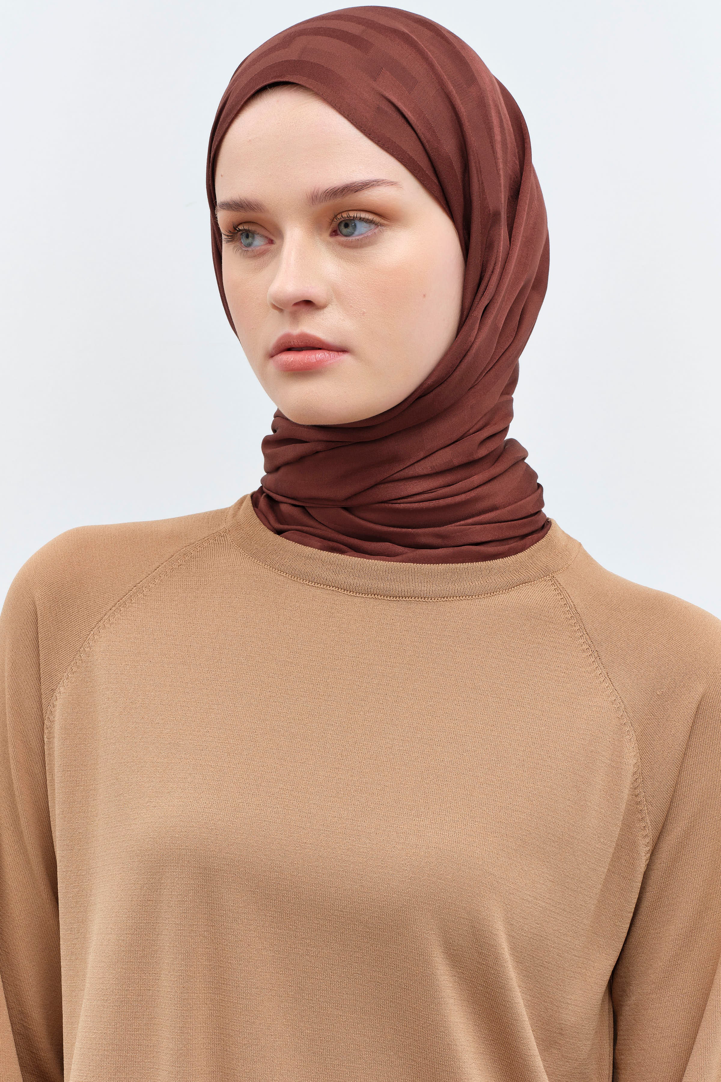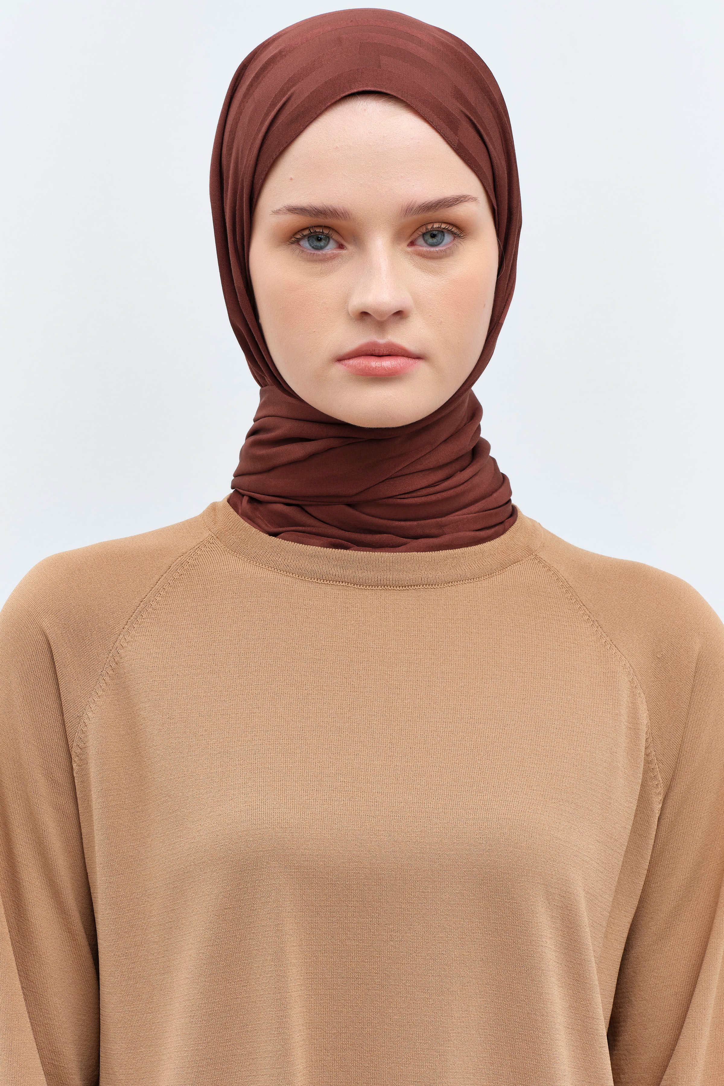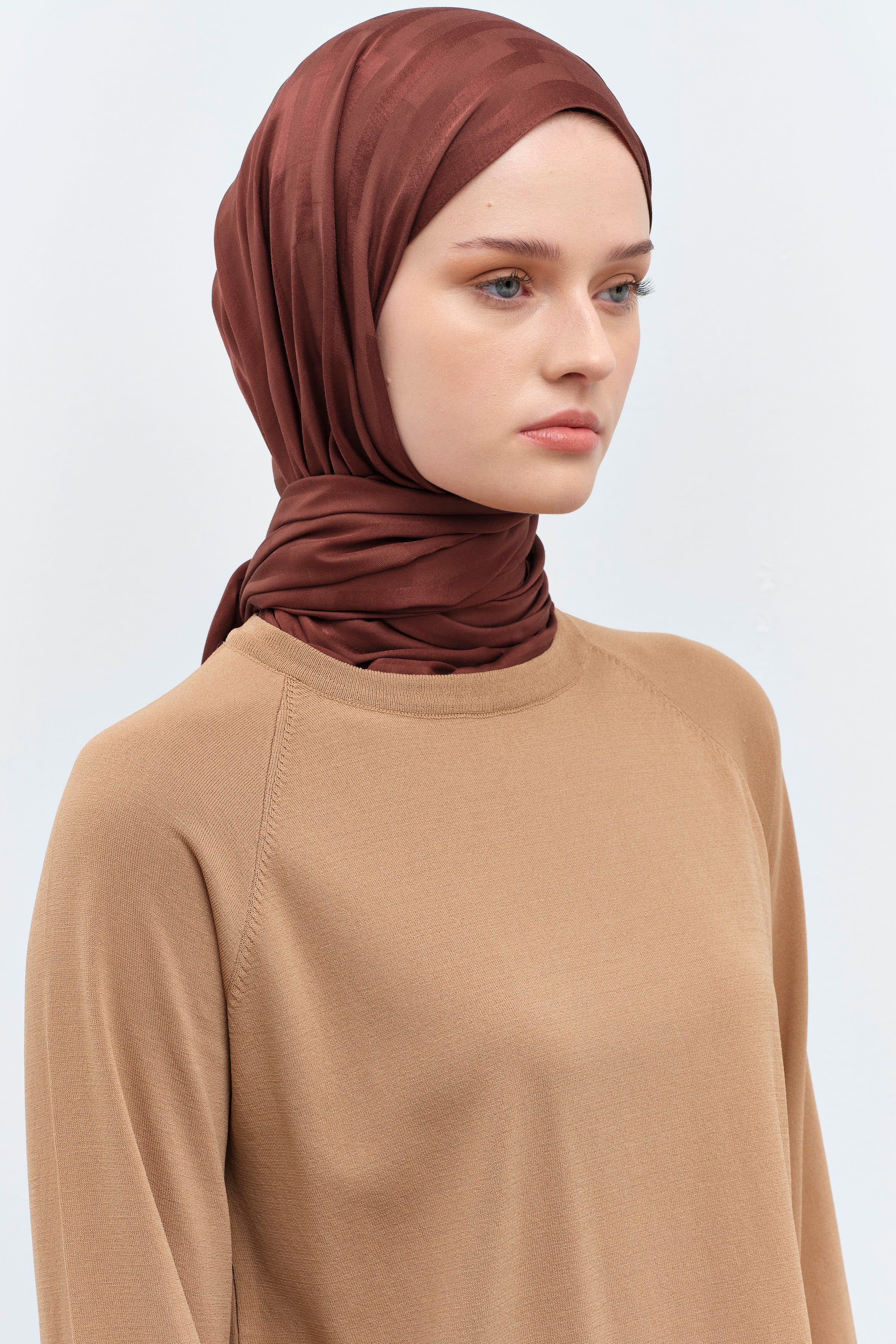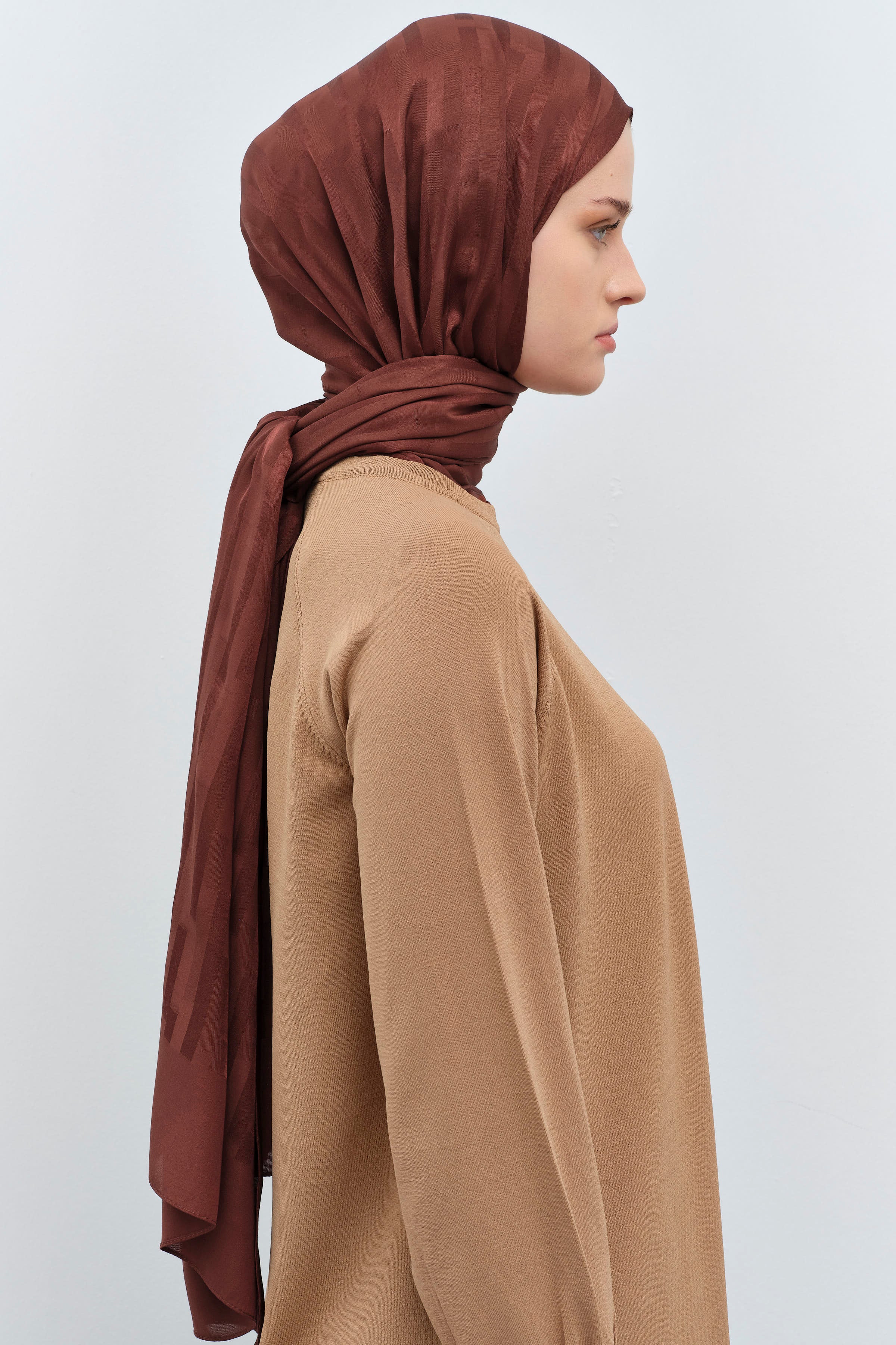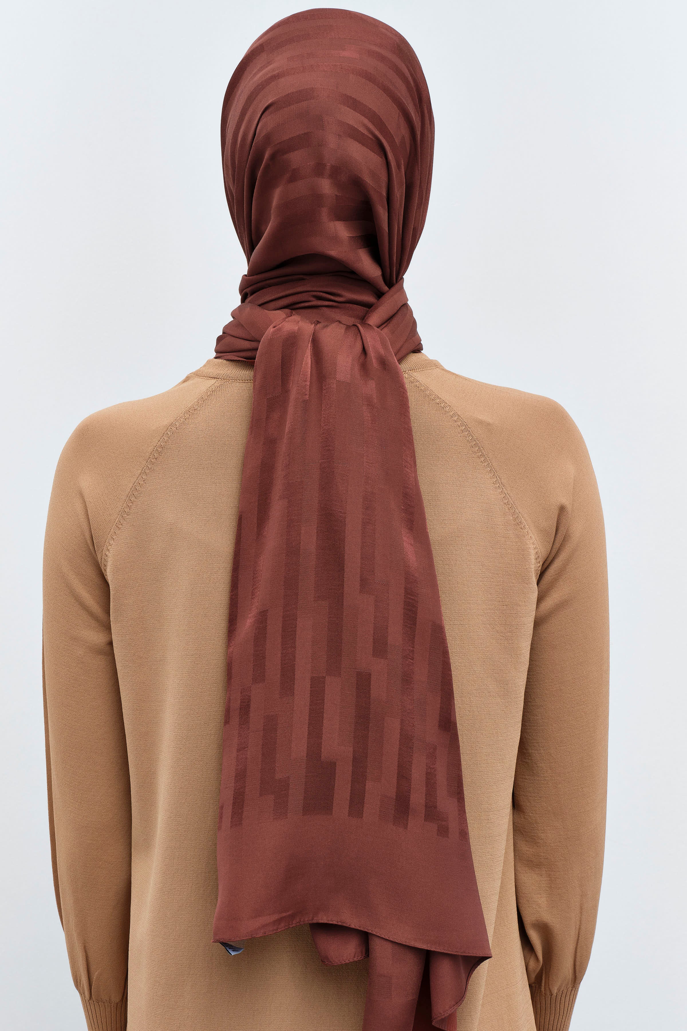 Çizgi Desen Viskon Şal - Açık Kahve