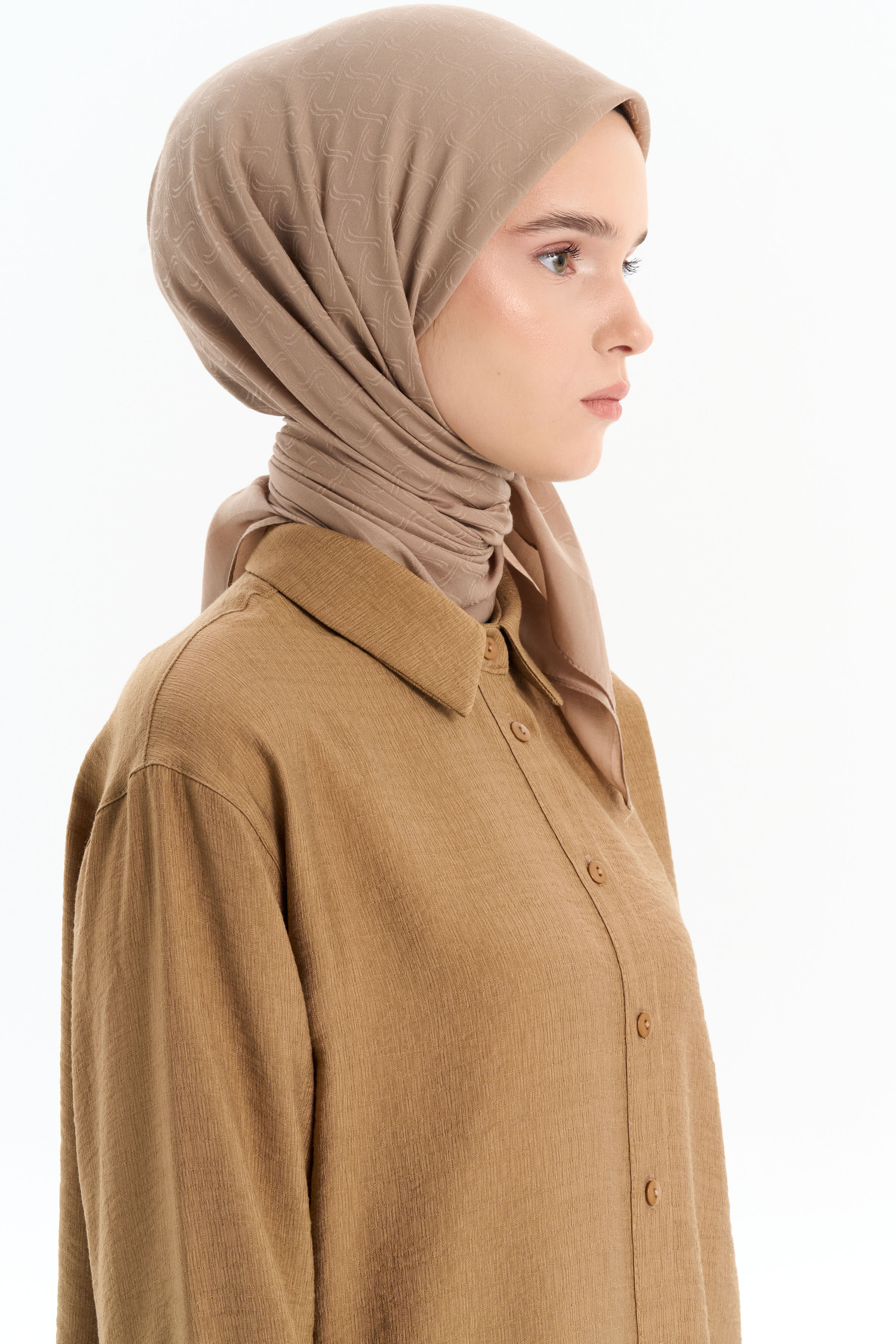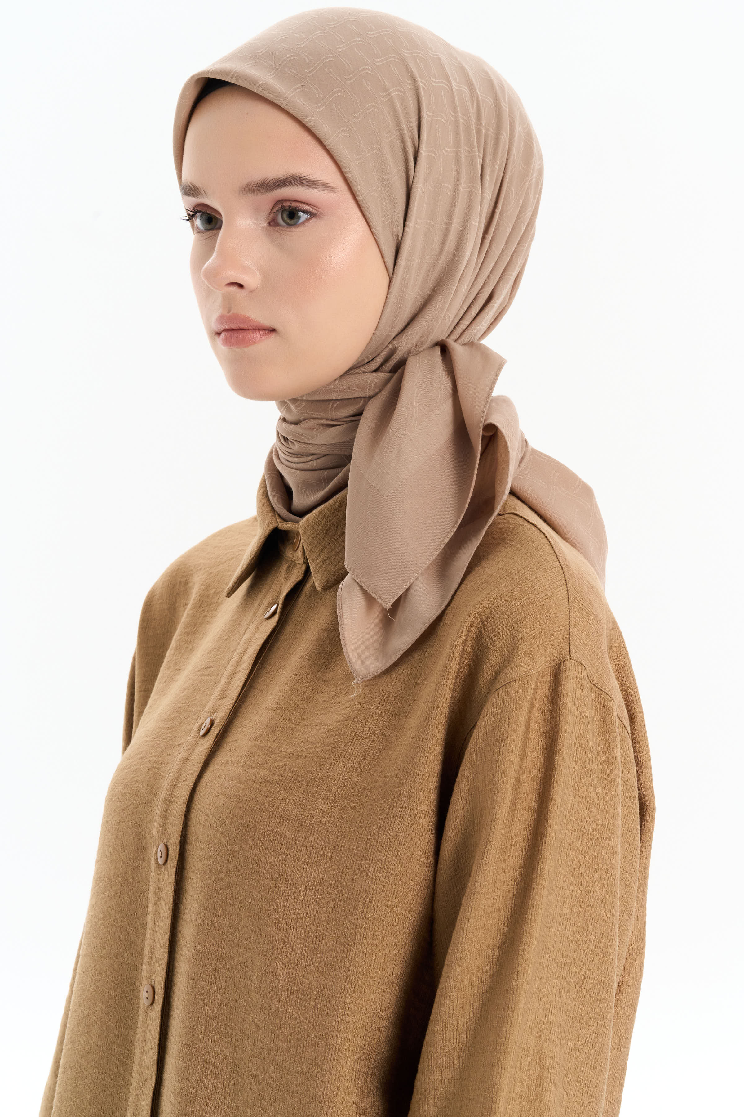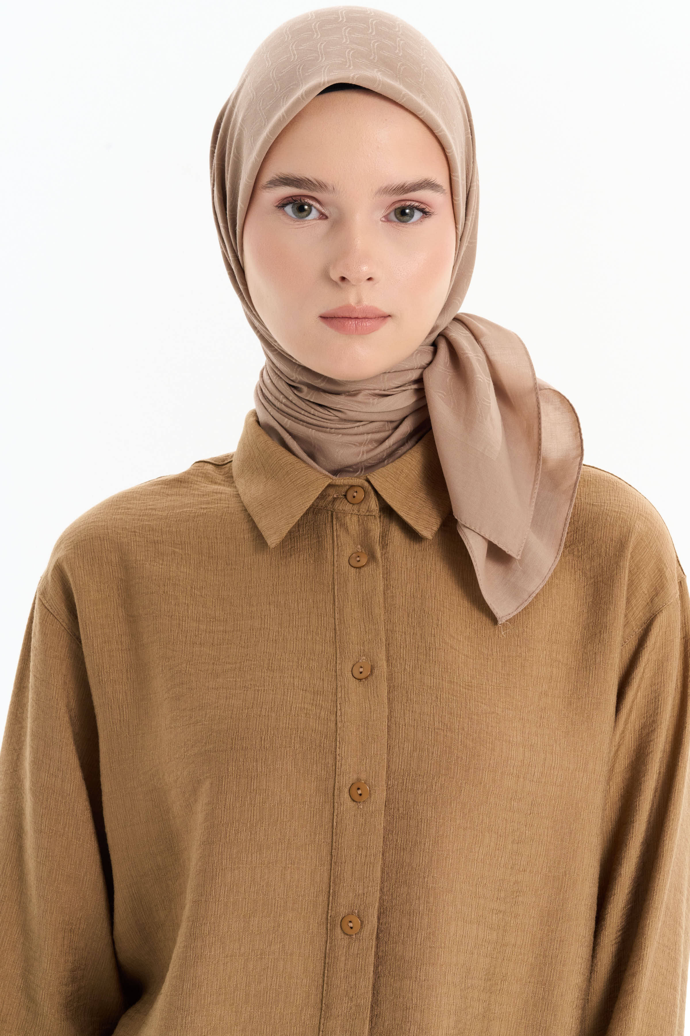 Dalga Desen Pamuk Eşarp - Vizon