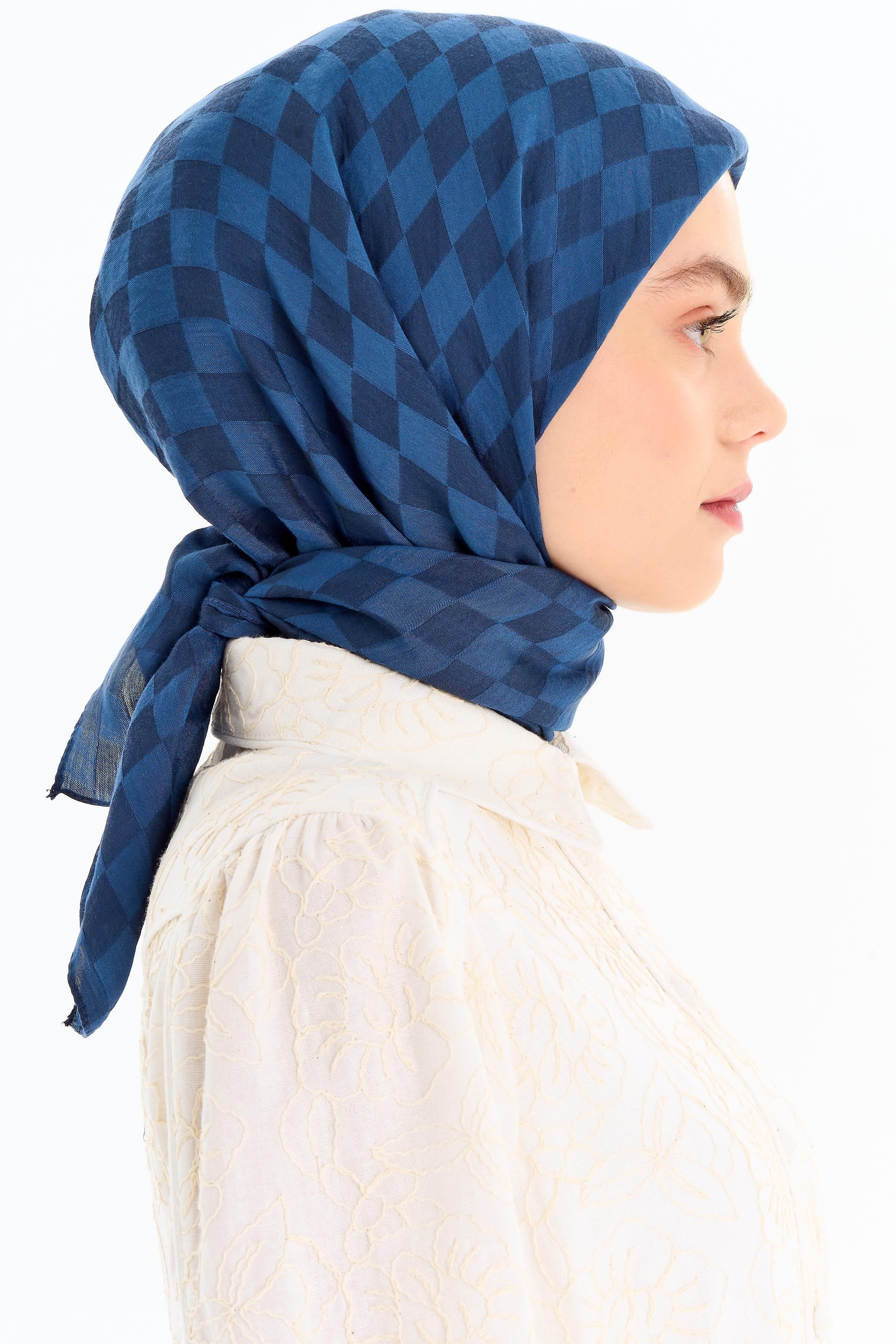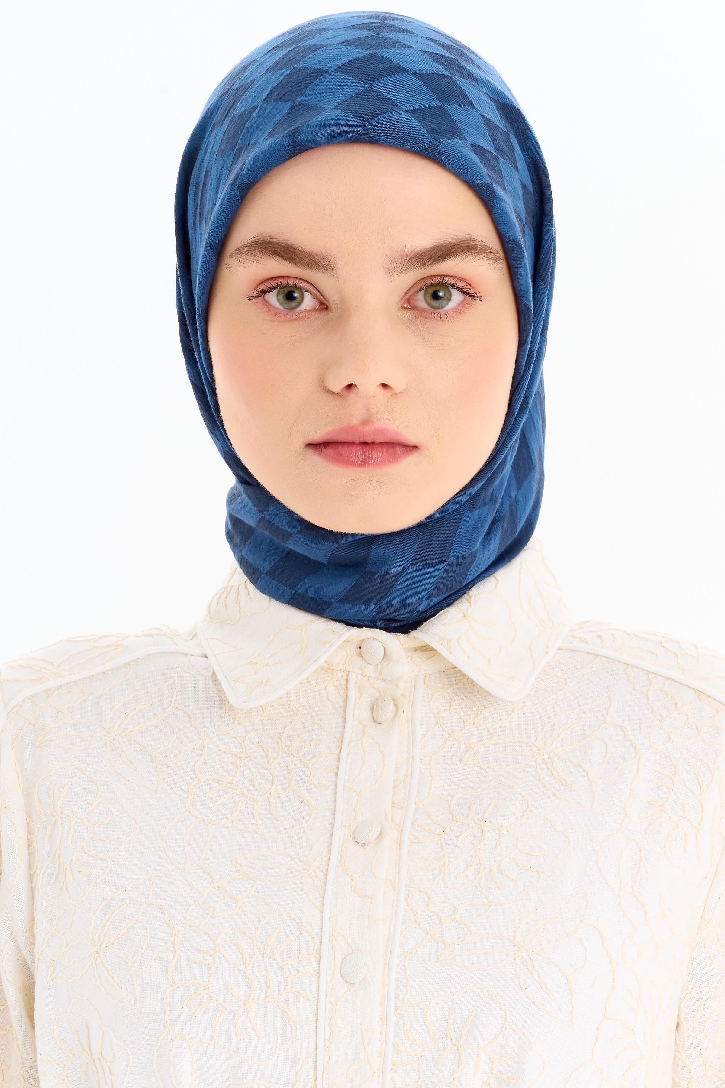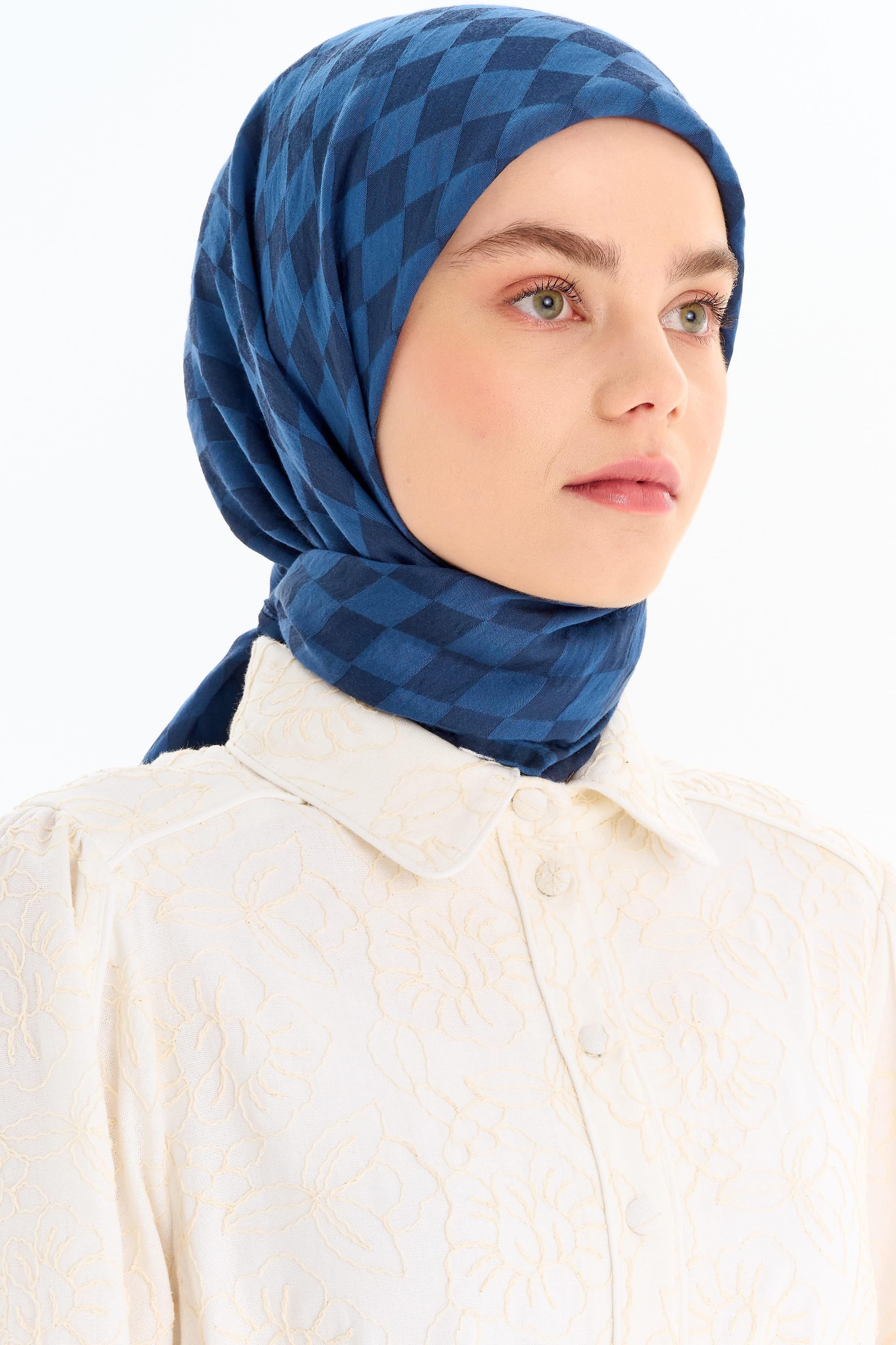 Dama Desen Viskon Eşarp - İndigo