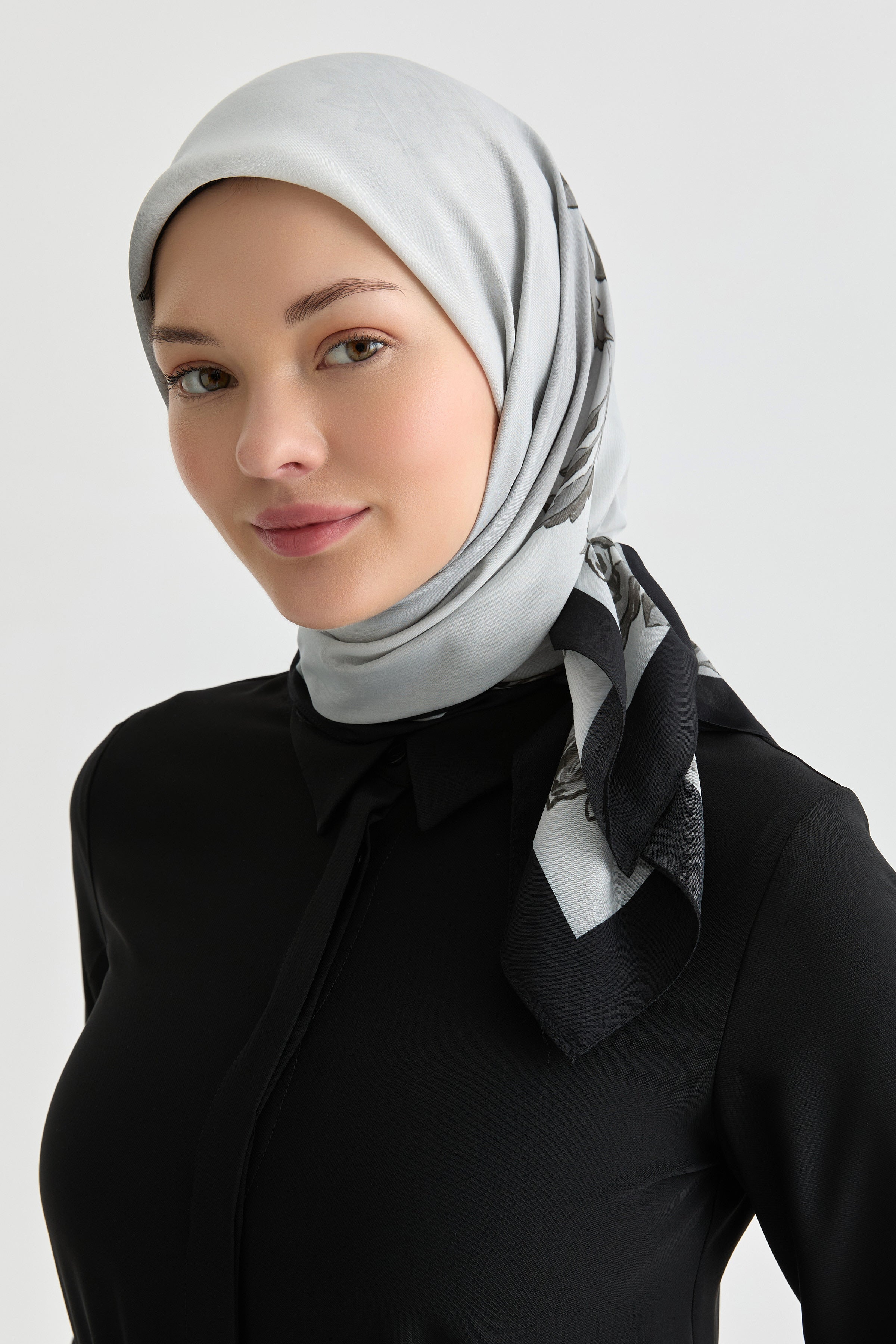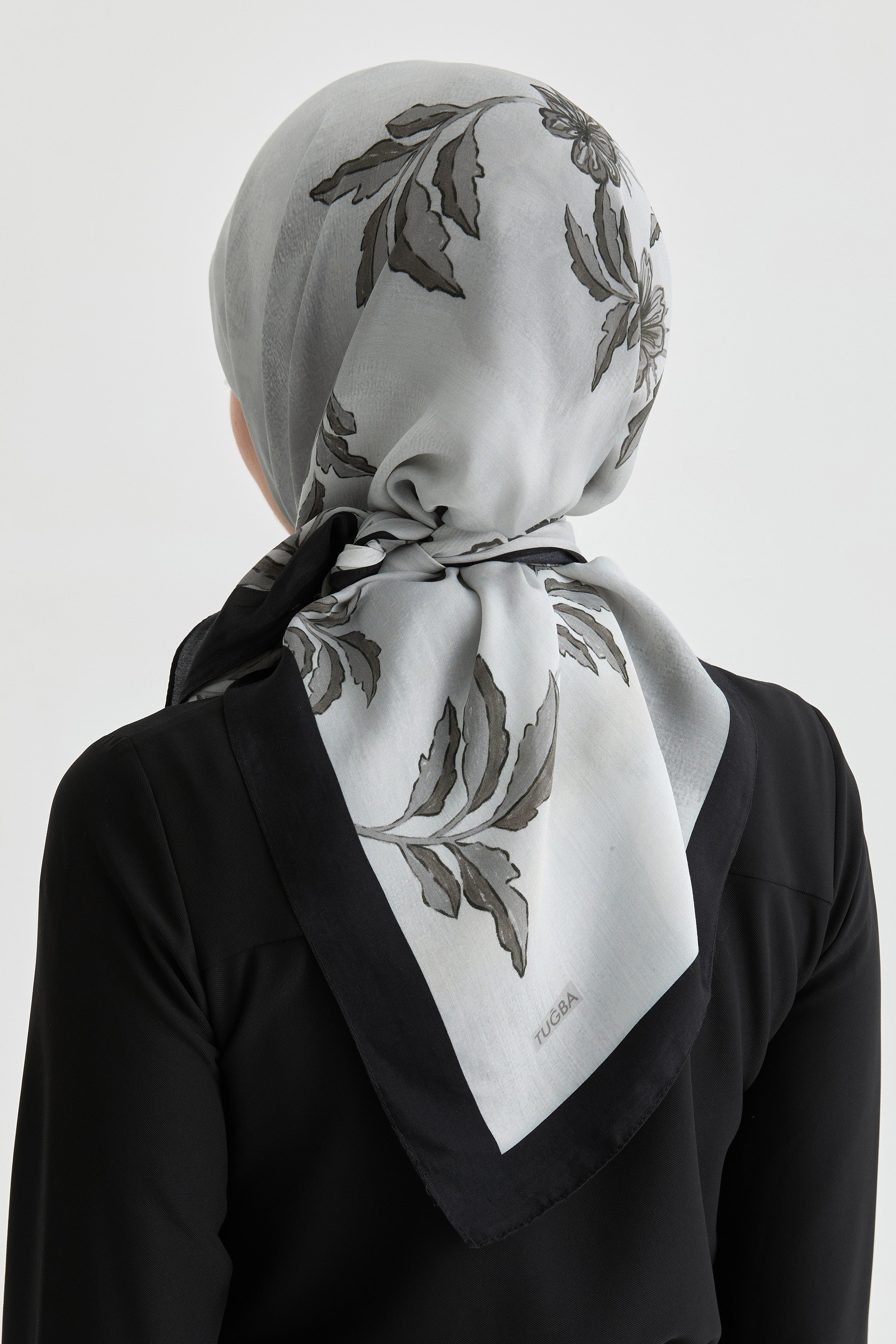 Funda Çiçek Desenli Natural Eşarp - Gri